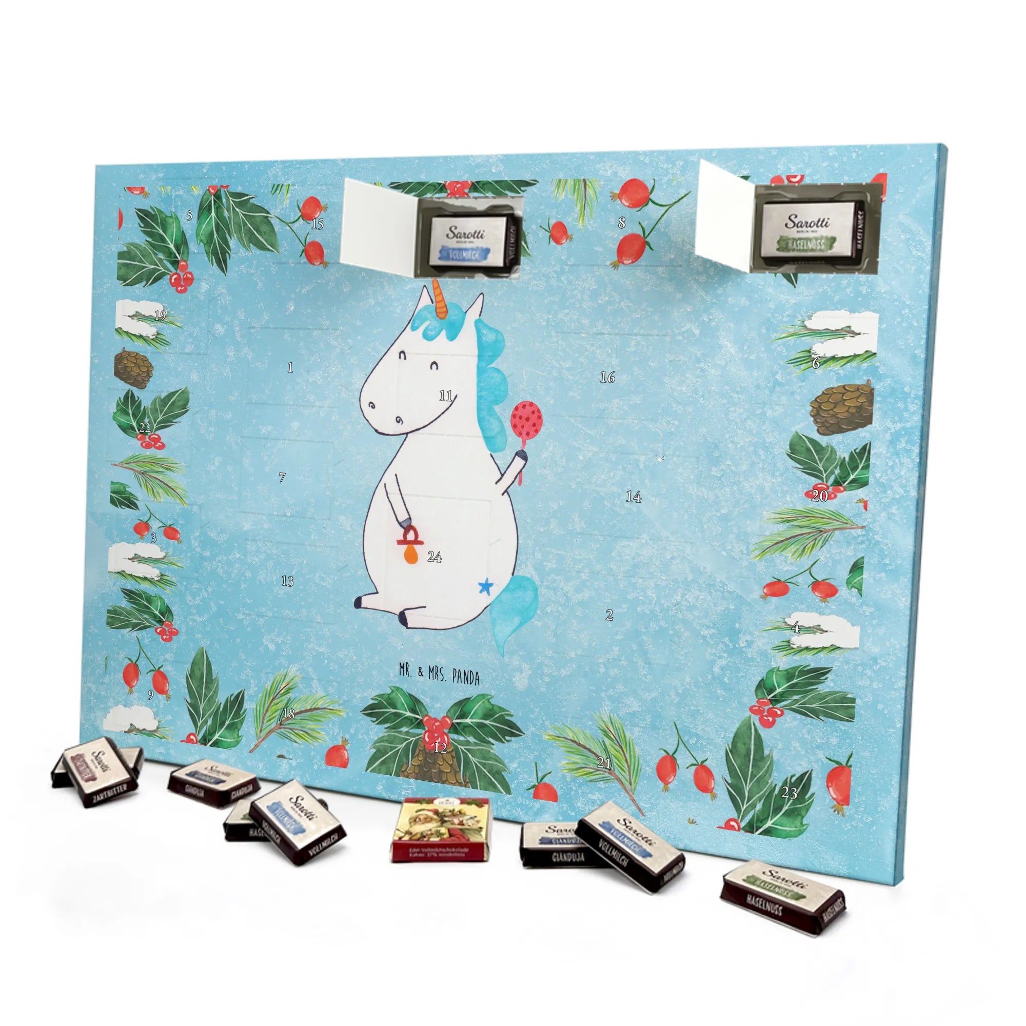 Chocolate advent calendar unicorn infant - Classic - with saying - Ice Blue