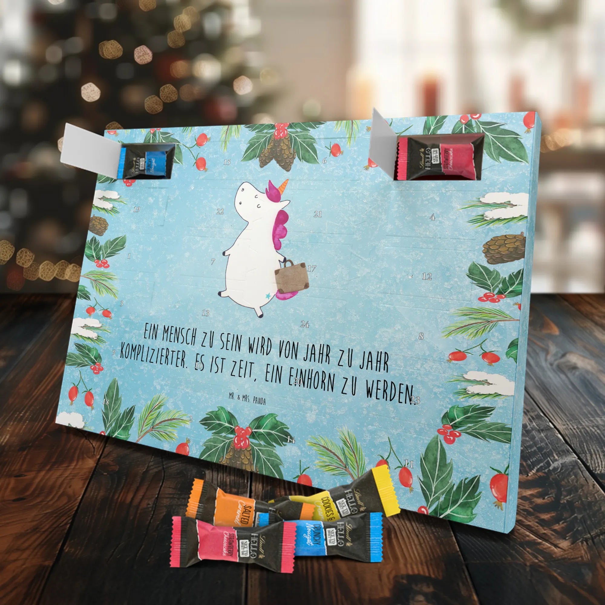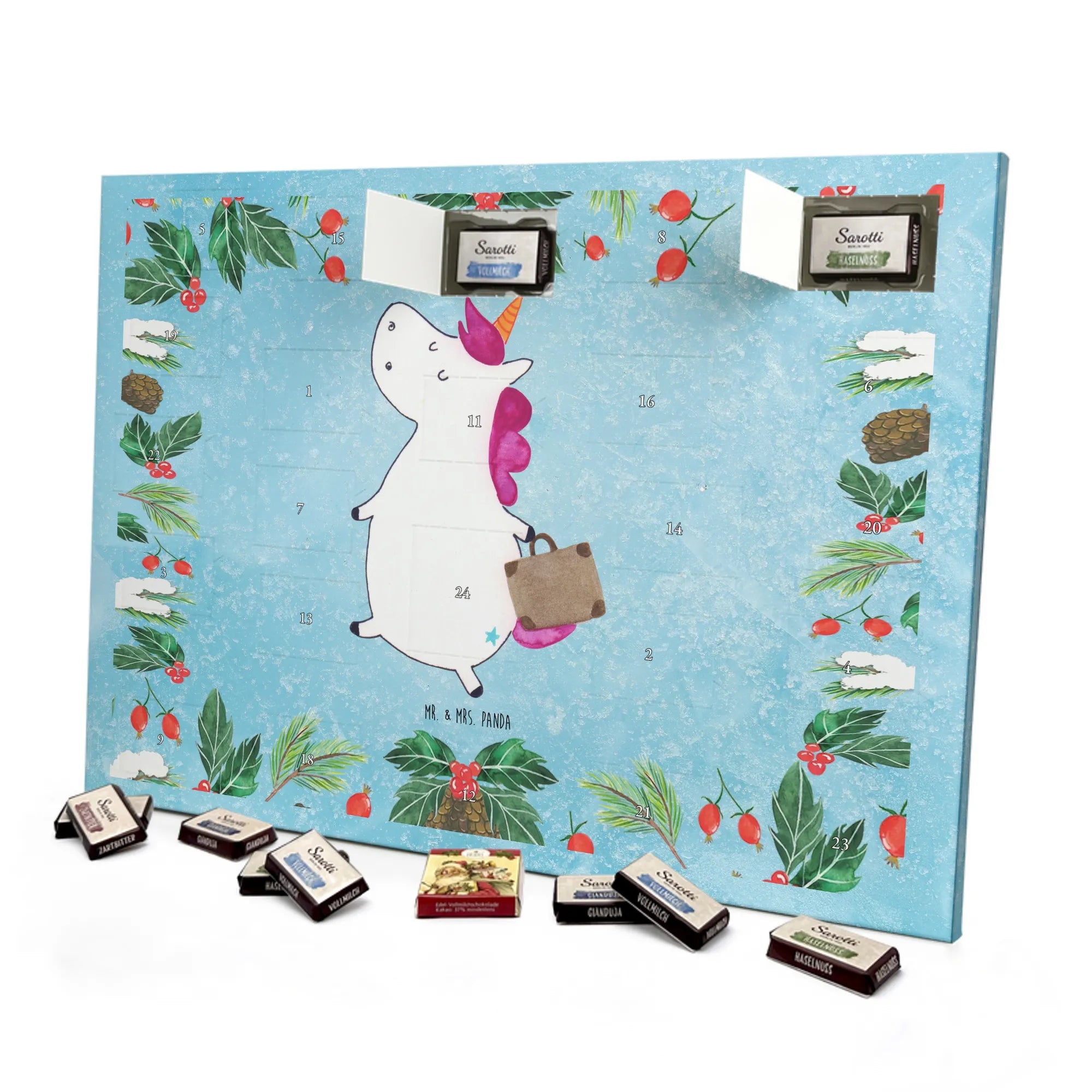 Chocolate advent calendar unicorn Suitcase - Classic - with saying - Ice Blue