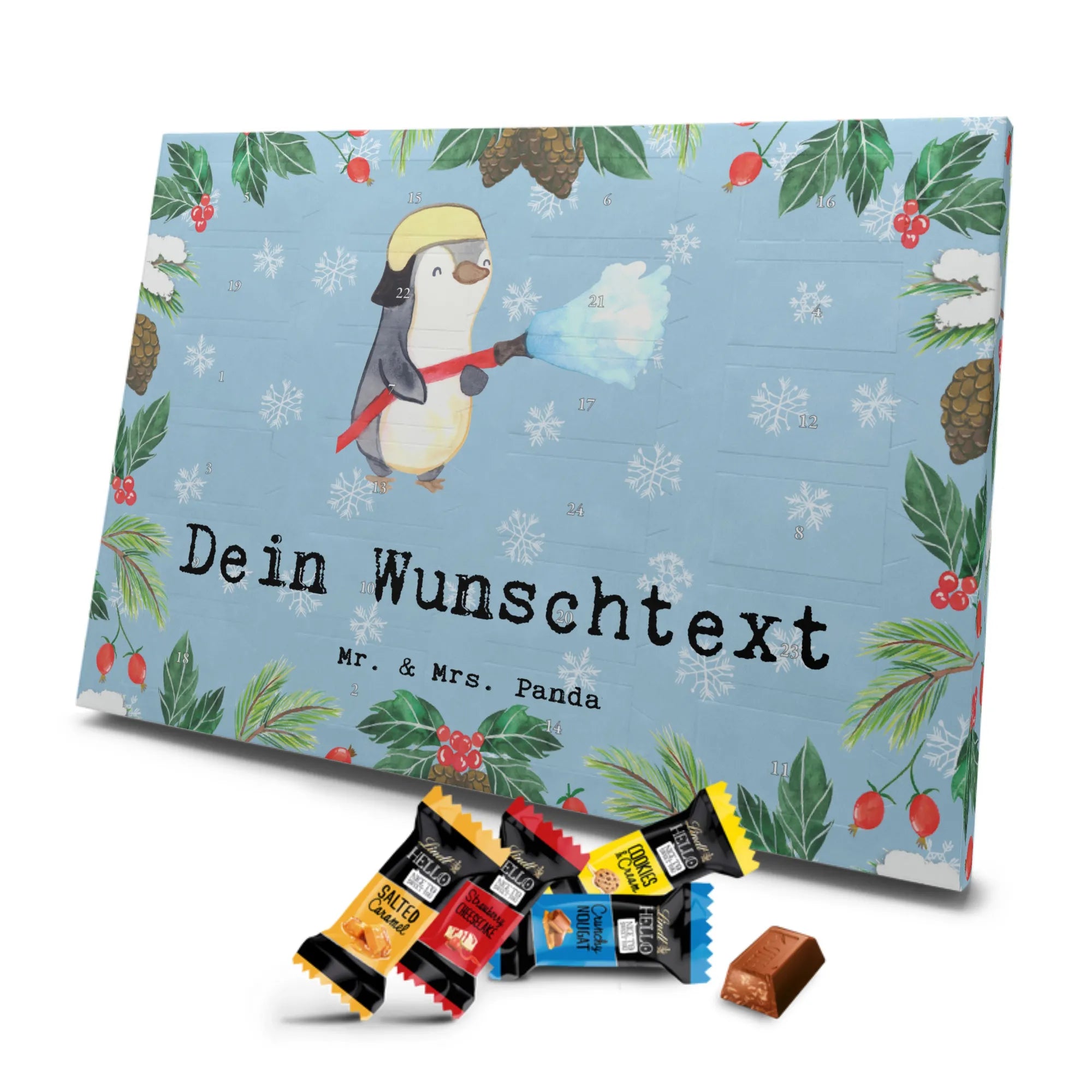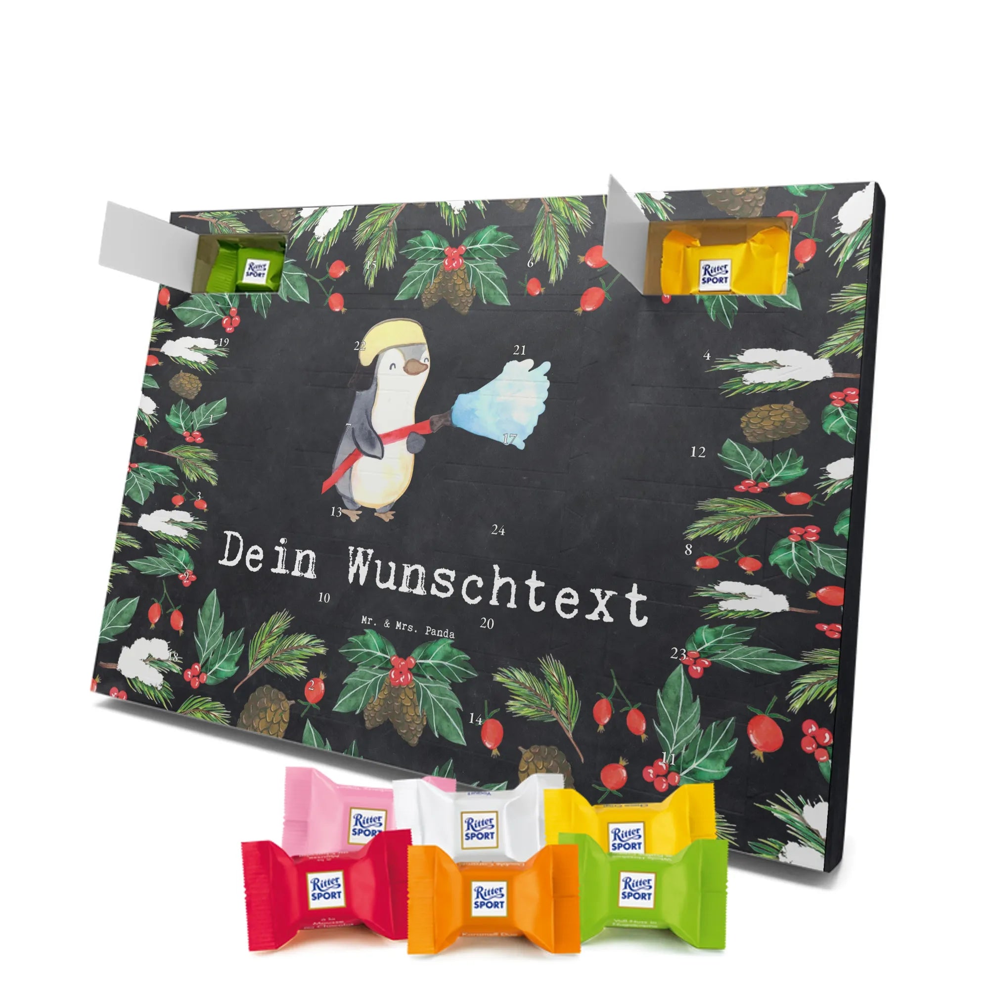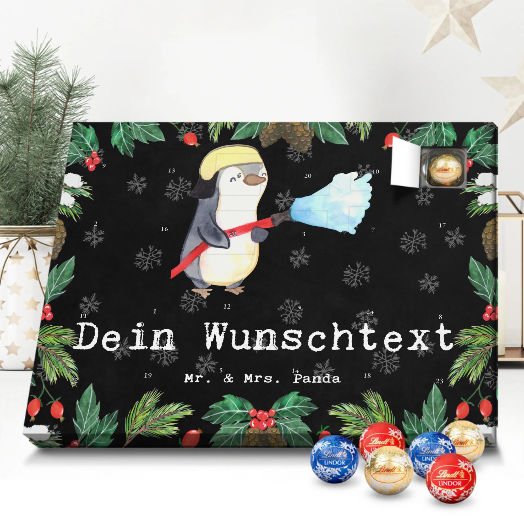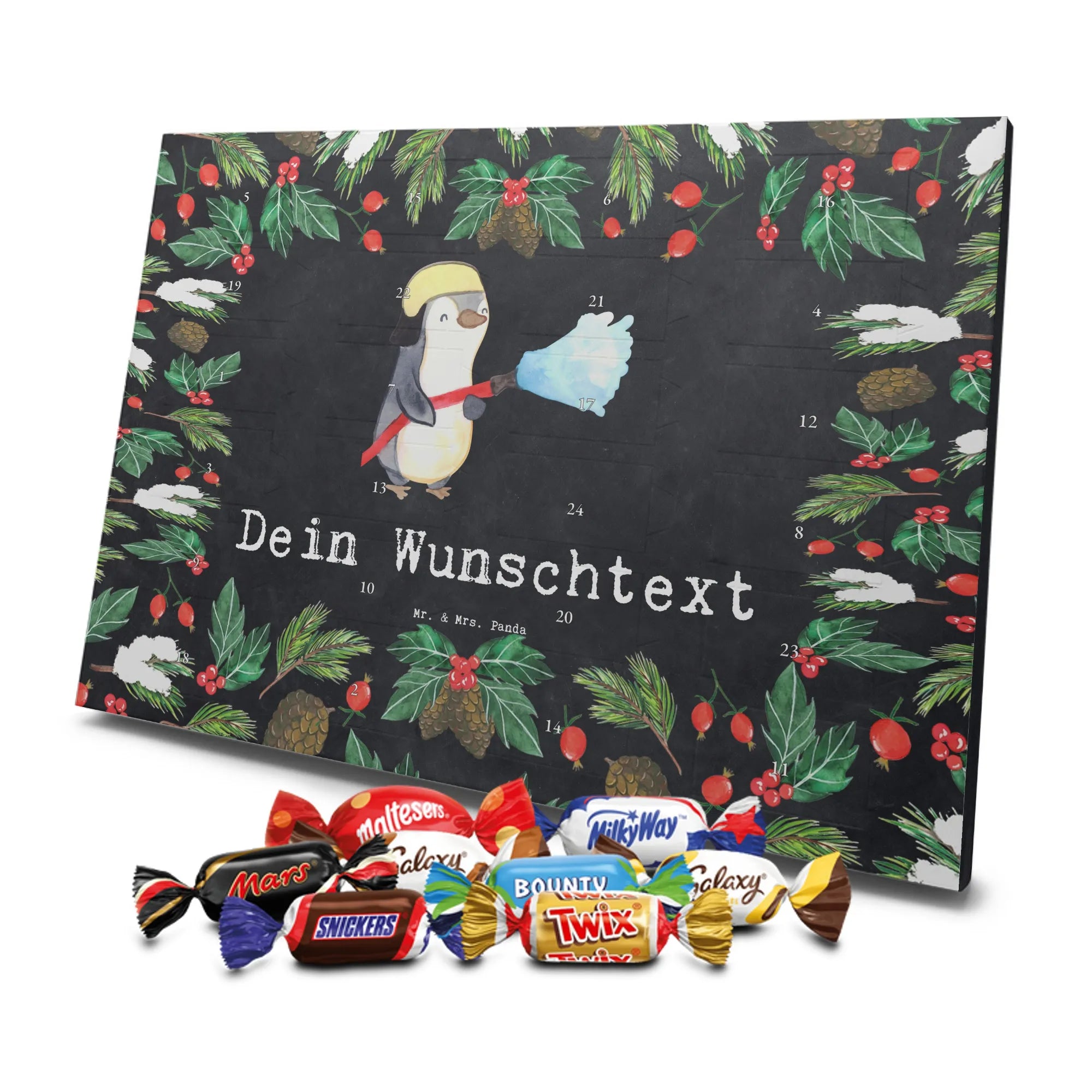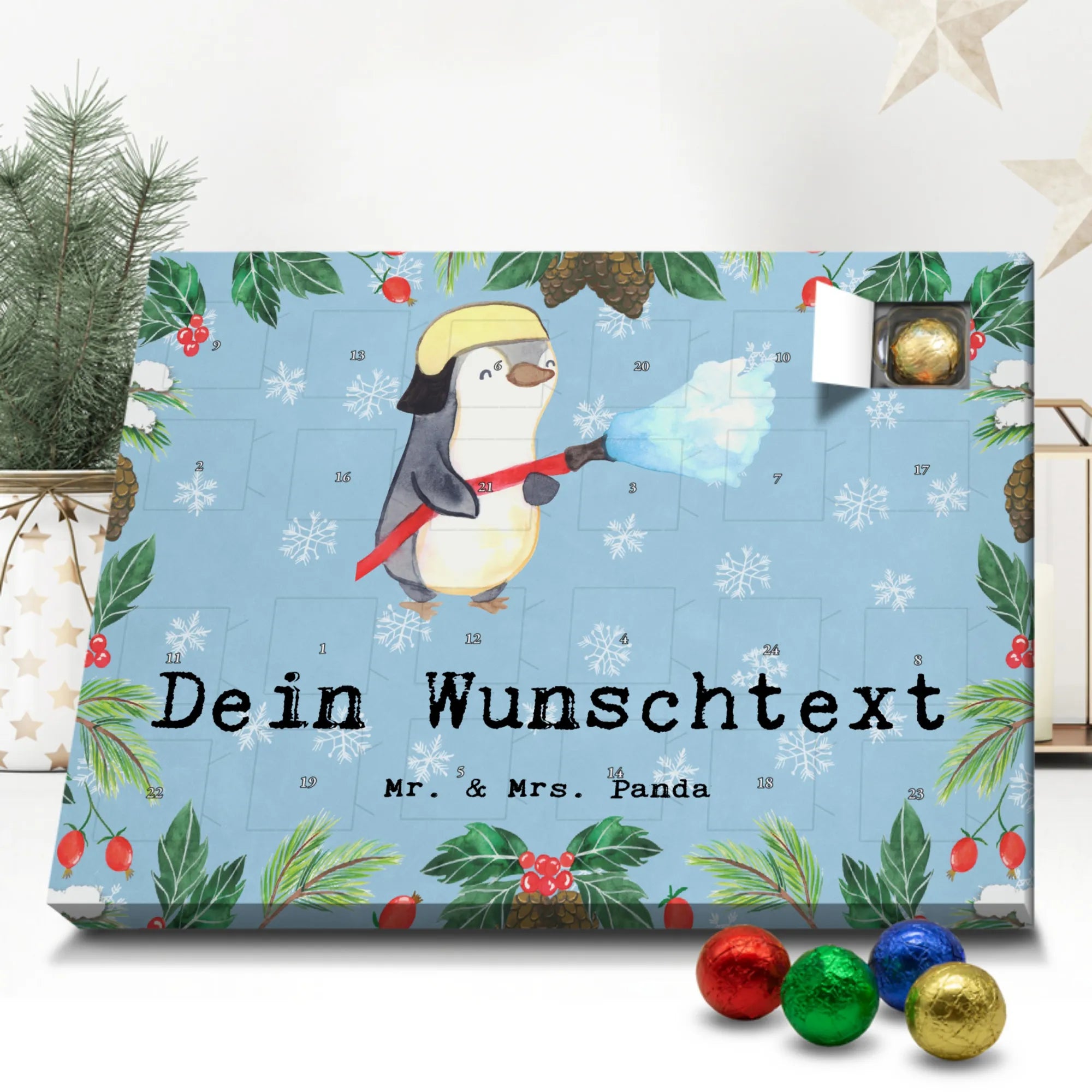 Make the Advent season even more special with the personalized chocolate Advent calendar from Mr. & Mrs. Panda. This unique Advent calendar is printed with your desired name or a custom text and features exclusive designs and sayings from the renowned designer duo. It's not only a visual highlight but also delights taste buds with 24 high-quality chocolate balls in various colors. The brilliant print quality and the silk-matte finish make this calendar a true eye-catcher during the Christmas season.