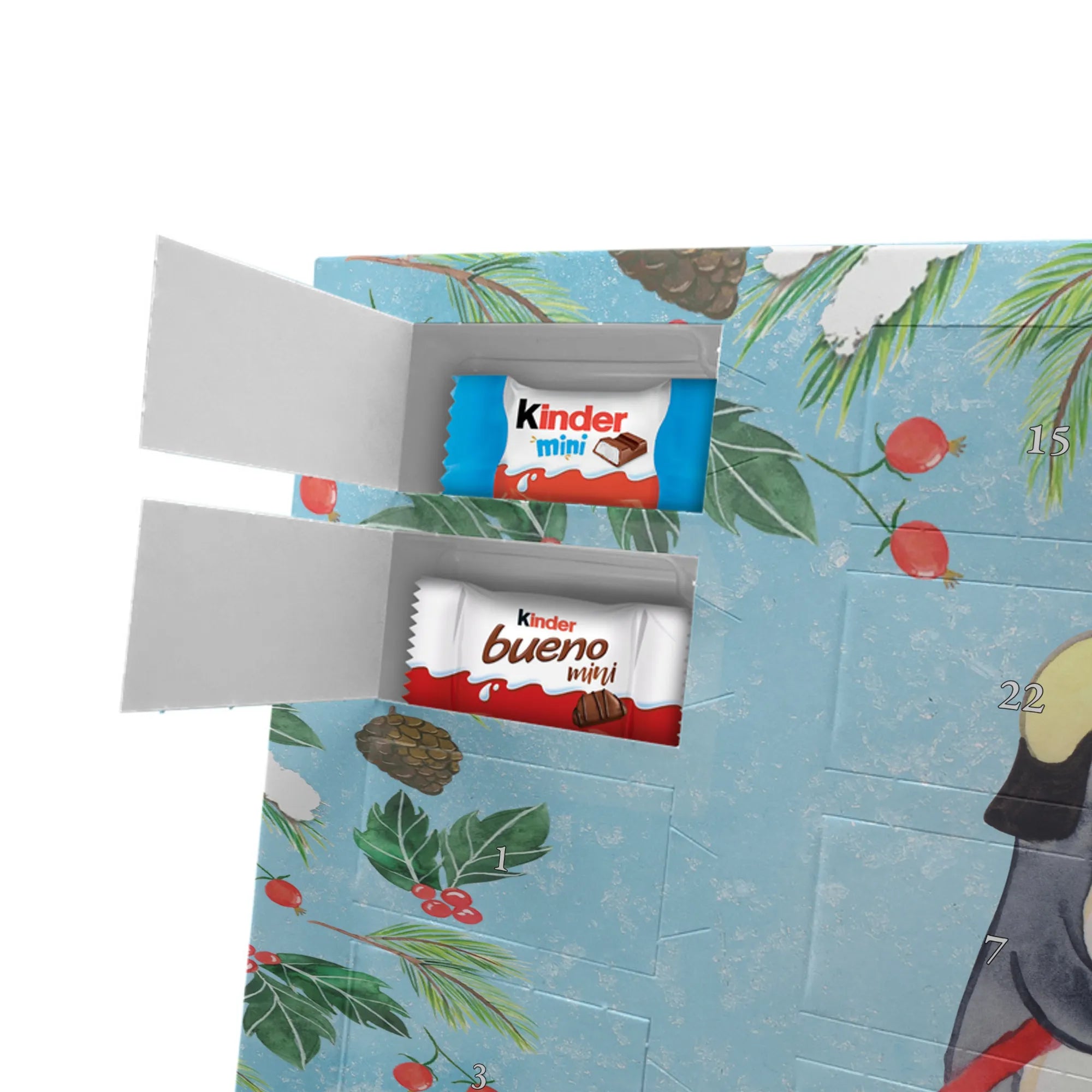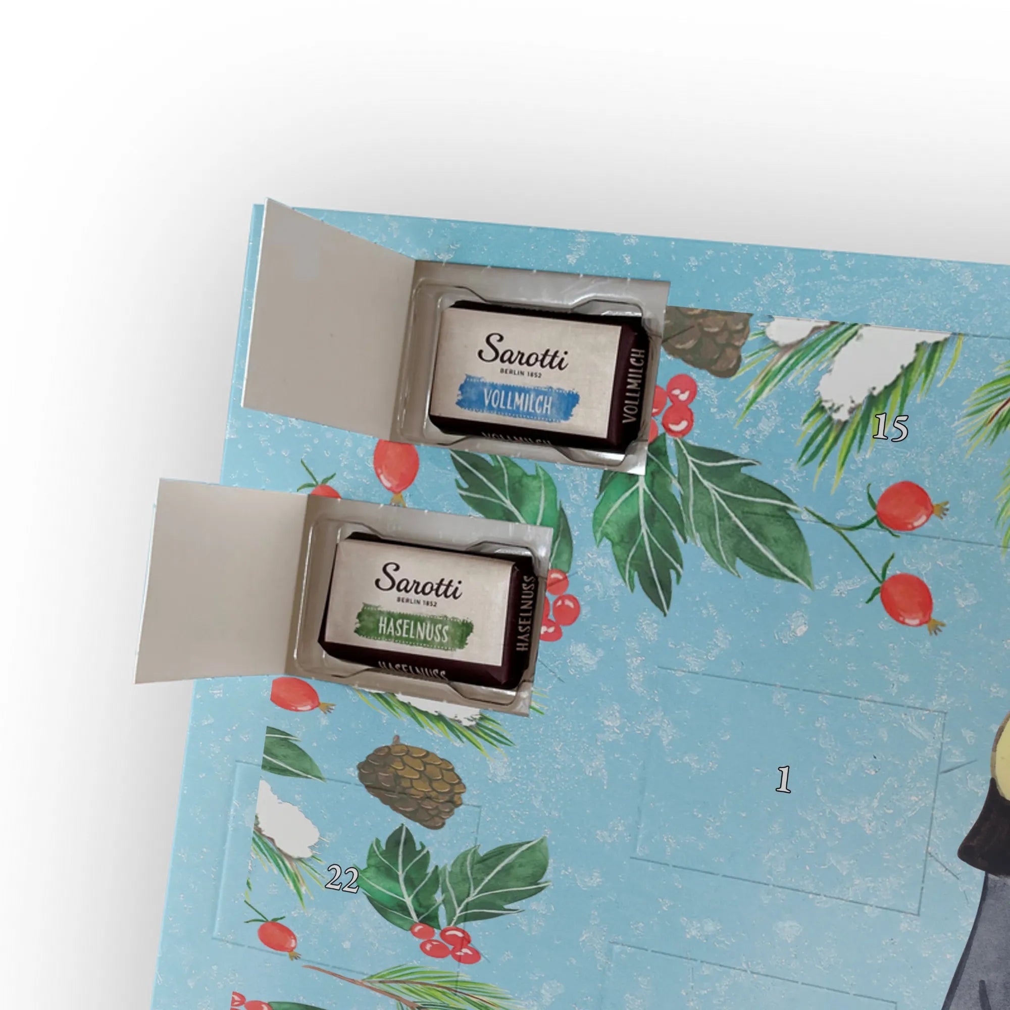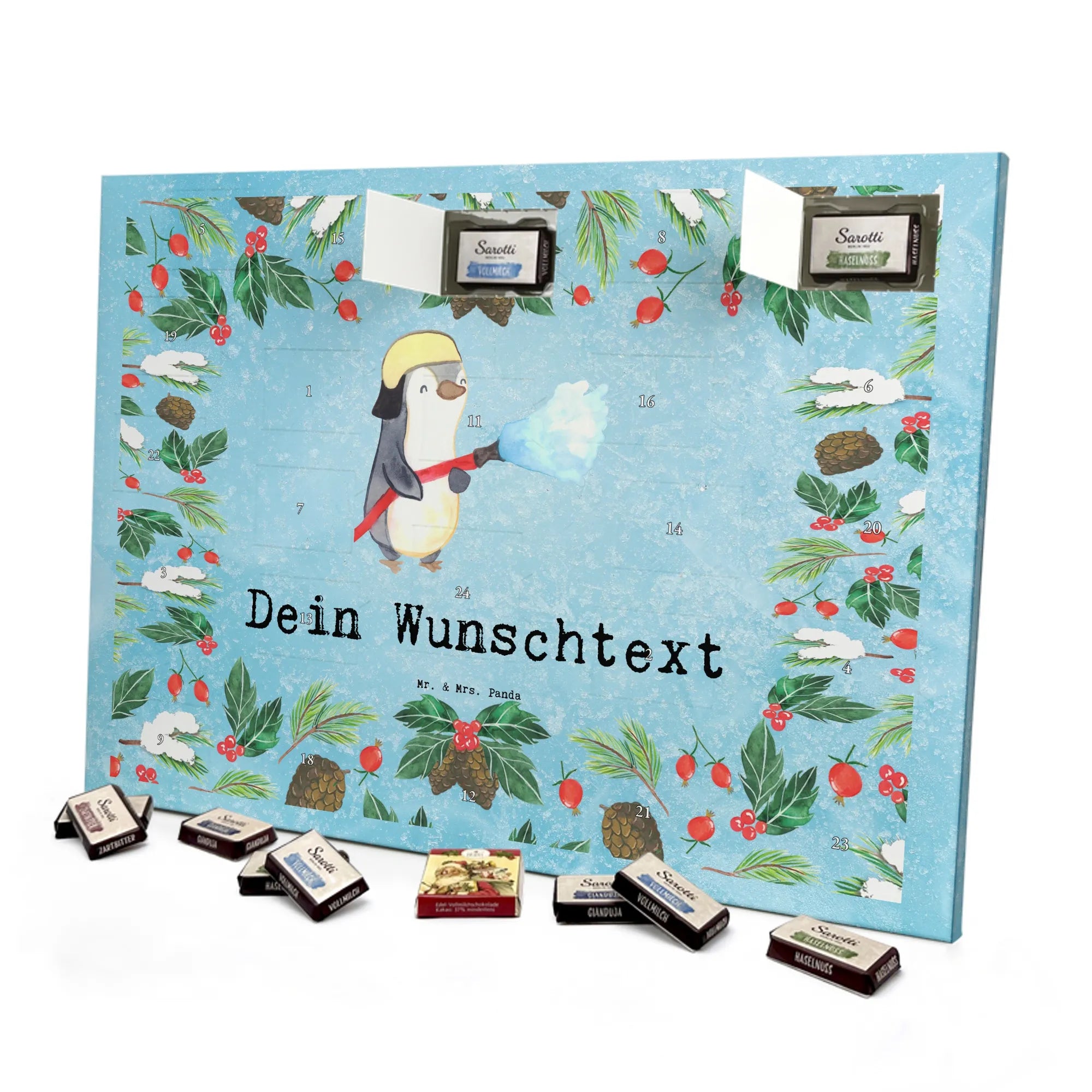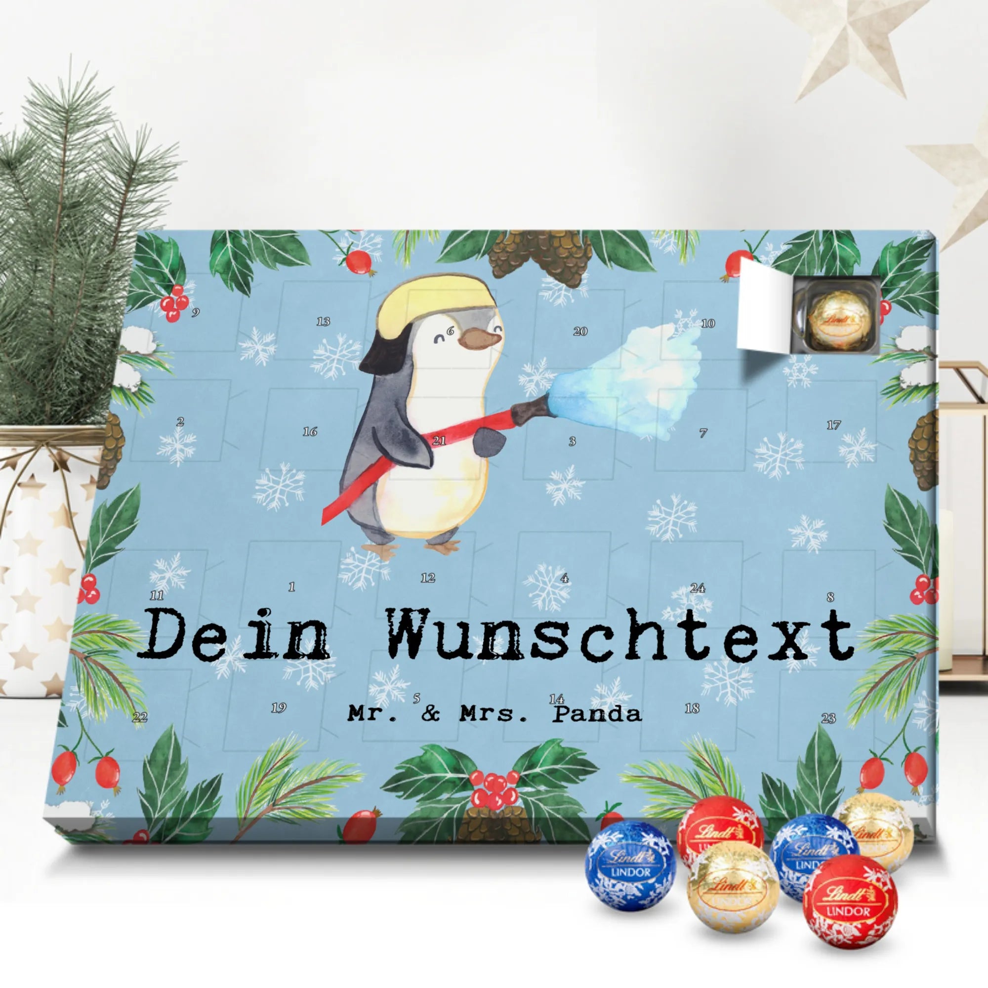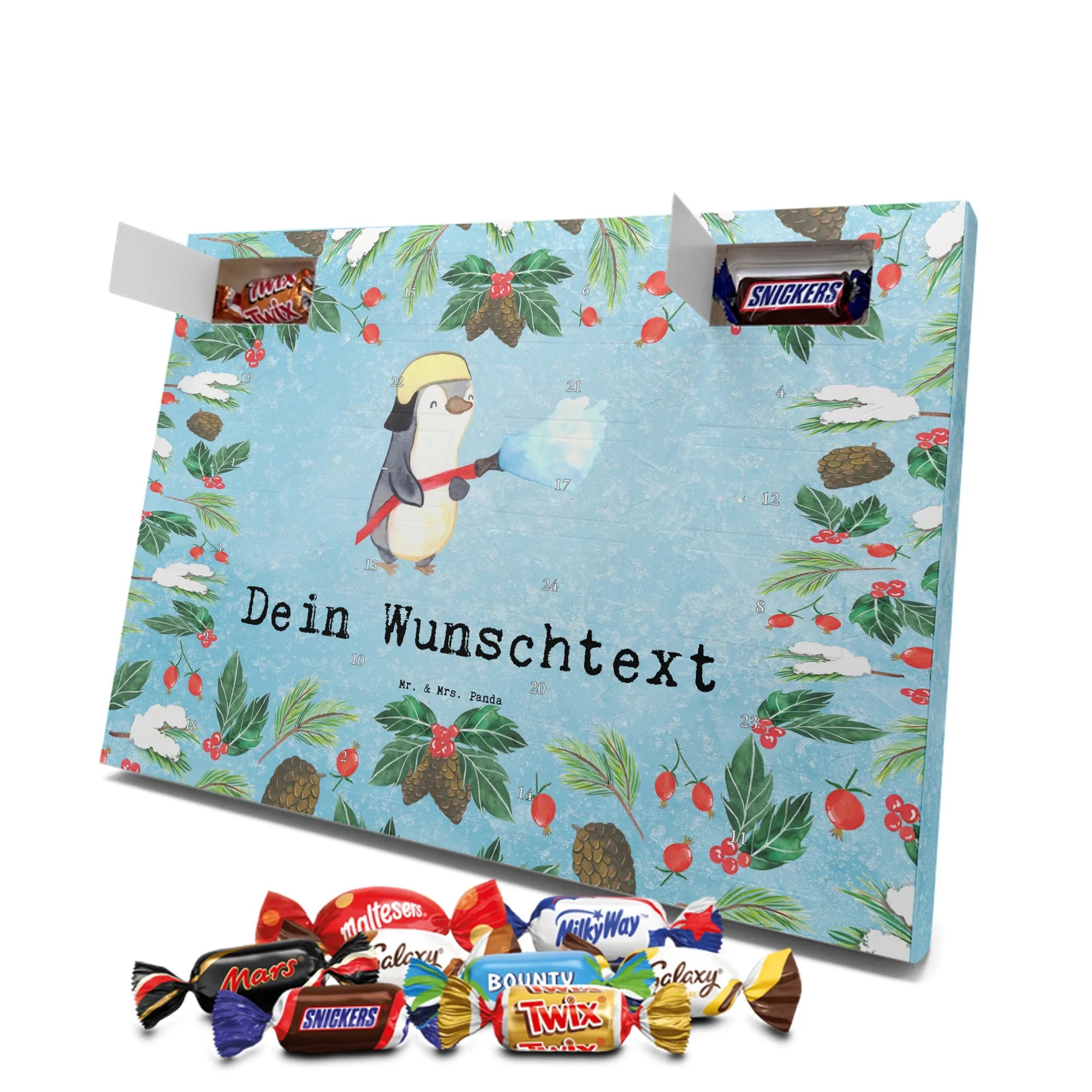 Make the Advent season even more special with the personalized chocolate Advent calendar from Mr. & Mrs. Panda. This unique Advent calendar is printed with your desired name or a custom text and features exclusive designs and sayings from the renowned designer duo. It's not only a visual highlight but also delights taste buds with 24 high-quality chocolate balls in various colors. The brilliant print quality and the silk-matte finish make this calendar a true eye-catcher during the Christmas season.