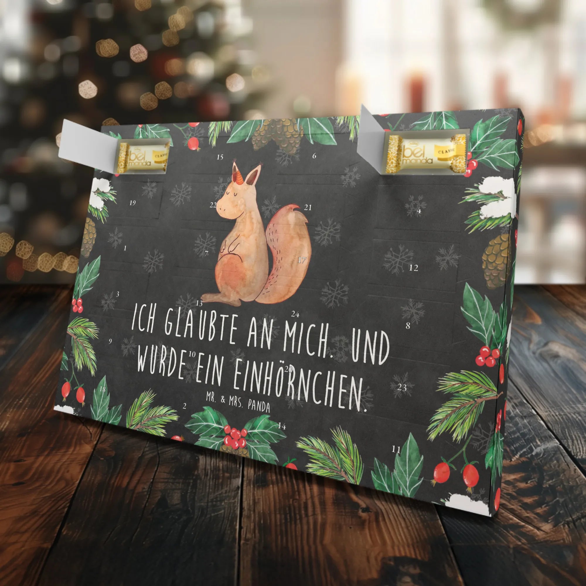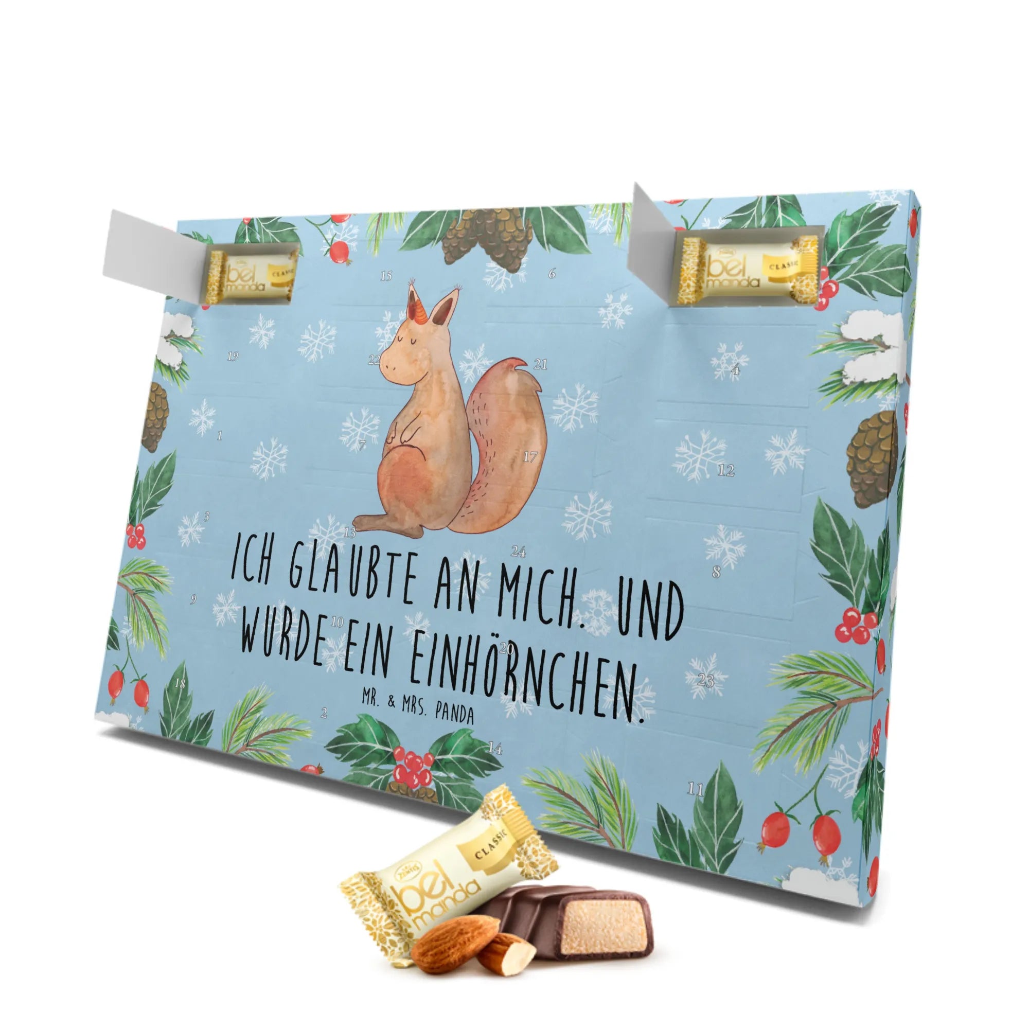 Der Marzipan Adventskalender Einhörnchen Glaube von Mr. & Mrs. Panda ist das perfekte Geschenk für alle, die den Zauber der Einhörner lieben! In einer liebevoll gestalteten Verpackung verbirgt sich eine süße Überraschung: 24 einzeln verpackte Edelmarzipan Pralinés, die jeden Tag im Advent zu einem festlichen Erlebnis machen. Mit dem Motto "Ich glaubte an mich. Und wurde ein Einhörnchen." zaubert der Kalender zudem ein Lächeln auf jedes Gesicht.