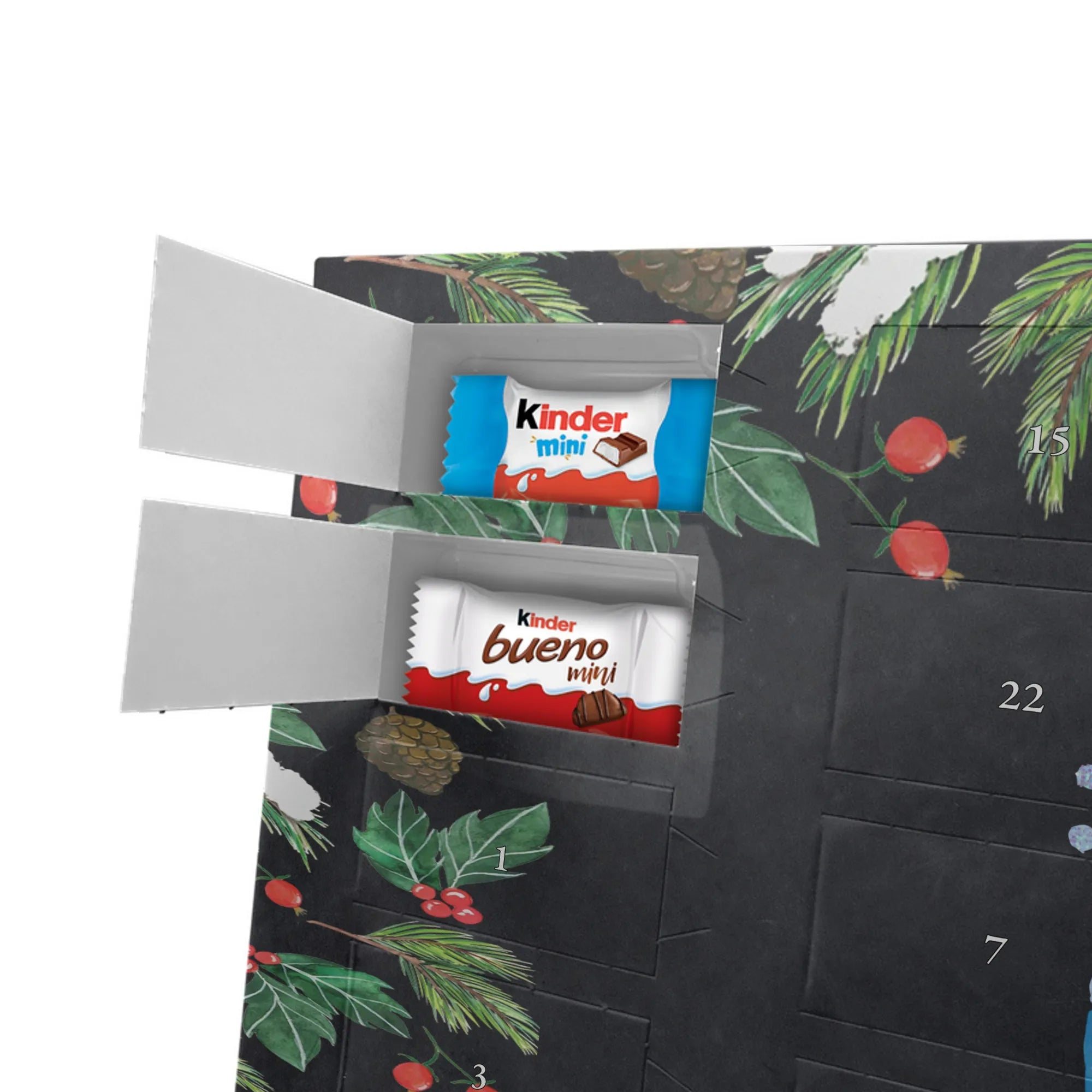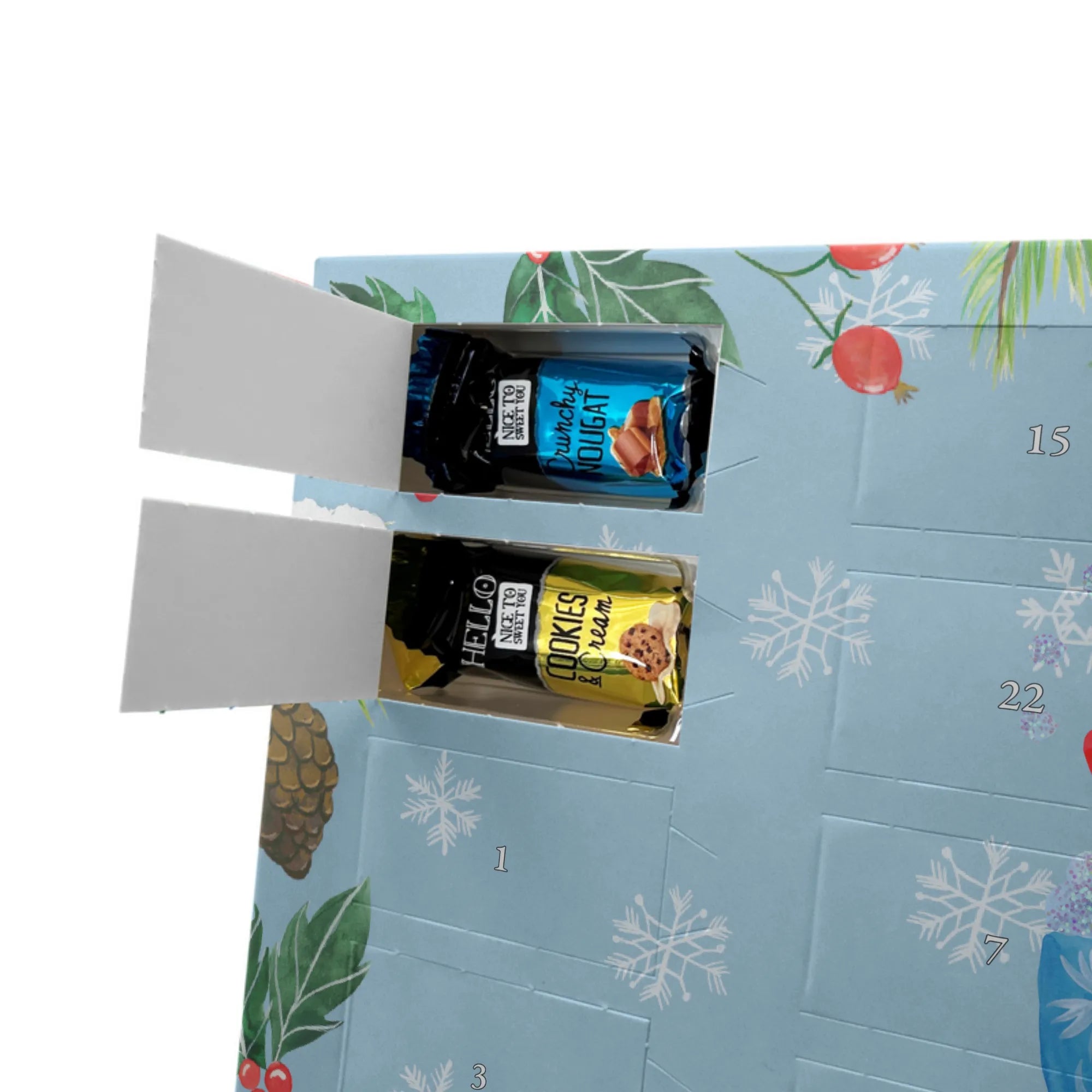 Make the Advent season even more special with the personalized chocolate Advent calendar from Mr. & Mrs. Panda. This unique Advent calendar is printed with your desired name or a custom text and features exclusive designs and sayings from the renowned designer duo. It's not only a visual highlight but also delights taste buds with 24 high-quality chocolate balls in various colors. The brilliant print quality and the silk-matte finish make this calendar a true eye-catcher during the Christmas season.