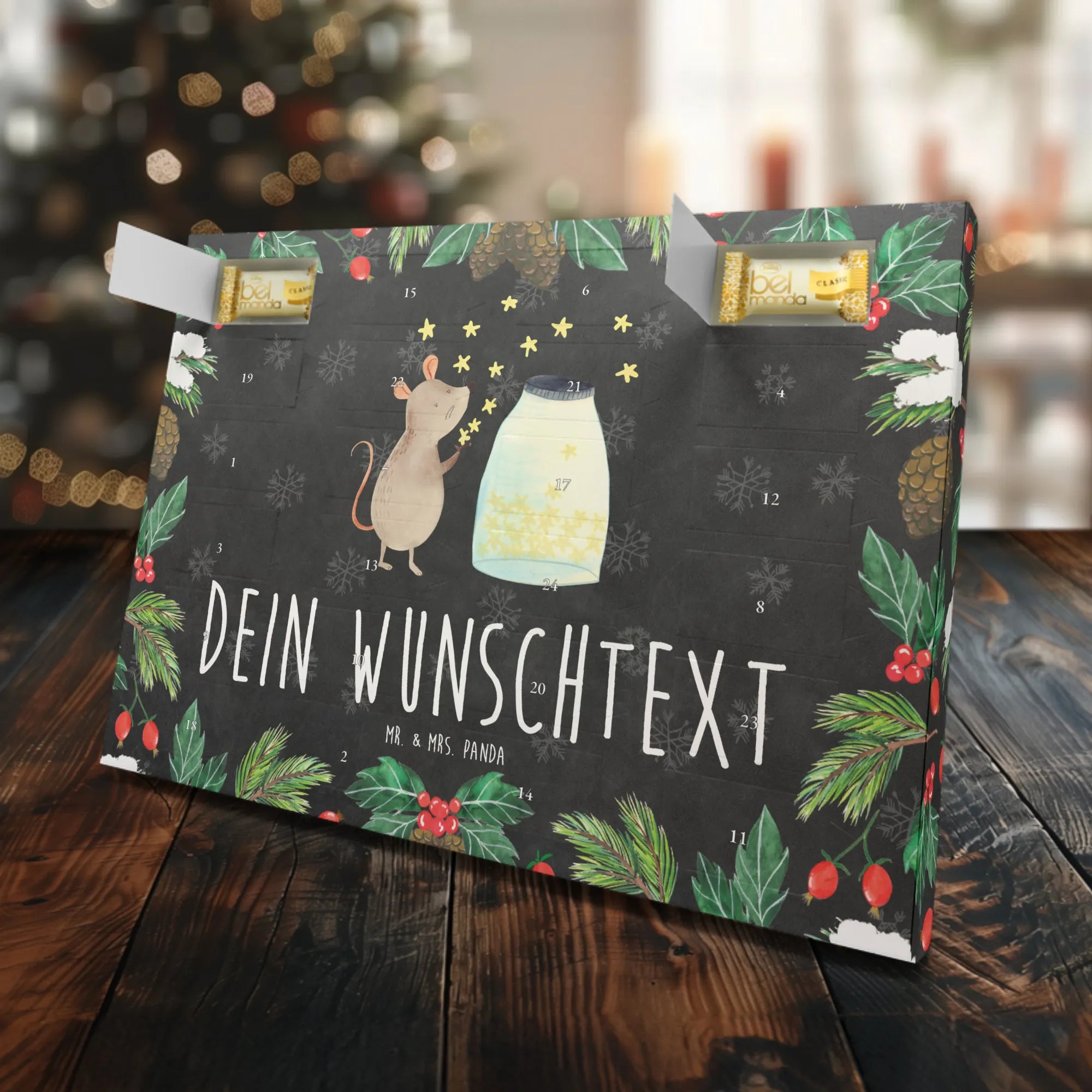 Personalisierter Marzipan Adventskalender Maus Sterne - Schwarz