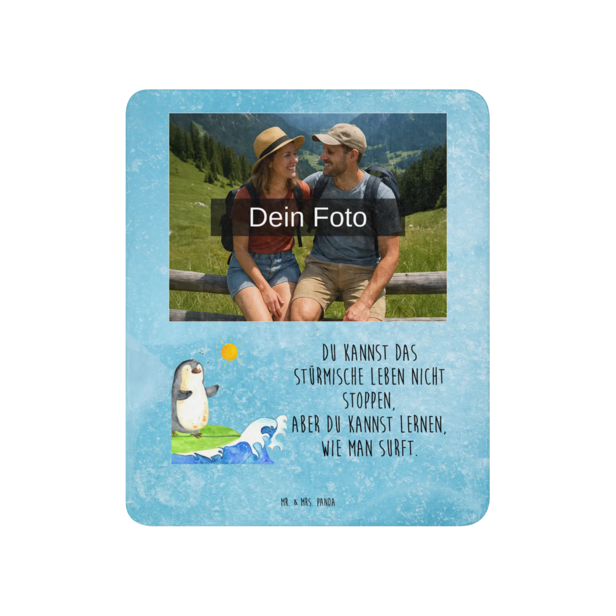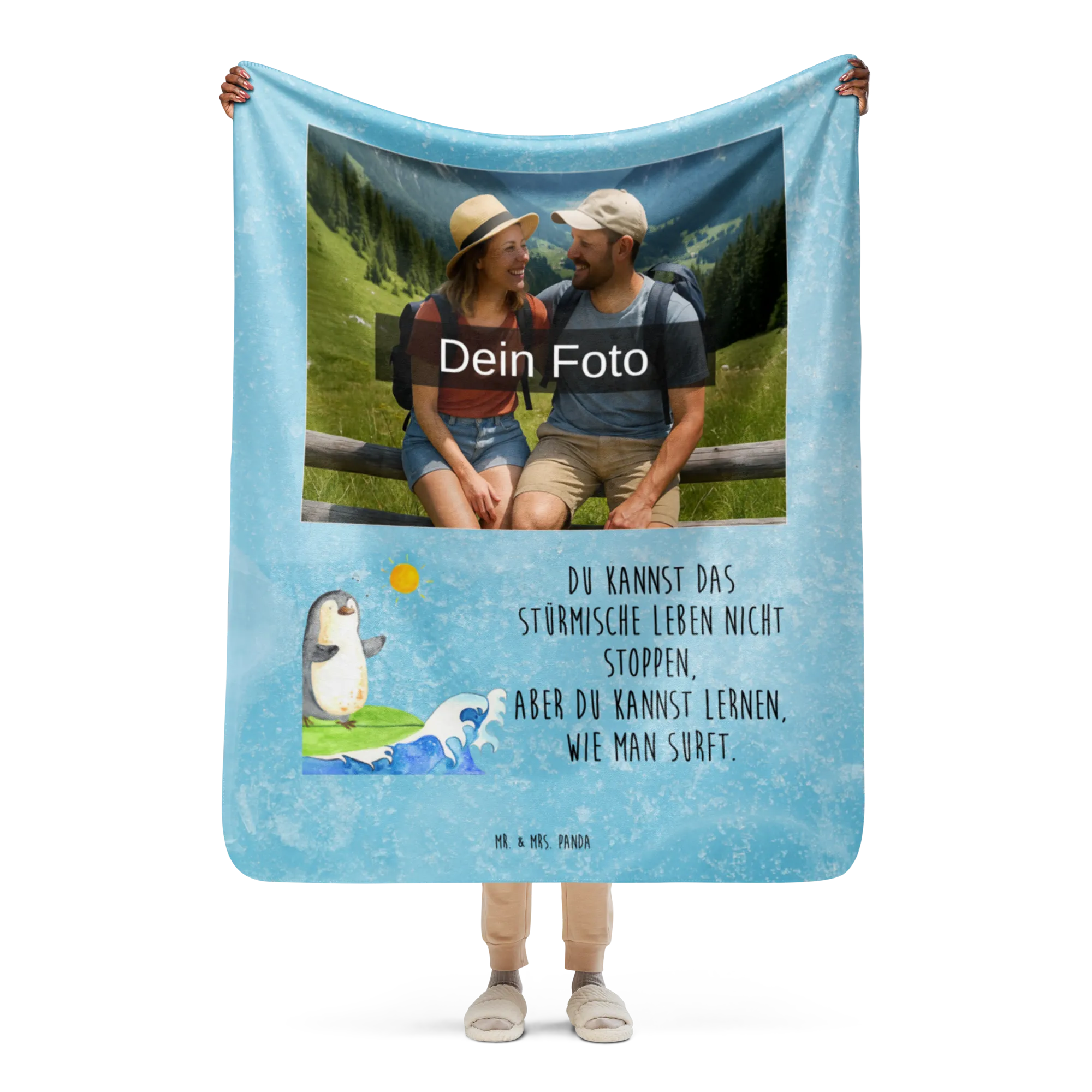 Sherpa Photo Cuddle Blanket Penguin surfer - 130 x 155 cm