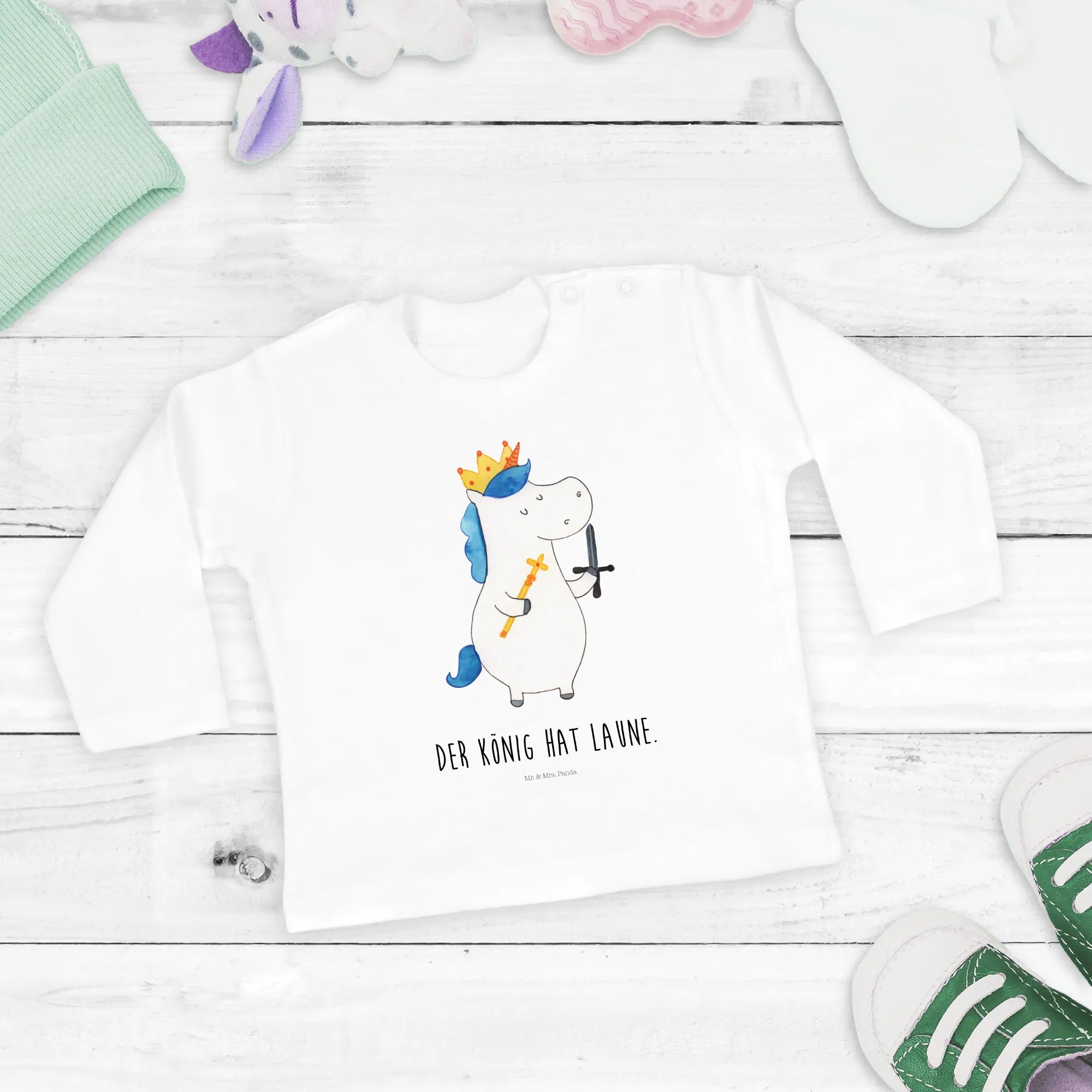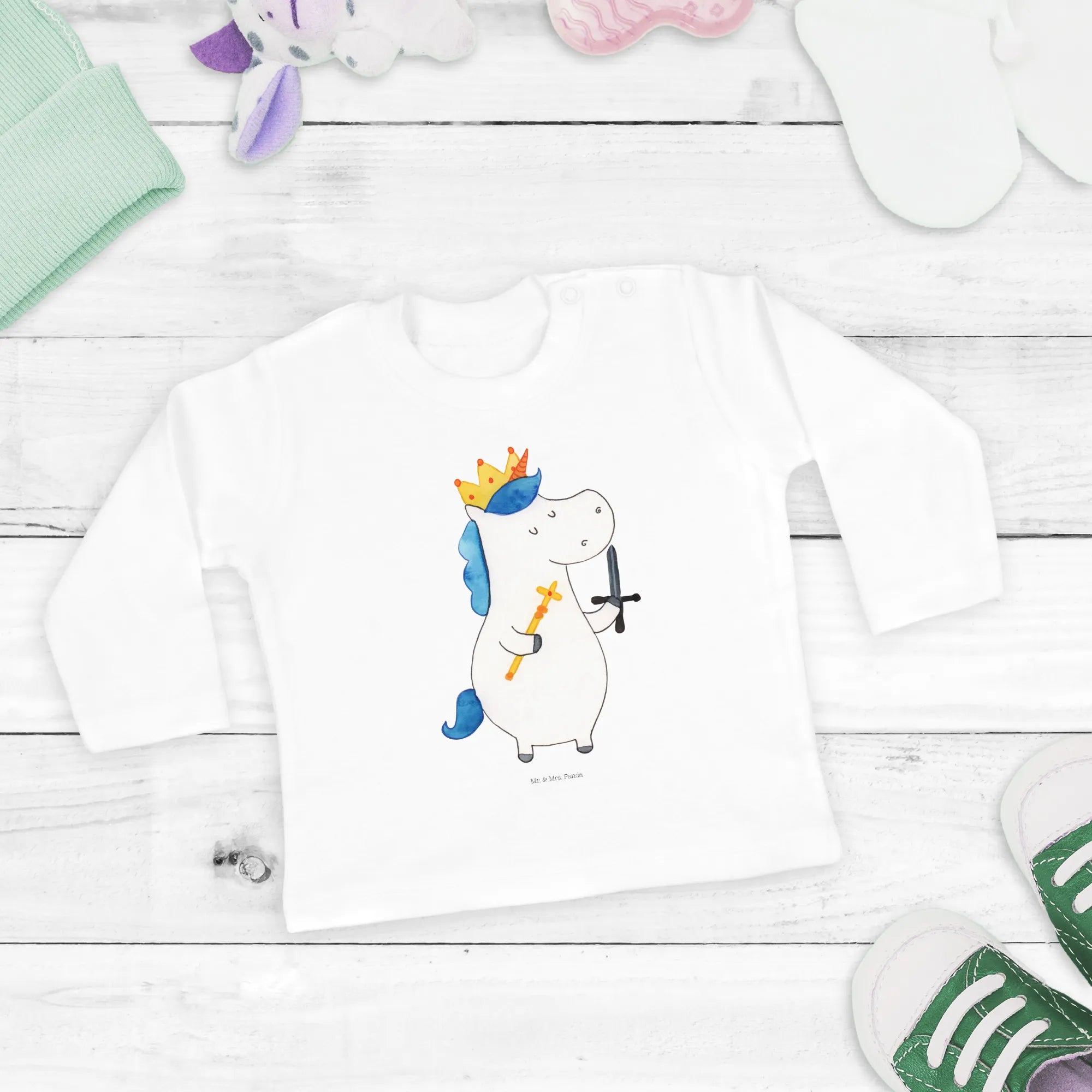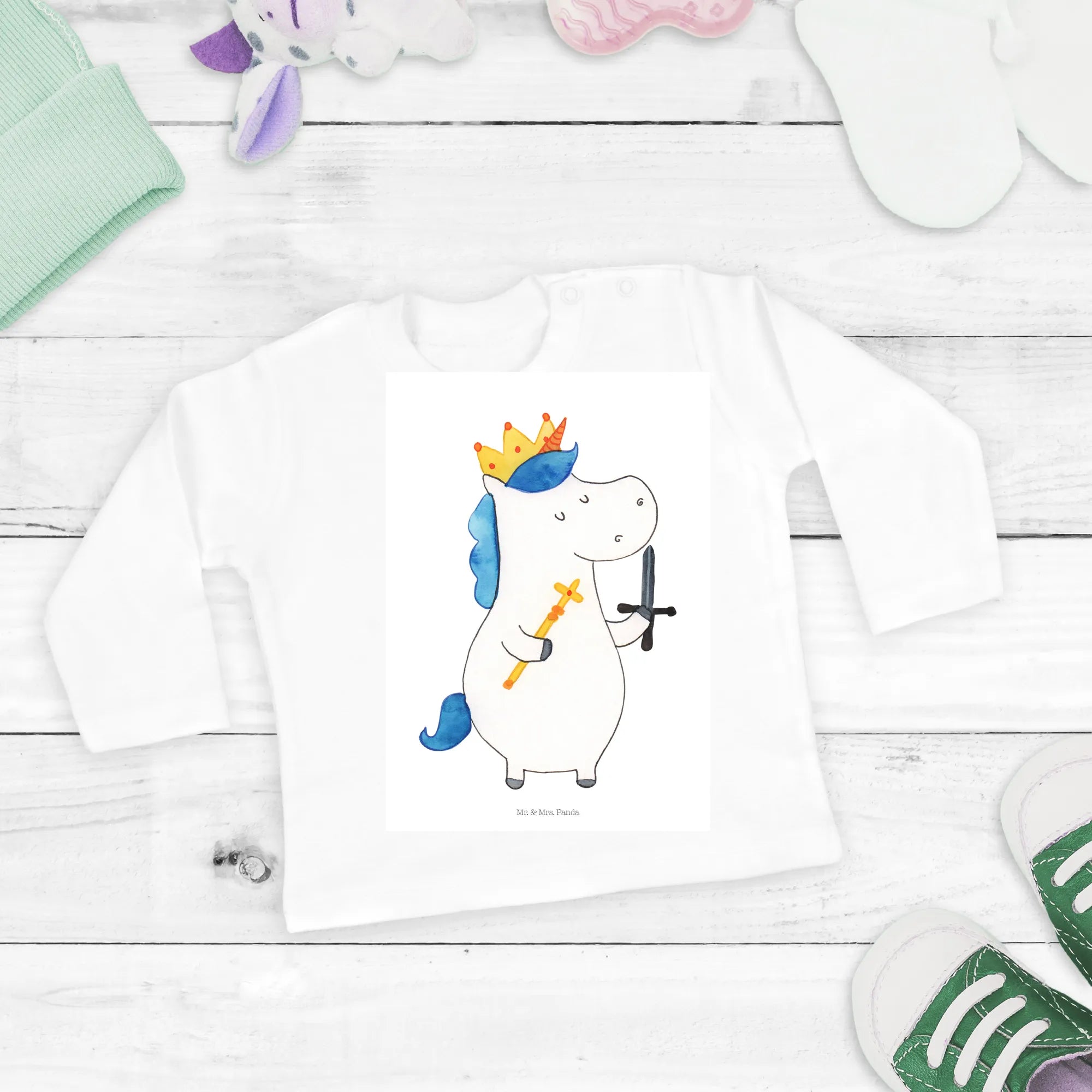 Introducing the oh-so-adorable Baby Long Sleeve Unicorn King with Sword from the charming Unicorn Collection by Mr. & Mrs. Panda! This delightful piece is crafted for little dreamers and tiny adventurers, offering the perfect blend of comfort and style.