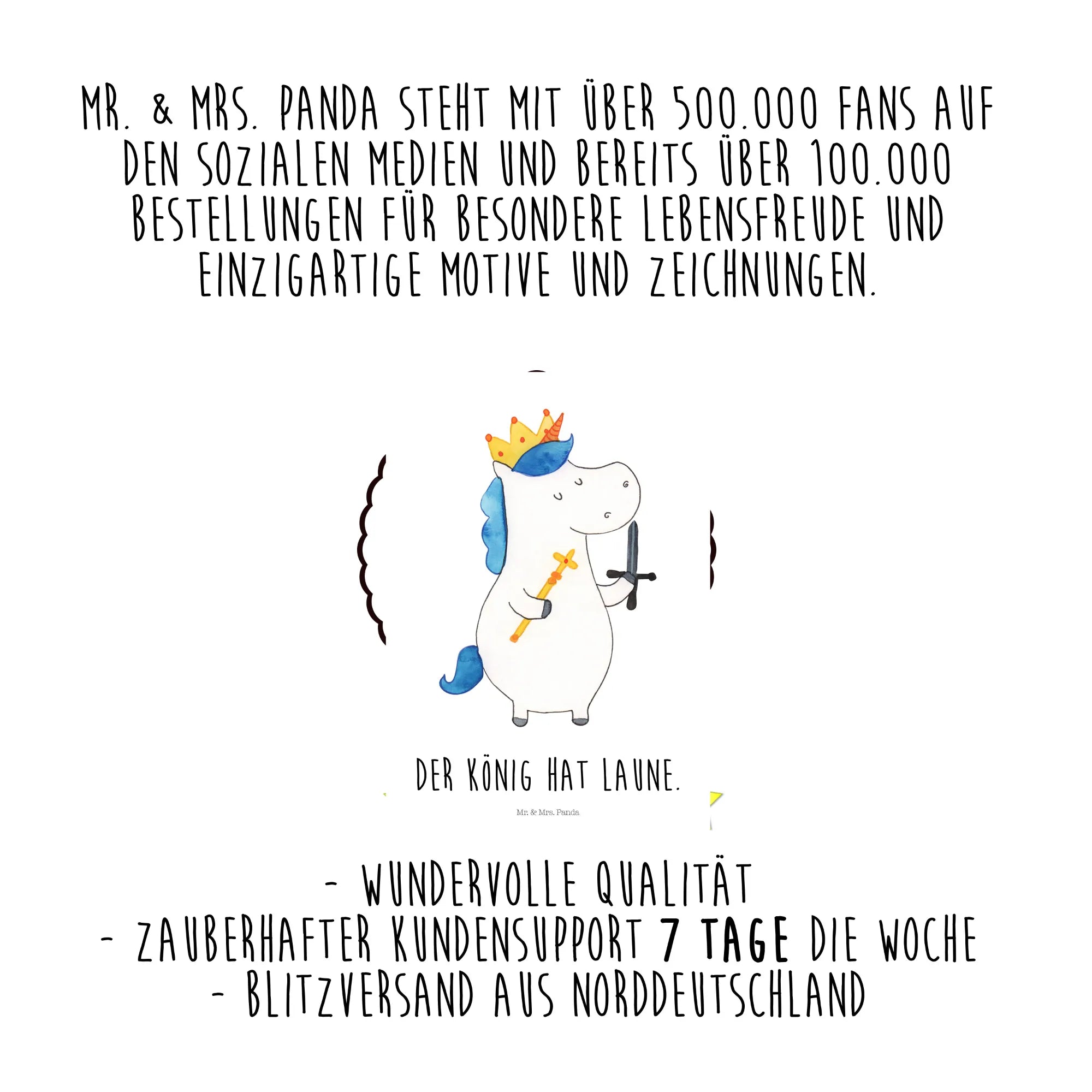 Our Unicorn King stands proud with his sword and crown, ready to rule the land of imagination. With the saying, 'Der König hat Laune,' he calls upon us to cherish the playful moments life has to offer. He’s not just a regal figure; he’s a beacon of joy, reminding us to laugh often and embrace the whimsical side of life. Whether as a gift for your dearest boyfriend or an enchanting treat for yourself, this motif sparks inspiration and creativity—perfect for young and old alike looking to infuse their world with a touch of magic.