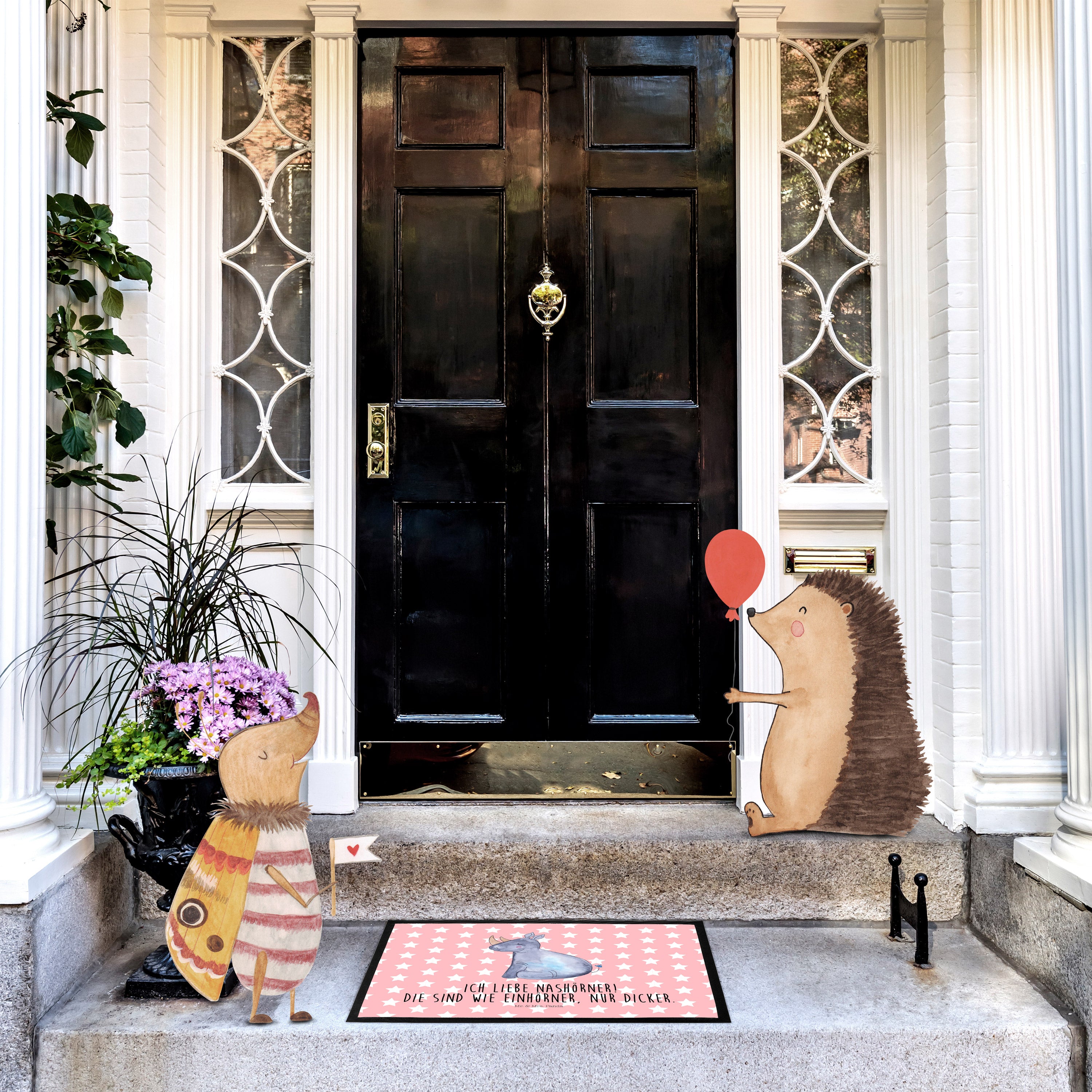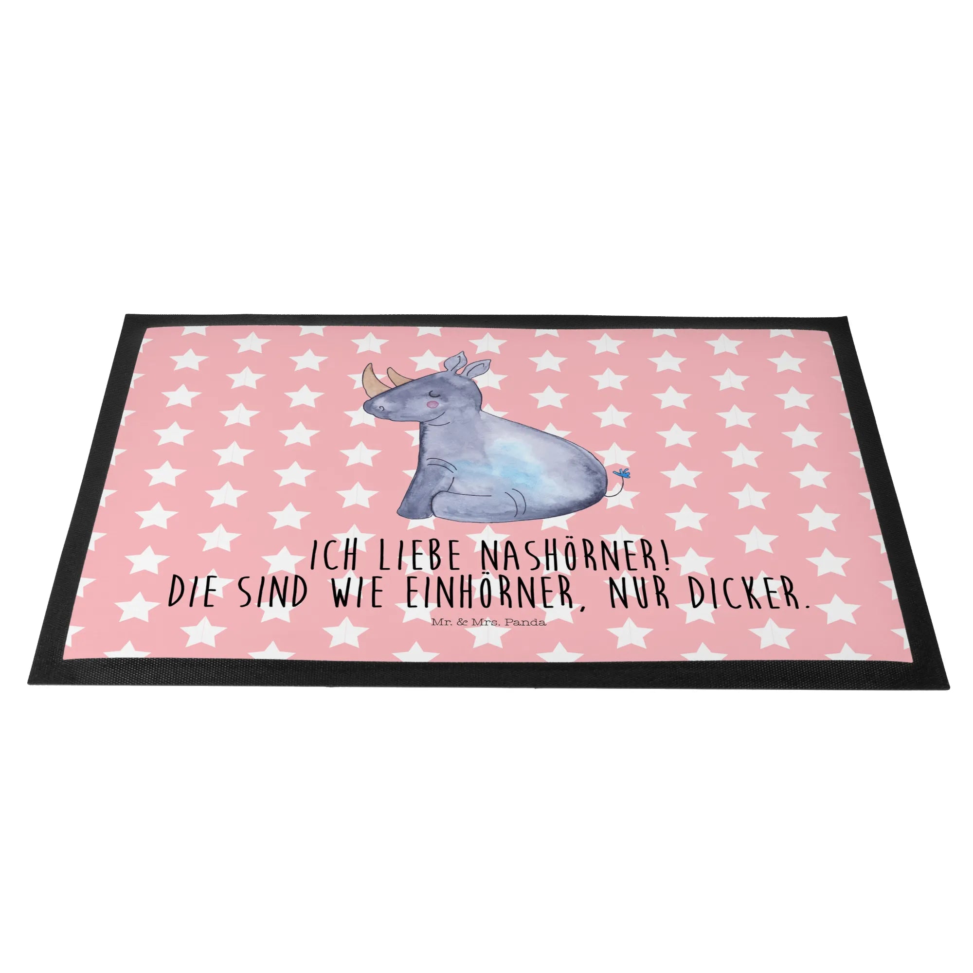 Measuring a generous 60 x 90 cm (24 x 35 inches), this doormat is perfectly sized for any front door, creating an eye-catching focal point right at your threshold. The charming motif showcases a cute, chunky rhino with a happy expression. The slogan "Ich liebe Nashörner. Die sind wie Einhörner, nur dicker" speaks volumes with its humor, reminding everyone that uniqueness is to be celebrated—even in the animal kingdom! This playful yet heartwarming saying can bring a smile to anyone's face, making it an outstanding gift for animal lovers, unicorn enthusiasts, or anyone who appreciates a good laugh.