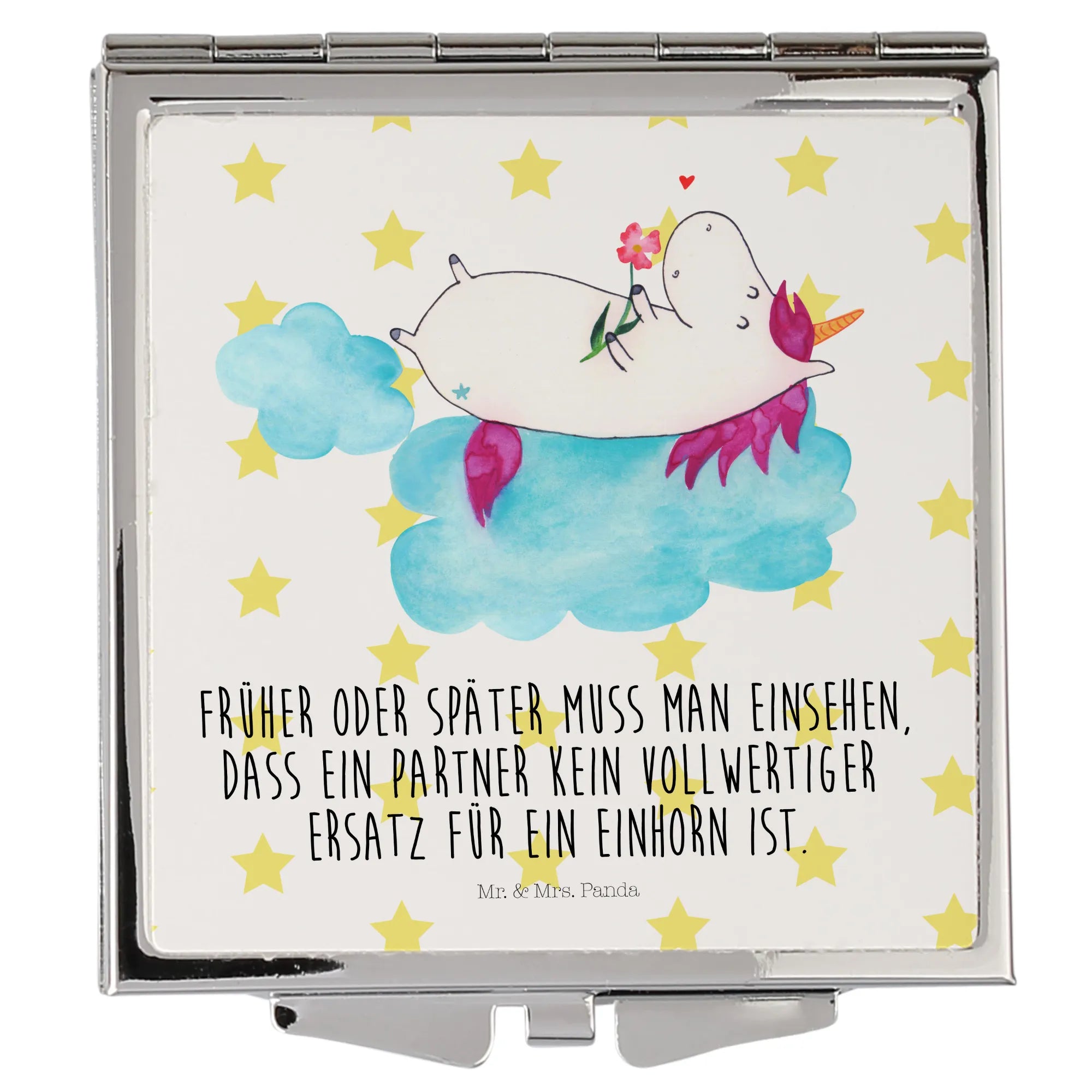 Discover the beauty of our square Handbag Mirror from Mr. & Mrs. Panda, designed to be your perfect travel companion. Measuring 60 mm x 60 mm x 8 mm, this stylish mirror is adorned with charming motifs and lighthearted sayings that will brighten your day. Made with high-quality glass and coated in aluminum, the mirror not only boasts an impressive durability but also features an elegant silver-plated edge that enhances its aesthetic allure. Its compact square shape ensures that it fits effortlessly into any purse or backpack, making it the ultimate accessory for on-the-go touch-ups. The easy-to-use folding mechanism ensures a secure closure, keeping your mirror safe from scratches. Whether as a thoughtful gift or a treat for yourself, this handbag mirror showcases the delightful essence of Mr. & Mrs. Panda. Suitable for quick make-up adjustments or a quick check before you head out, it's a must-have for anyone who values functionality alongside style. Just wipe it clean with a damp cloth to maintain its sparkle.