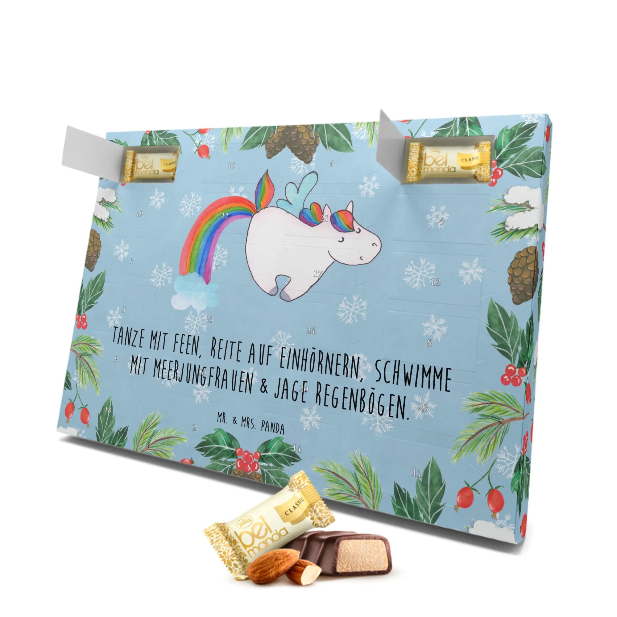 Der Marzipan Adventskalender 'Einhorn Fliegendes Pferd' aus der Einhorn-Kollektion von Mr. & Mrs. Panda ist das perfekte Geschenk für alle Einhornliebhaber und Fantasiefreunde. Mit seinem zauberhaften Design und dem motivierenden Slogan 'Tanze mit Feen, reite auf Einhörnern, schwimme mit Meerjungfrauen & jage Regenbögen' bringt dieser Adventskalender nicht nur Freude, sondern auch süße Überraschungen in die Vorweihnachtszeit.
