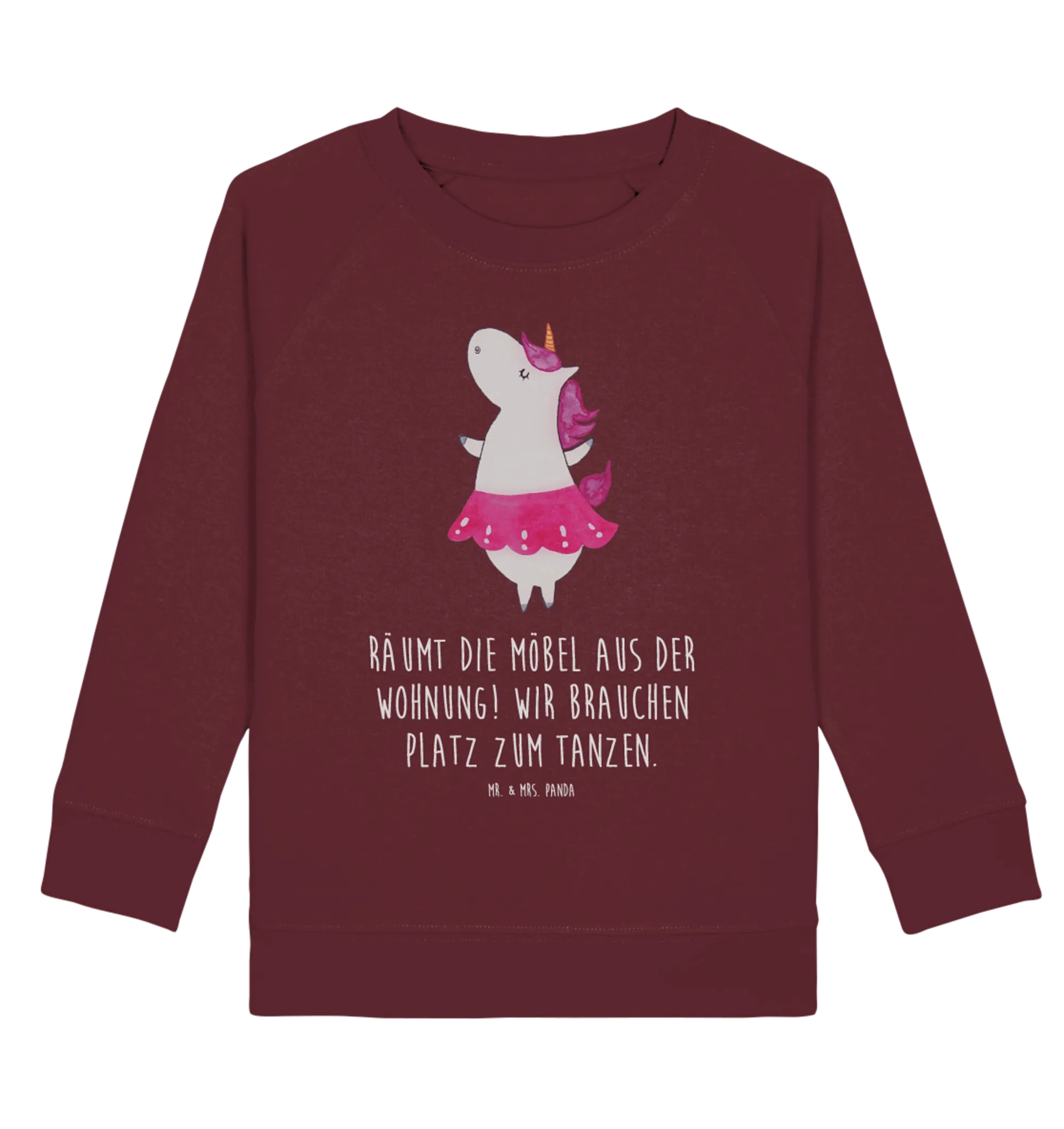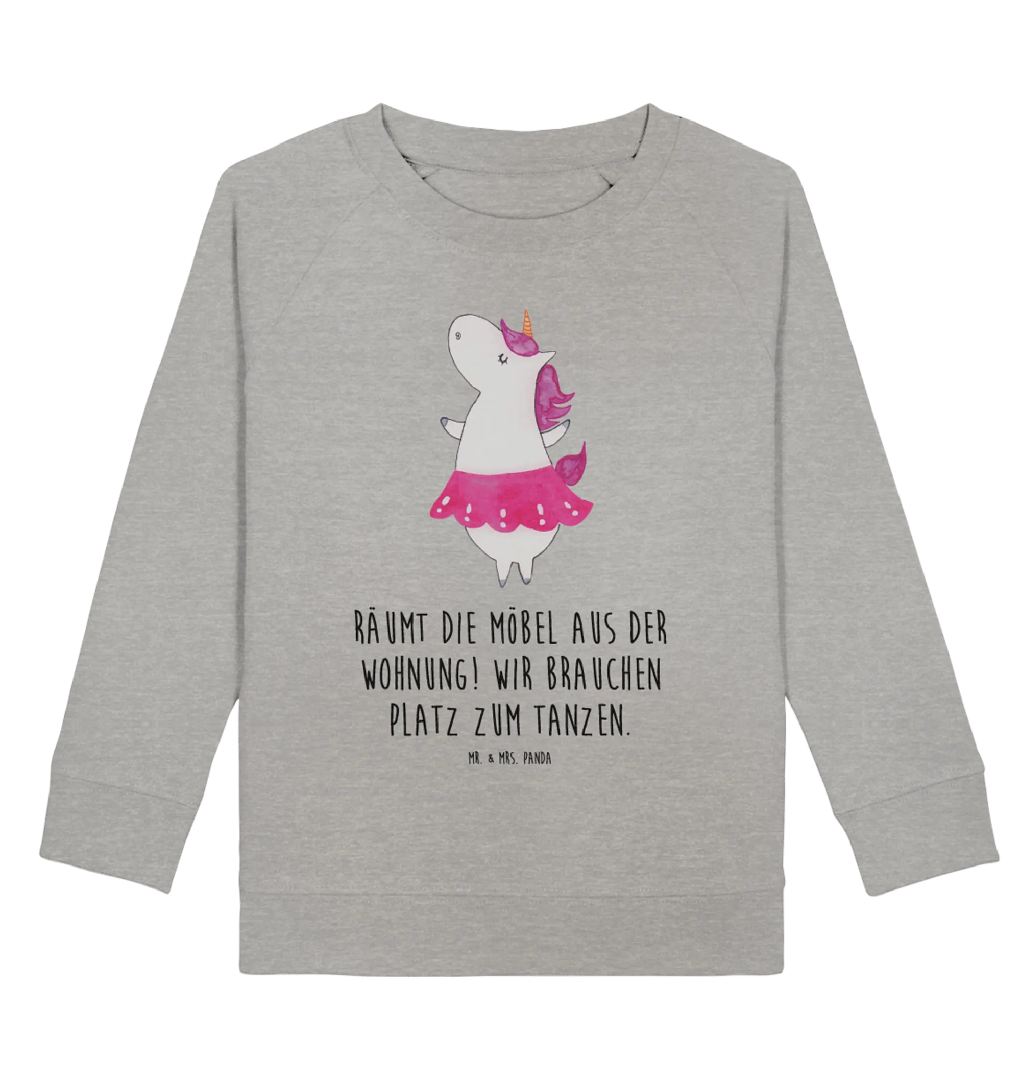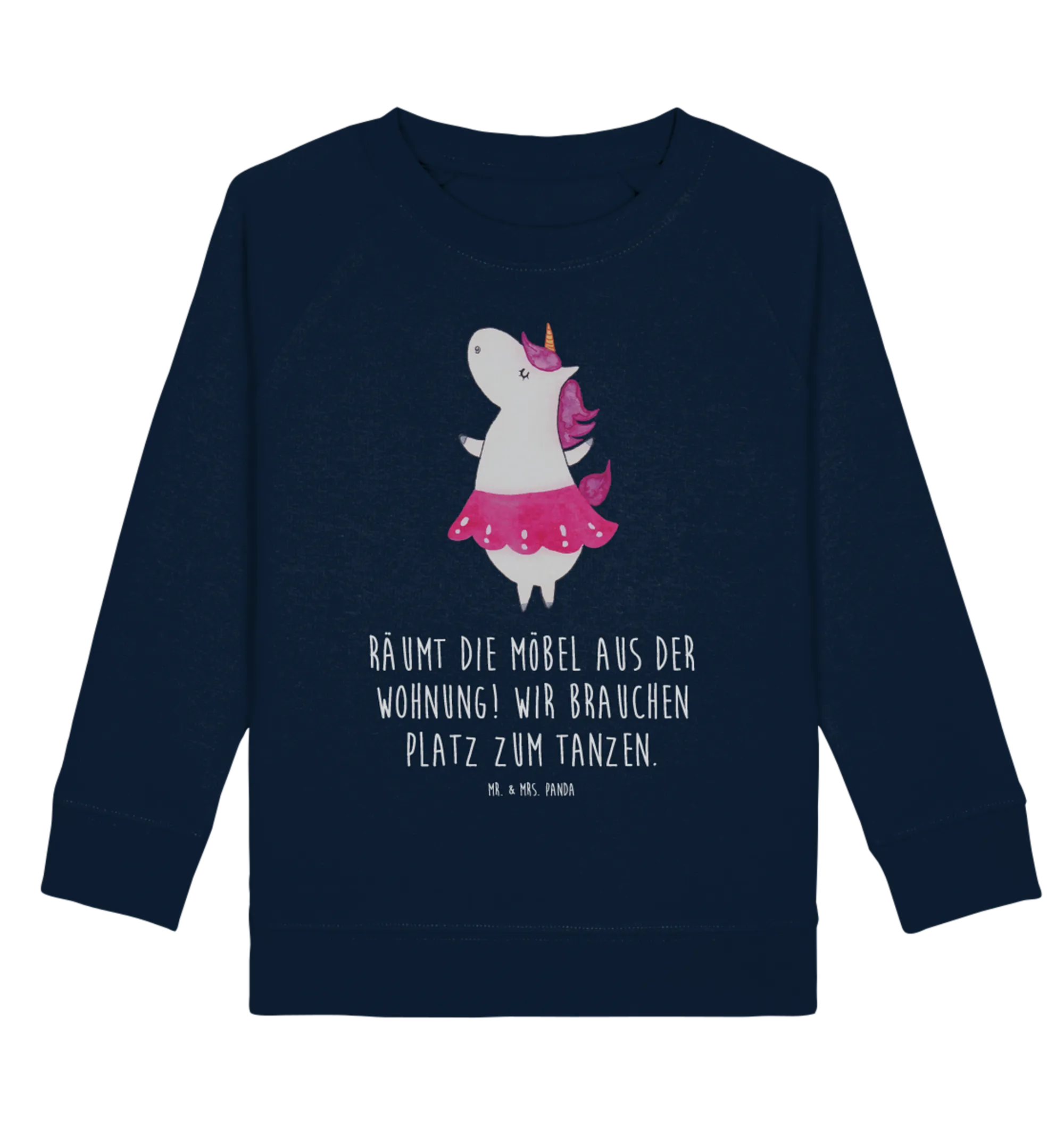 Mit dem Slogan „Räumt die Möbel aus der Wohnung! Wir brauchen Platz zum Tanzen!“ bringt dieser Pullover nicht nur Freude, sondern auch die richtige Portion Humor ins Spiel. Zudem wird jeder Pullover mit viel Liebe und Hingabe von Mr. & Mrs. Panda designt. Lass das Herz eines kleinen Mädchens höher schlagen und gönn ihr den Organic Kinder Pullover Einhorn Ballerina.