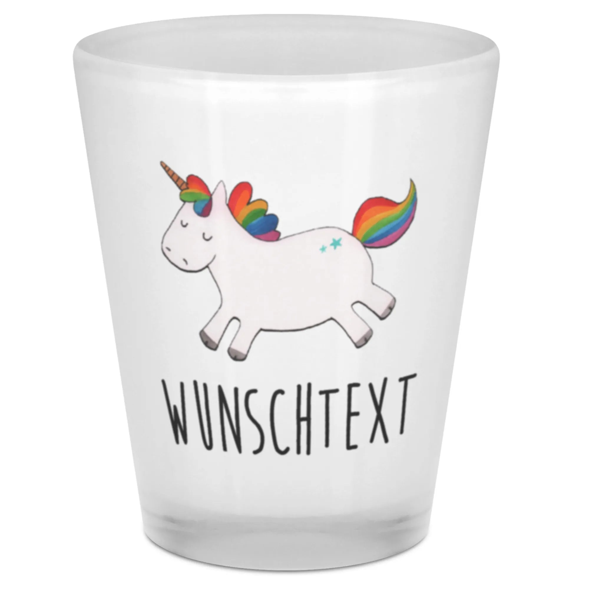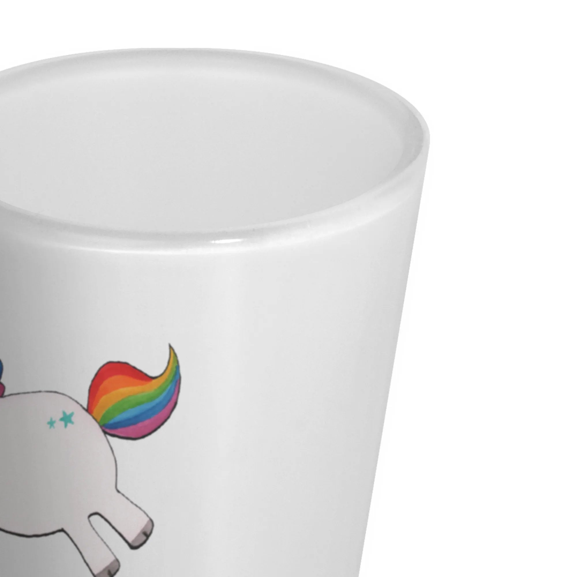 Das personalisierte Schnapsglas Einhorn Happy von Mr. & Mrs. Panda ist das perfekte Geschenk für jeden, der Freude und Lebensfreude schätzt. Mit seinem entzückenden Einhorn-Motiv und dem witzigen Slogan "Fresst meinen Sternenstaub, ihr Langweiler." bringt es garantiert ein Lächeln auf die Gesichter der Beschenkten.