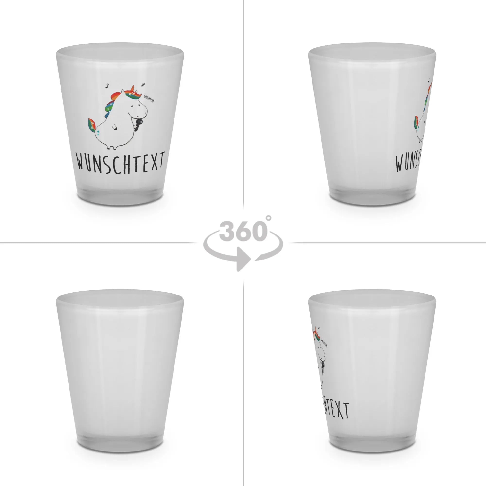 Entdecke unser wunderschönes personalisiertes Schnapsglas mit dem zauberhaften Einhorn Sänger Motiv aus der bezaubernden Einhorn - Kollektion von Mr. & Mrs. Panda! Dieses besondere Schnapsglas ist nicht nur ein fantastisches Geschenk, sondern auch das perfekte Accessoire für deine nächste Feier, ob Geburtstag, Hochzeit oder einfach für eine unvergessliche Party mit Freunden. Unser Schnapsglas wird mit deinem Wunschnamen oder Wunschtext personalisiert und begeistert durch seinen brillant glänzenden Vollfarb-Glasdruck.
