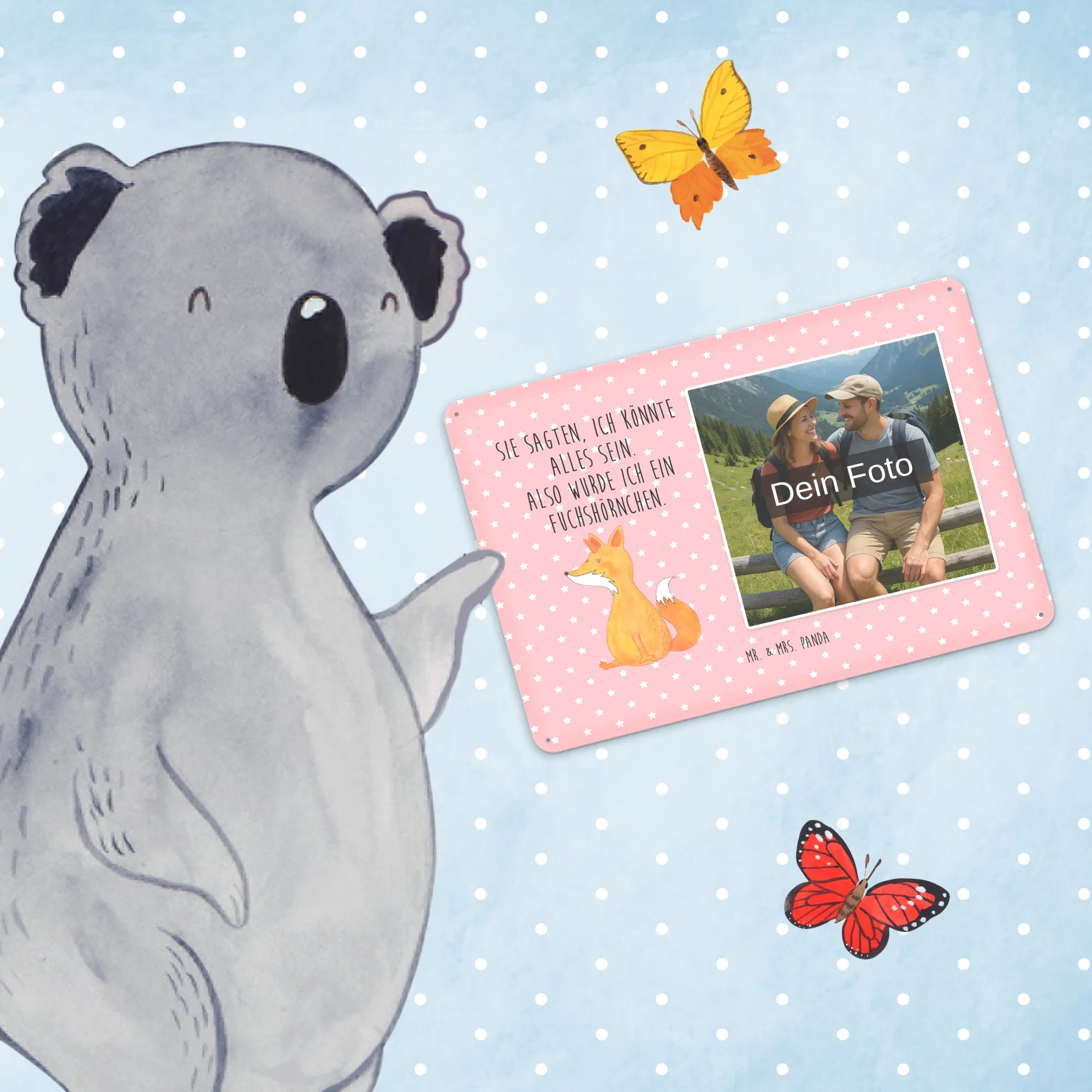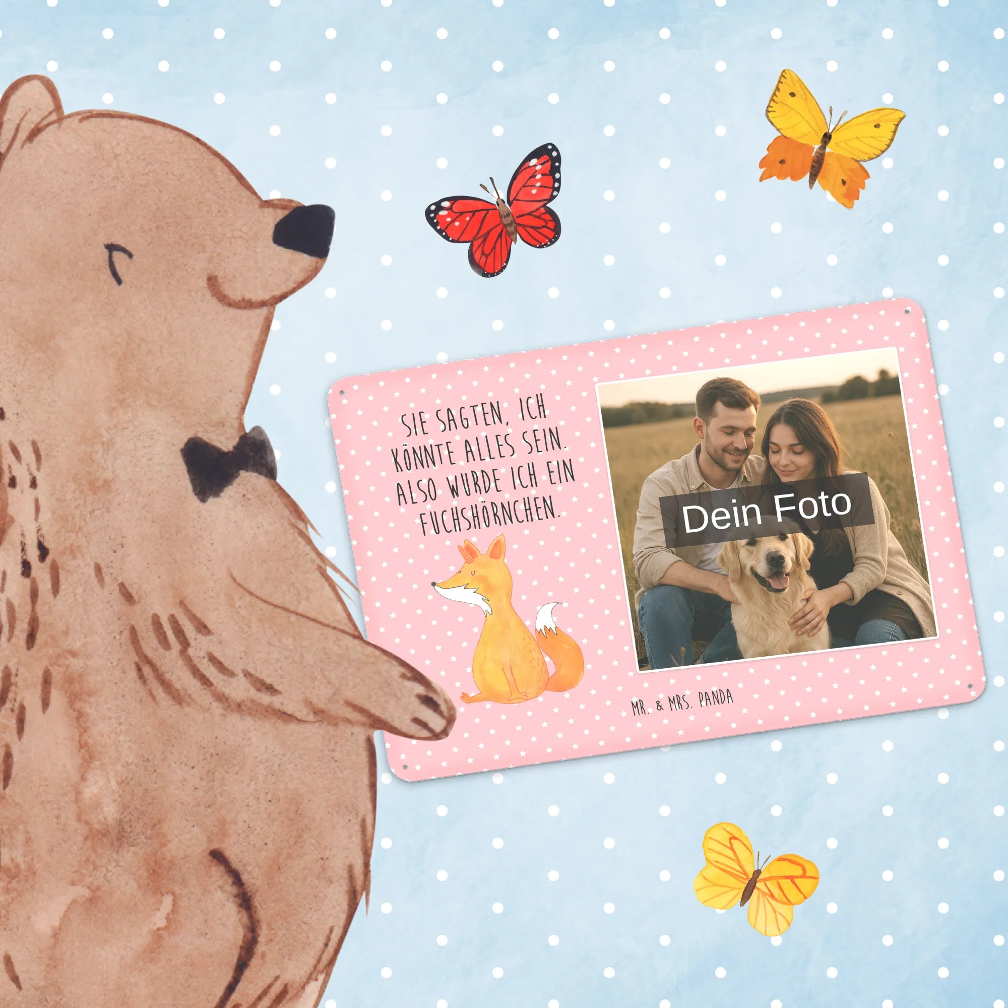 🐼 PERSONALISIERBARES FOTO-BLECHSCHILD: Stilvolles, personalisierbares Schild mit deinem Foto und süßen Motiven.