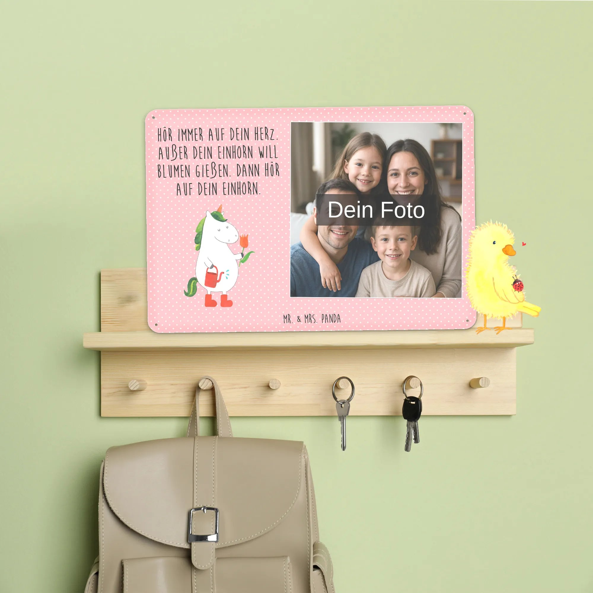 Das personalisierte Schild aus Blech von Mr. & Mrs. Panda vereint Qualität und Herz: edles Stahlblech, seidenmatte Oberfläche und ein langlebiger Druck, der dein Foto und unsere süßen Sprüche wunderbar zur Geltung bringt. Achte bei der Datei auf eine hohe Auflösung und darauf, dass der Bildausschnitt passt – so sitzt dein Motiv später perfekt im Rahmen des Blechschilds. Lade nur Bilder hoch, für die du die Rechte besitzt. Maße: 70 mm x 148 mm x 210 mm. Das Schild ist ohne Wölbung verarbeitet, hat umgefalzte Kanten, abgerundete Ecken und vier Bohrungen zur einfachen Montage an Tür oder Wand. Ideal als persönliche Geschenkidee oder stilvolle Deko im Innenbereich. In verschiedenen Größen erhältlich, damit du das passende Format wählst. Die Oberfläche ist pflegeleicht und kann mit einem feuchten Tuch gereinigt werden. Hol dir mit unserem personalisierten Schild aus Blech ein liebevolles Erinnerungsstück direkt ins Zuhause – mit dem typischen Mr. & Mrs. Panda Charme.