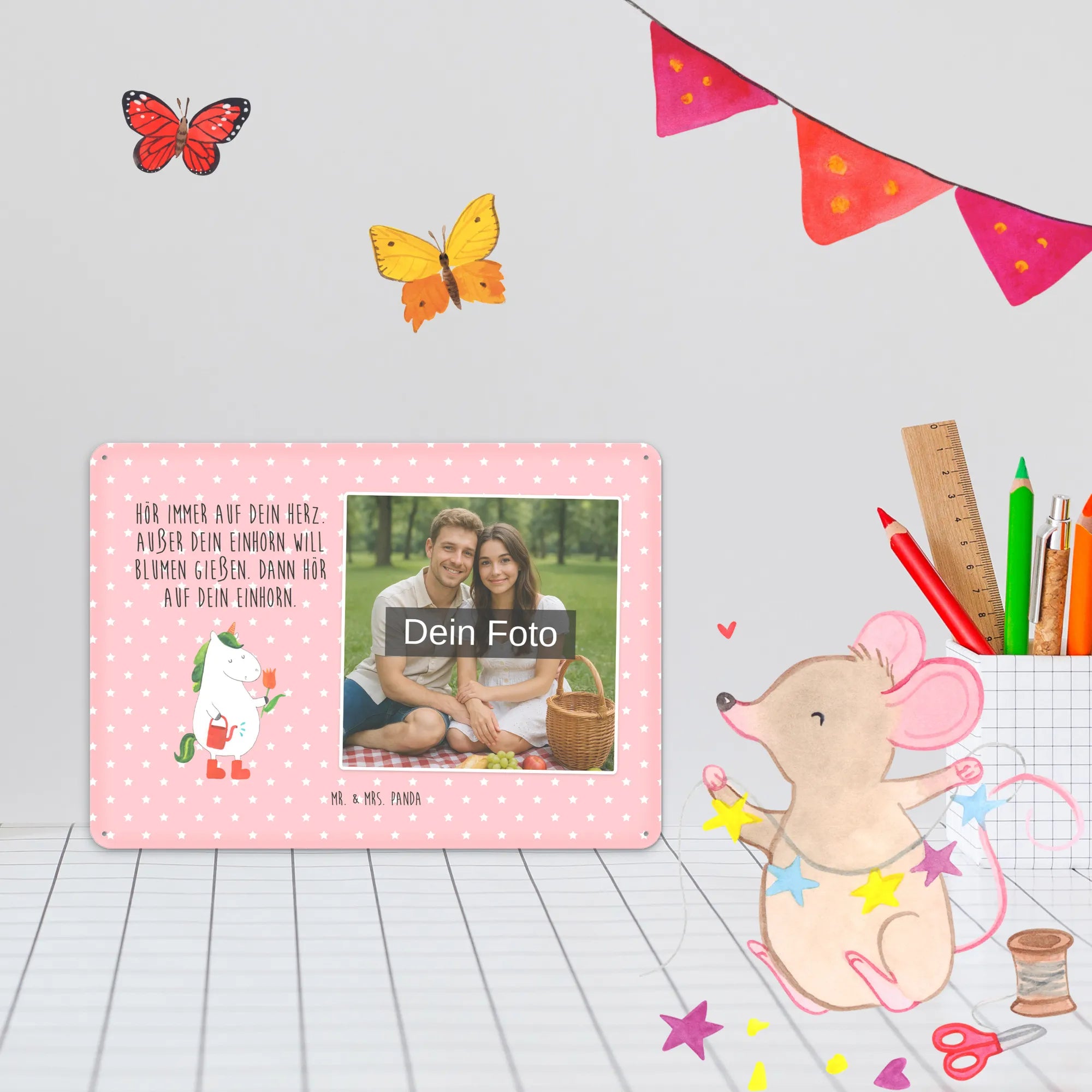 Personalized Photo Metal Sign unicorn gardener - DIN A6