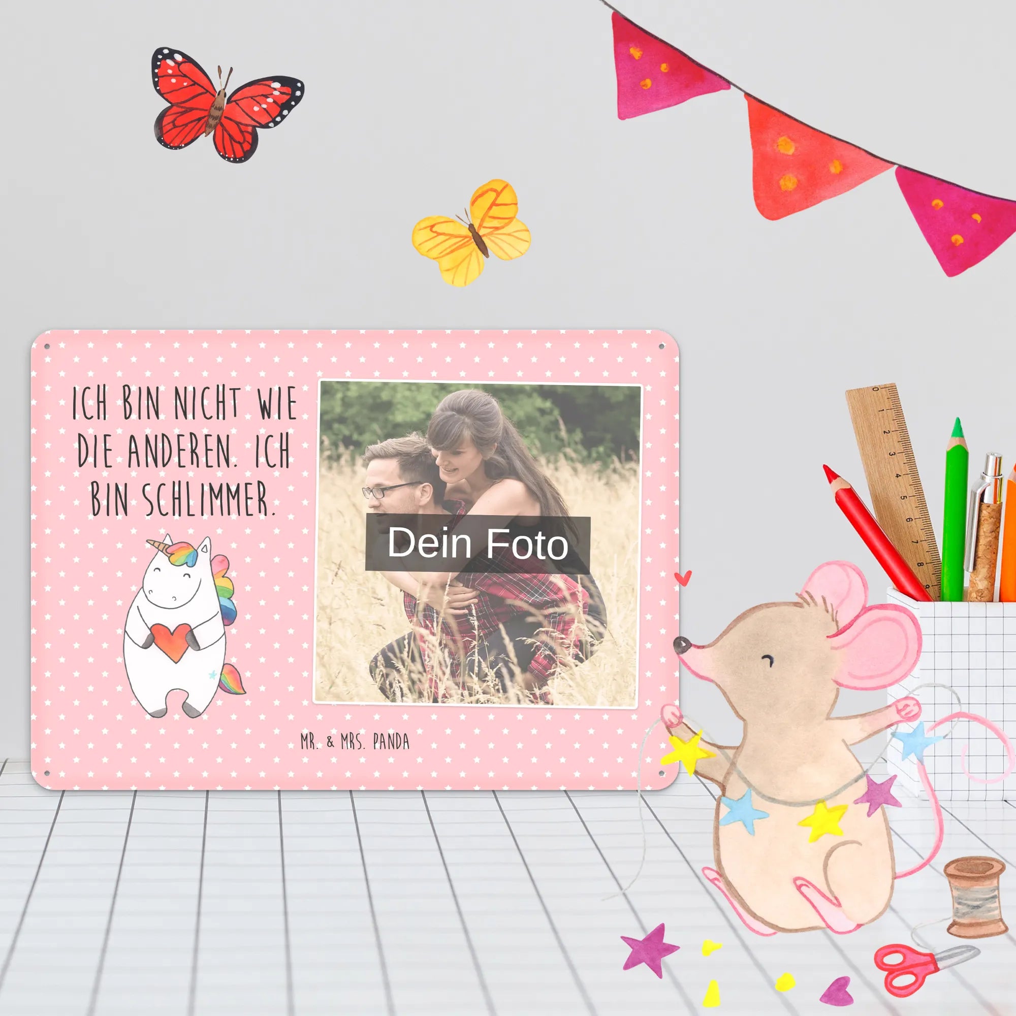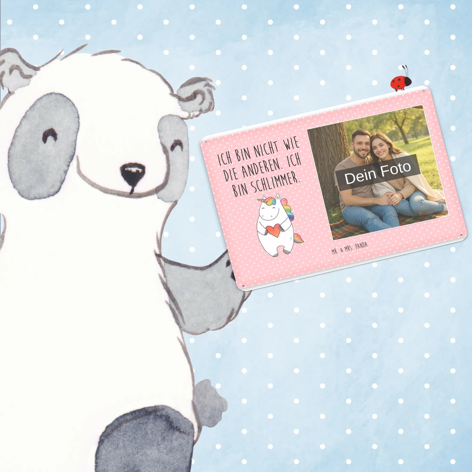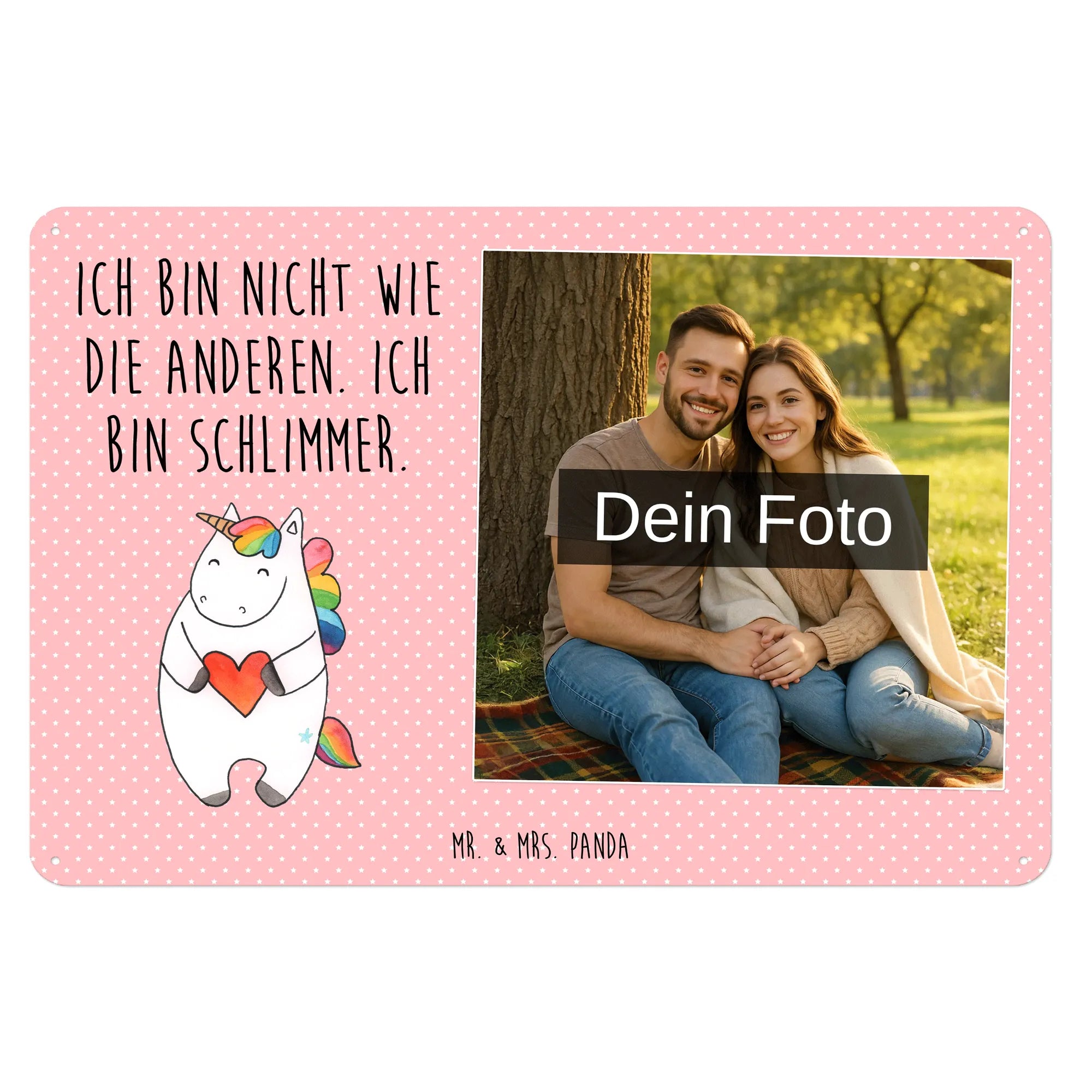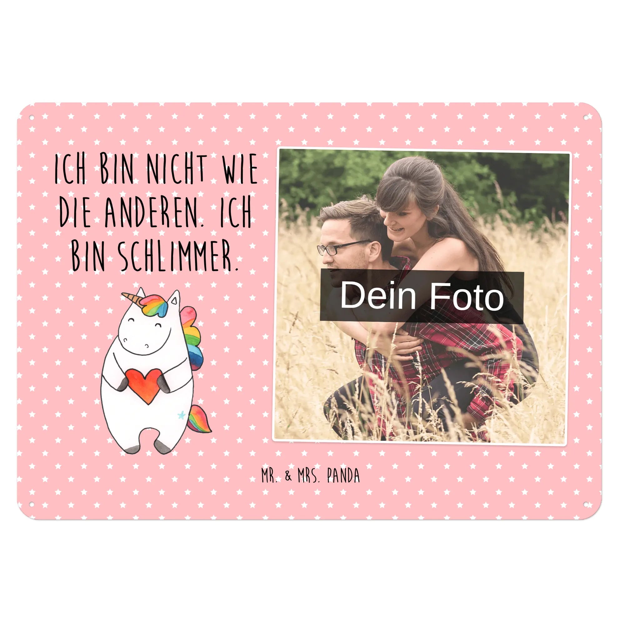 Jetzt personalisieren: Gestalte dein individuelles Foto Blechschild von Mr. & Mrs. Panda und verschenke Freude — einfach Foto hochladen & bestellen!