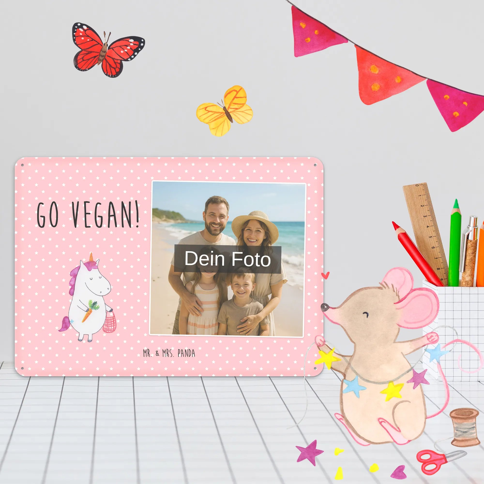 Personalized Photo Metal Sign unicorn Vegan - DIN A6