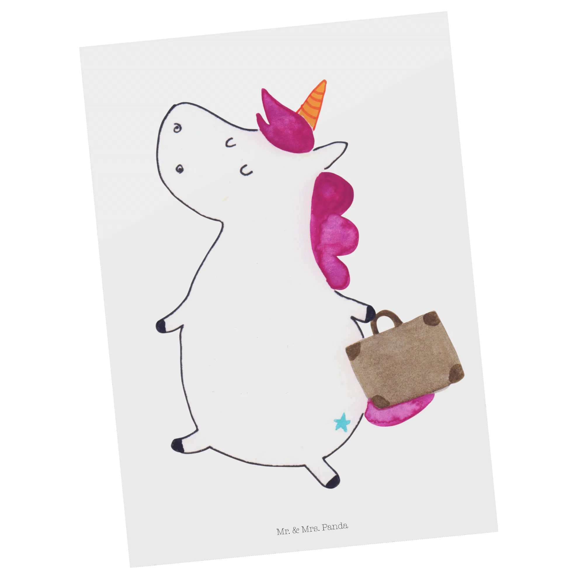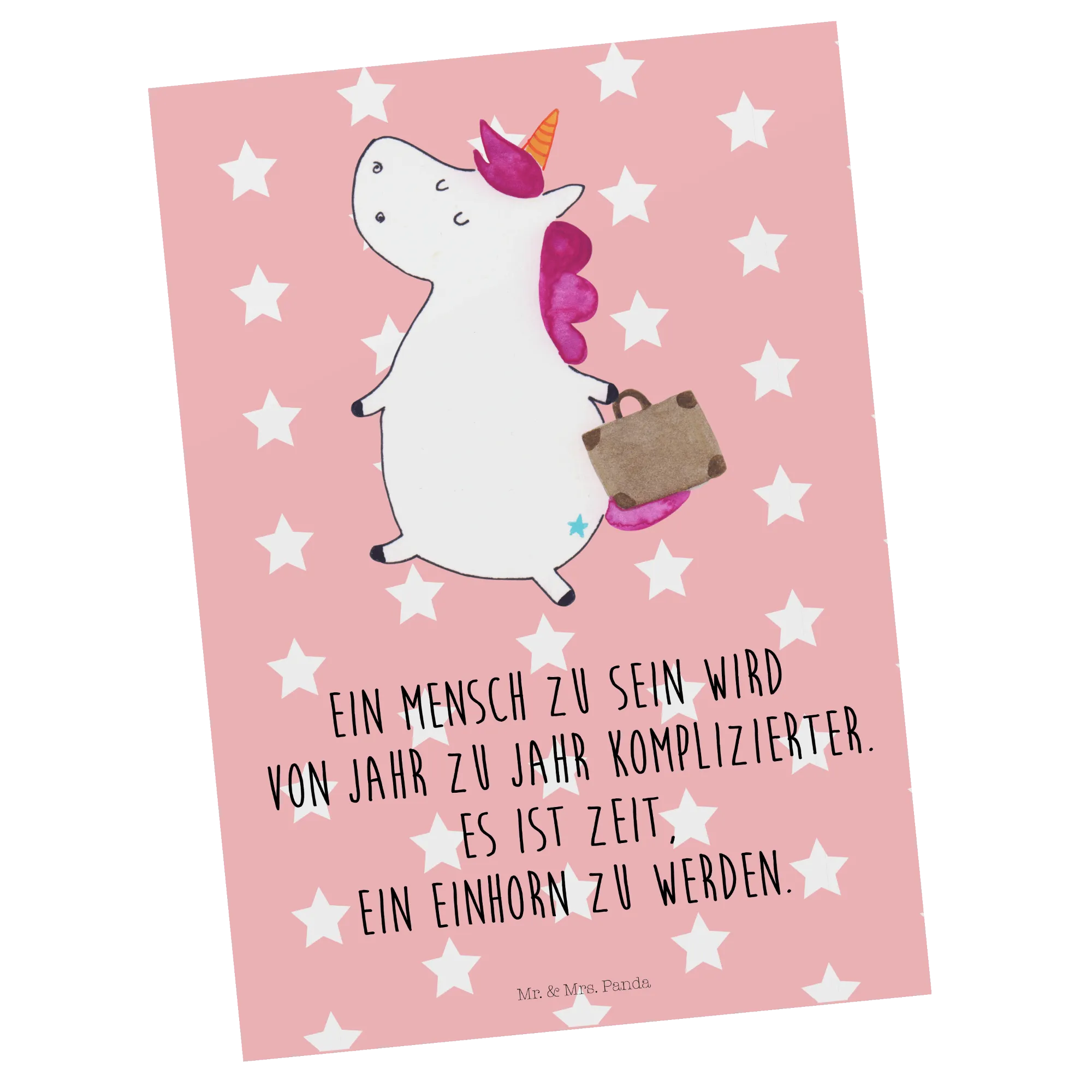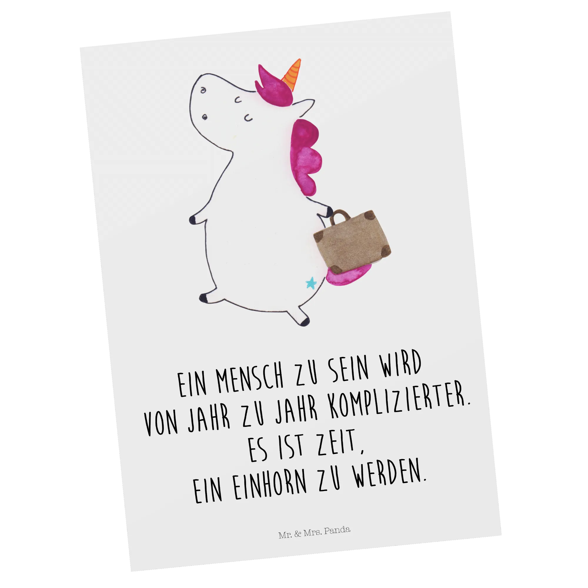 Postcard unicorn Suitcase - with saying - White