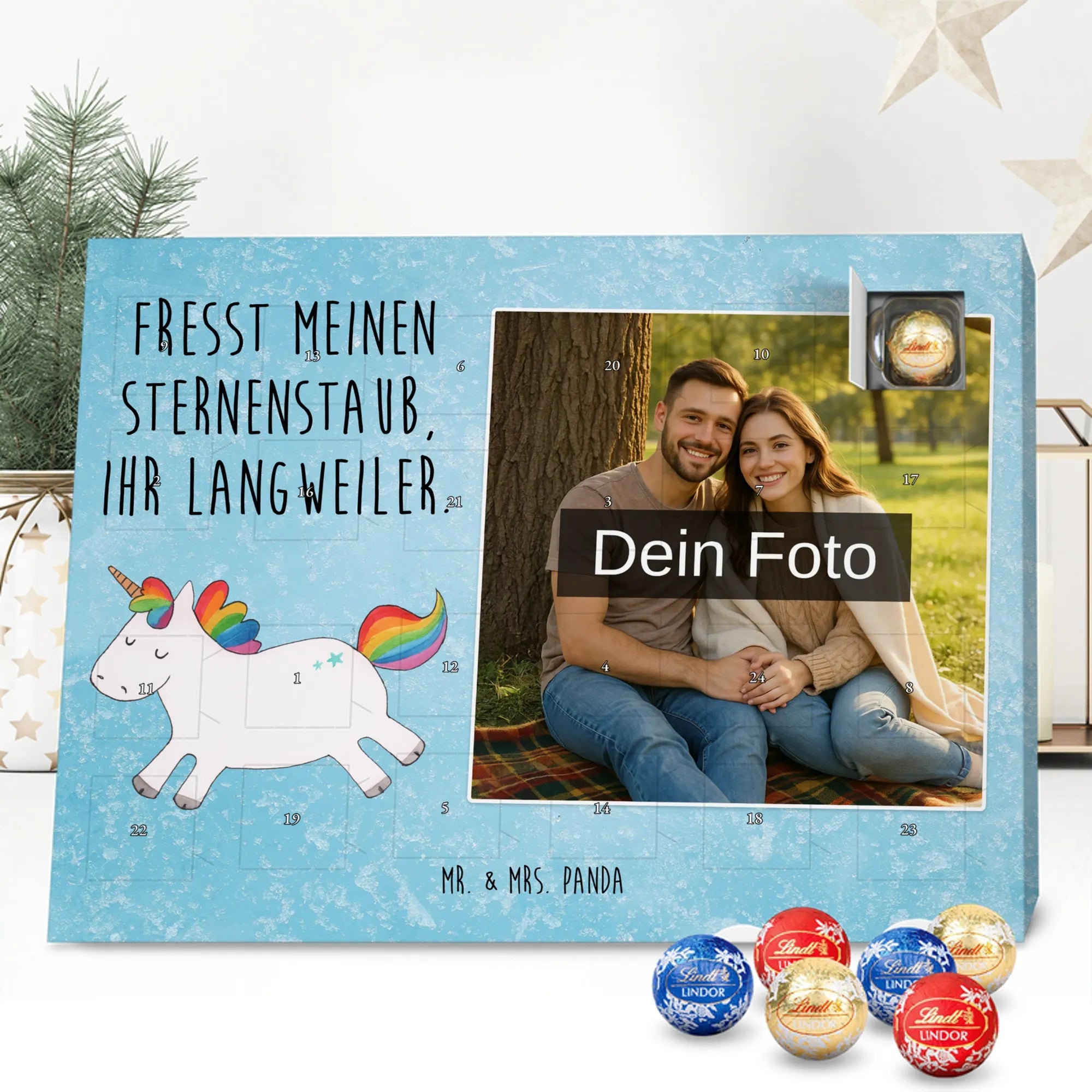 Wunderschöner Personalisierter Schoko Foto Adventskalender von Mr. & Mrs. Panda – perfekt zum Verschenken oder zum Verwöhnen. Dieser Adventskalender verbindet liebevolle Mr. & Mrs. Panda-Motive und Sprüche mit deinem persönlichen Foto auf der Vorderseite. Die hochwertige Verarbeitung mit seidenmatter Oberflächenveredelung sorgt für brillante Farben und eine edle Haptik, die man gerne anfasst. Bedruckte Seitenflächen und die stabile Ausführung machen den Kalender zum echten Hingucker in der Adventszeit. Bitte achte auf eine hohe Auflösung deines Fotos, damit das Druckergebnis klar und scharf wird, und wähle einen passenden Bildausschnitt, damit keine wichtigen Details abgeschnitten werden. Lade nur Bilder hoch, bei denen du die Rechte besitzt oder die Erlaubnis hast, besonders bei Fotos mit Personen. Wichtig: Die Fotos werden weder aufbereitet noch zugeschnitten – eine Rücknahme bei personalisierten Foto-Artikeln ist ausgeschlossen. Der Kalender kann aufgehängt oder aufgestellt werden, so wie es dir gefällt. Maße: 233 mm x 178 mm x 24 mm. Gefüllt mit Lindt Lindor Markenschokolade: 24 einzeln verpackte Markenschokoladen Kugeln in drei Sorten (Vollmilch, Feinherb, Weiße Schokolade). Zutatenhinweis: Kann Haselnüsse und Mandeln enthalten. Ein liebevoller, personalisierter Adventsmoment von Mr. & Mrs. Panda.