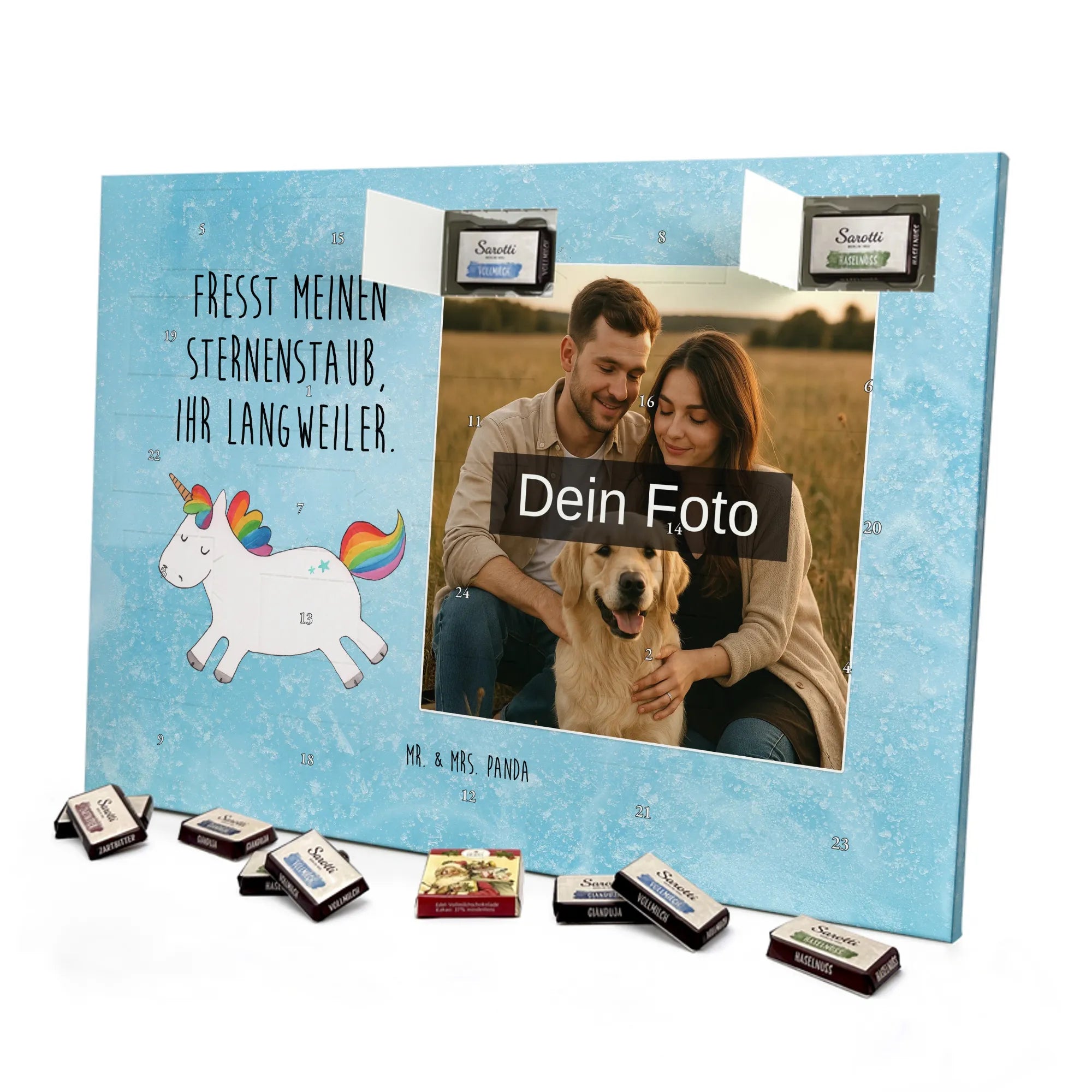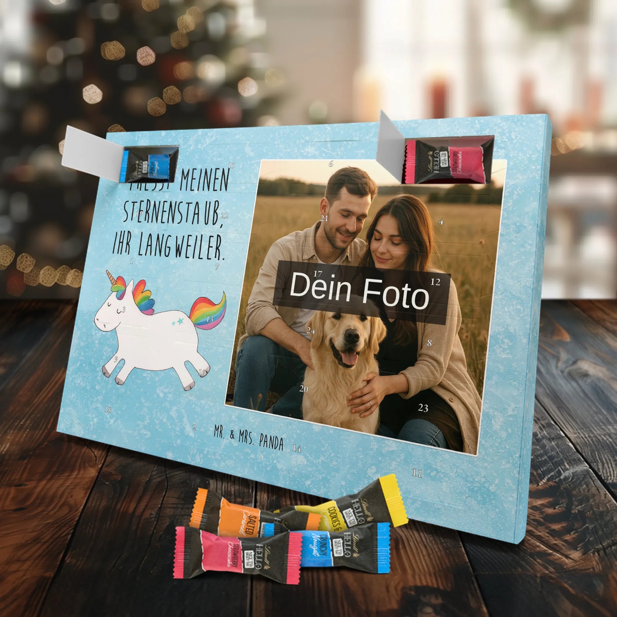 Wunderschöner Personalisierter Schoko Foto Adventskalender von Mr. & Mrs. Panda – perfekt, um dir oder deinen Liebsten die Vorweihnachtszeit zu versüßen. Dieser Adventskalender ist mit liebevollen Motiven und herzlichen Sprüchen von Mr. & Mrs. Panda bedruckt und du kannst ihn ganz einfach mit einem persönlichen Foto individualisieren. Achte bitte darauf, dass dein Foto eine hohe Auflösung hat und der Bildausschnitt passt, damit das Druckergebnis klar und strahlend wird. Lade nur Bilder hoch, an denen du die Bildrechte besitzt oder für die du die Erlaubnis hast. Die brillante Druckqualität mit seidenmatter Oberflächenveredelung sorgt für einen edlen Look, die Seitenflächen sind ebenfalls bedruckt. Maße: 325 mm x 225 mm x 27 mm. Der Kalender enthält 24 einzeln verpackte Schokoladen Mini Sticks in vier verschiedenen Sorten: Karamell-Schokoladenkuchen, Kekse, Knuspriger Nougat und Erdbeer-Cheesecake. Gefüllt mit Lindt Hello Schokolade. Allergene: Milcheiweiß, Milchzucker, Soja, Weizen, Haselnüsse. Kann Mandeln und andere Schalenfrüchte enthalten. Besonderheiten: Der Kalender kann aufgehängt oder aufgestellt werden. Bitte beachte: Die Fotos werden weder aufbereitet noch zugeschnitten – Rücknahme bei personalisierten Foto-Artikeln ist ausgeschlossen. Wir von Mr. & Mrs. Panda wünschen dir eine zuckersüße Adventszeit mit deinem ganz persönlichen Foto-Adventskalender!