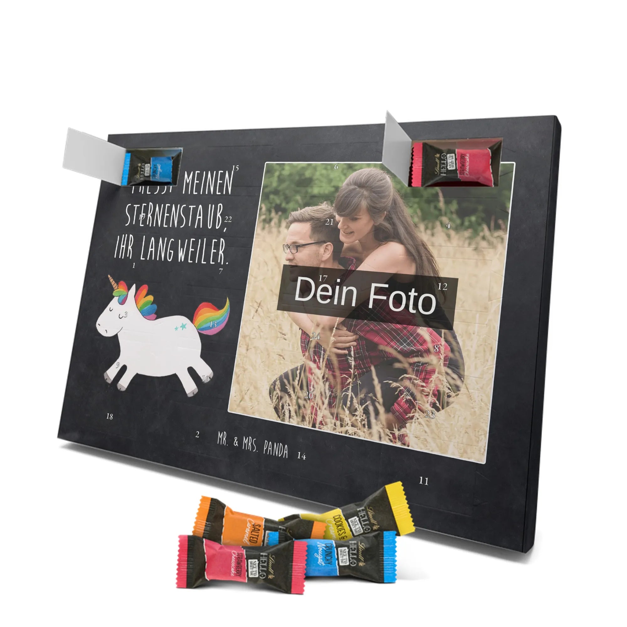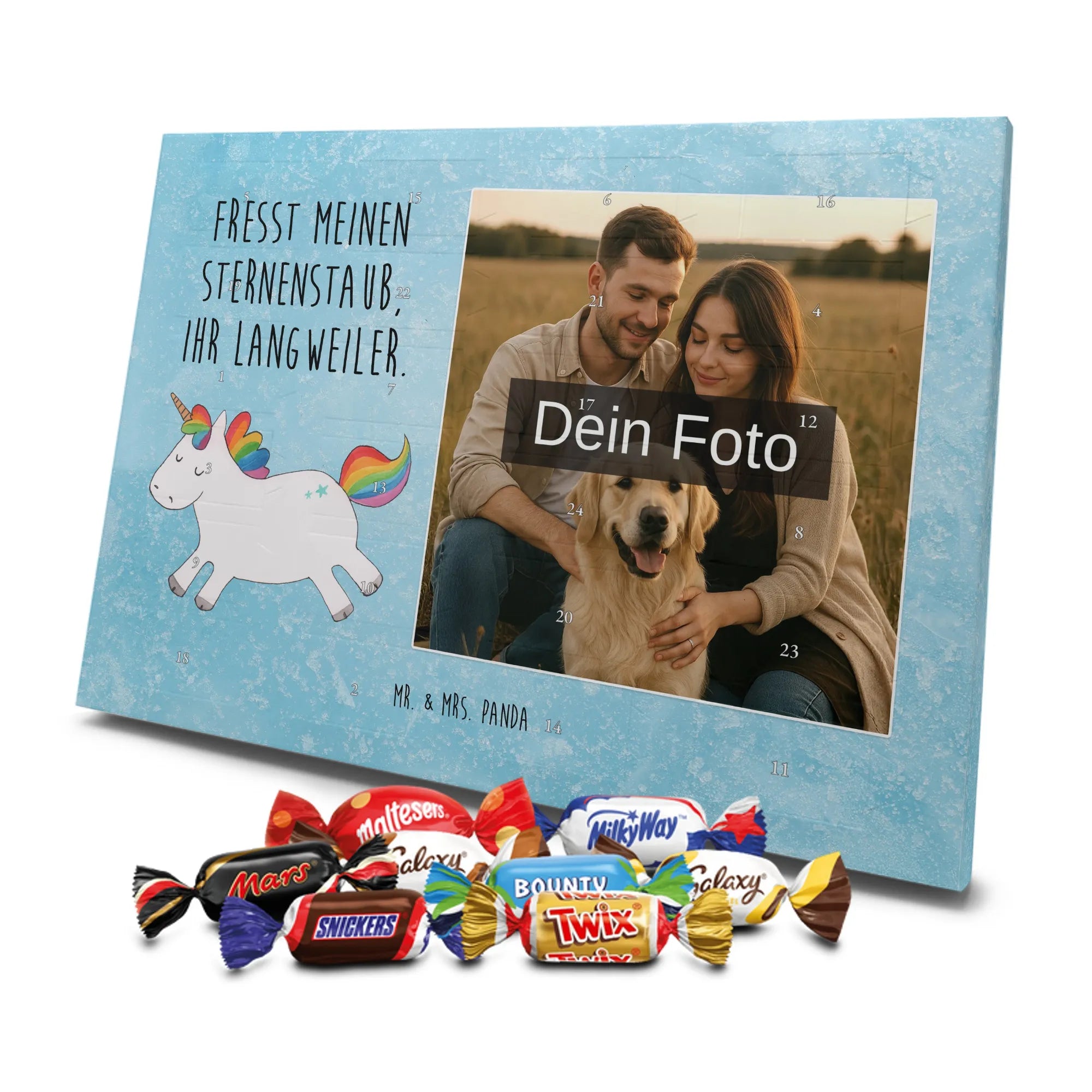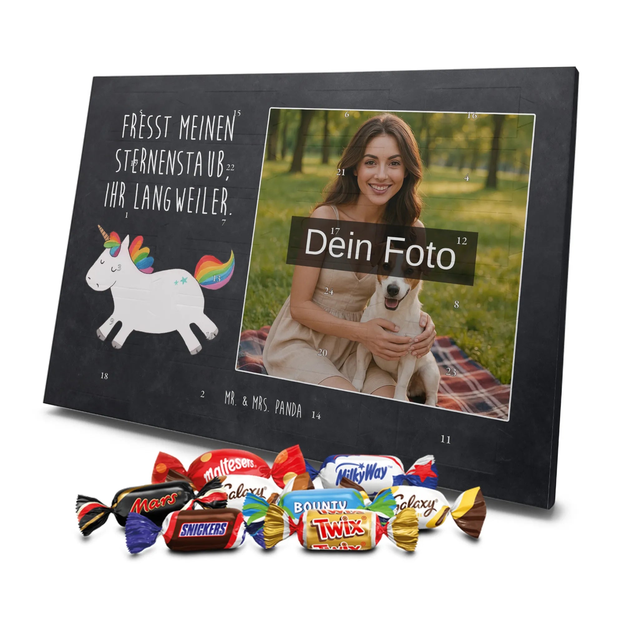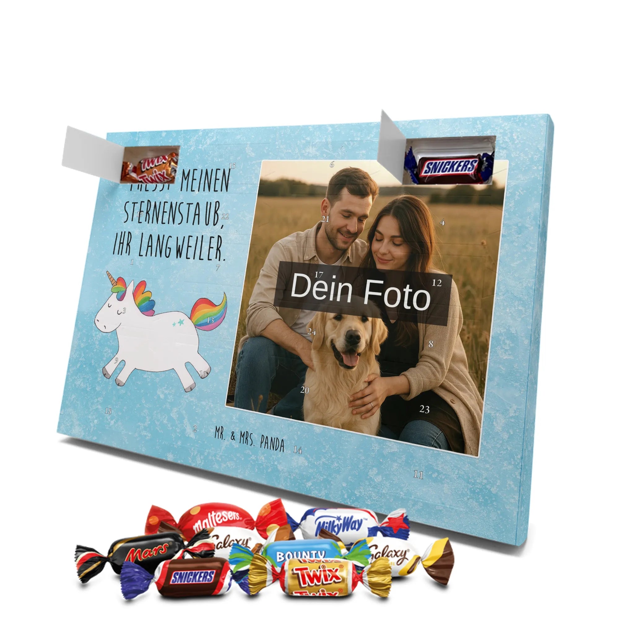 Lustiger Personalisierter Schoko Foto-Adventskalender – das Must-have für eine persönliche Adventszeit von Mr. & Mrs. Panda. Jeder Kalender wird mit unseren charmanten Illustrationen und liebevollen Sprüchen bedruckt, während dein Foto die Vorderseite einzigartig macht. Achte bitte darauf, ein Foto mit guter Qualität und ausreichend hoher Auflösung hochzuladen, damit der Druck gestochen scharf wirkt. Überprüfe den Bildausschnitt, damit wichtige Bereiche nicht verloren gehen. Denk daran, nur Bilder zu verwenden, bei denen du die nötigen Rechte besitzt. Die Verarbeitung ist hochwertig: brillante Druckqualität mit seidenmatter Oberflächenveredelung und bedruckten Seitenflächen. Maße: 325 mm x 225 mm x 27 mm. Du kannst den Kalender aufhängen oder aufstellen – sehr praktisch. Hinweis: Die hochgeladenen Fotos werden nicht nachbearbeitet oder zugeschnitten; Rücknahme bei personalisierten Foto-Artikeln ist ausgeschlossen. Gefüllt ist der Kalender mit Celebrations Schokolade – 24 Stück in 8 verschiedenen Sorten (Maltesers, Mars, Snickers, Twix, Milky Way, Bounty, Galaxy, Galaxy Caramel). Verschenke ein Stück persönlich gestaltete Vorfreude und mache jeden Dezembertag zu etwas Besonderem.