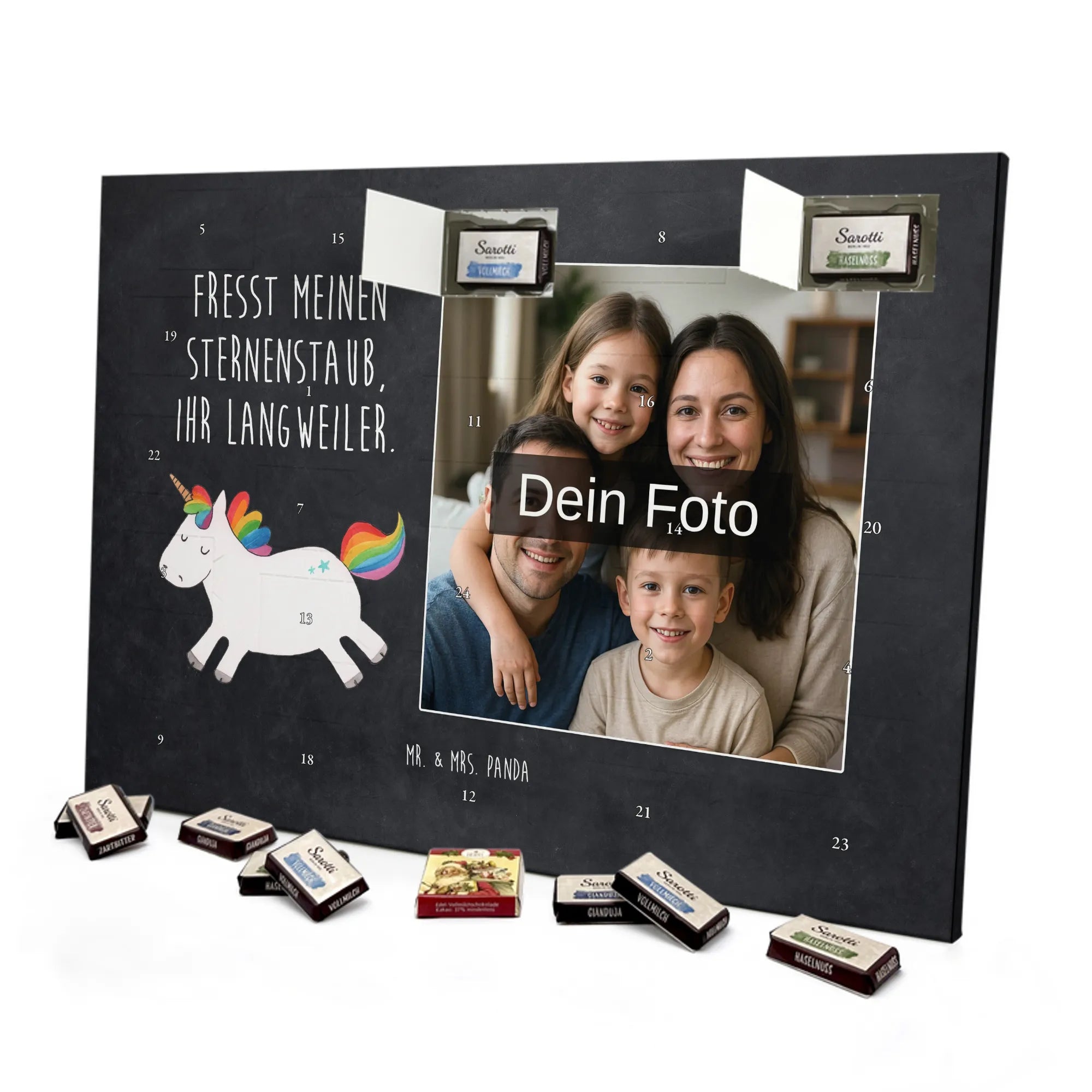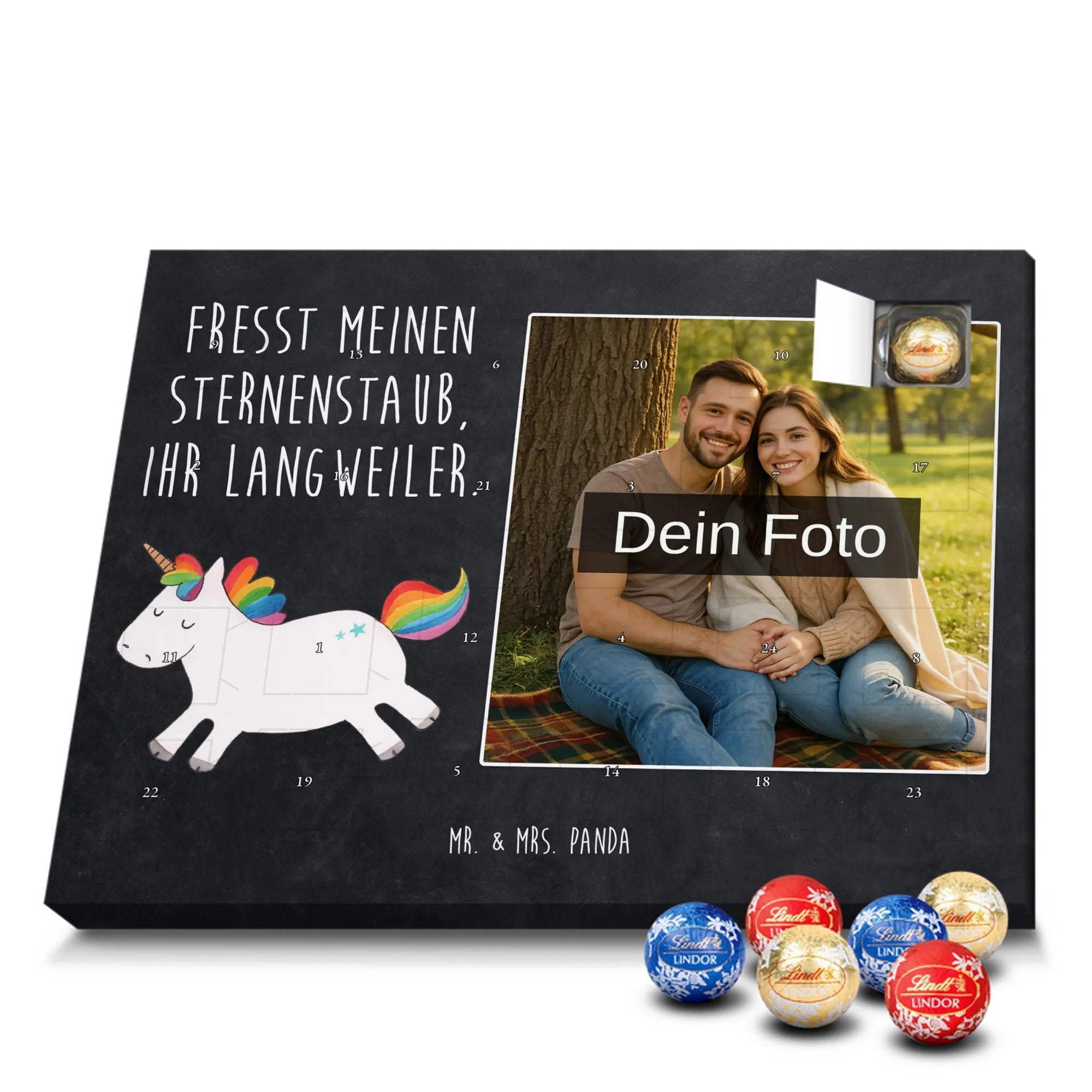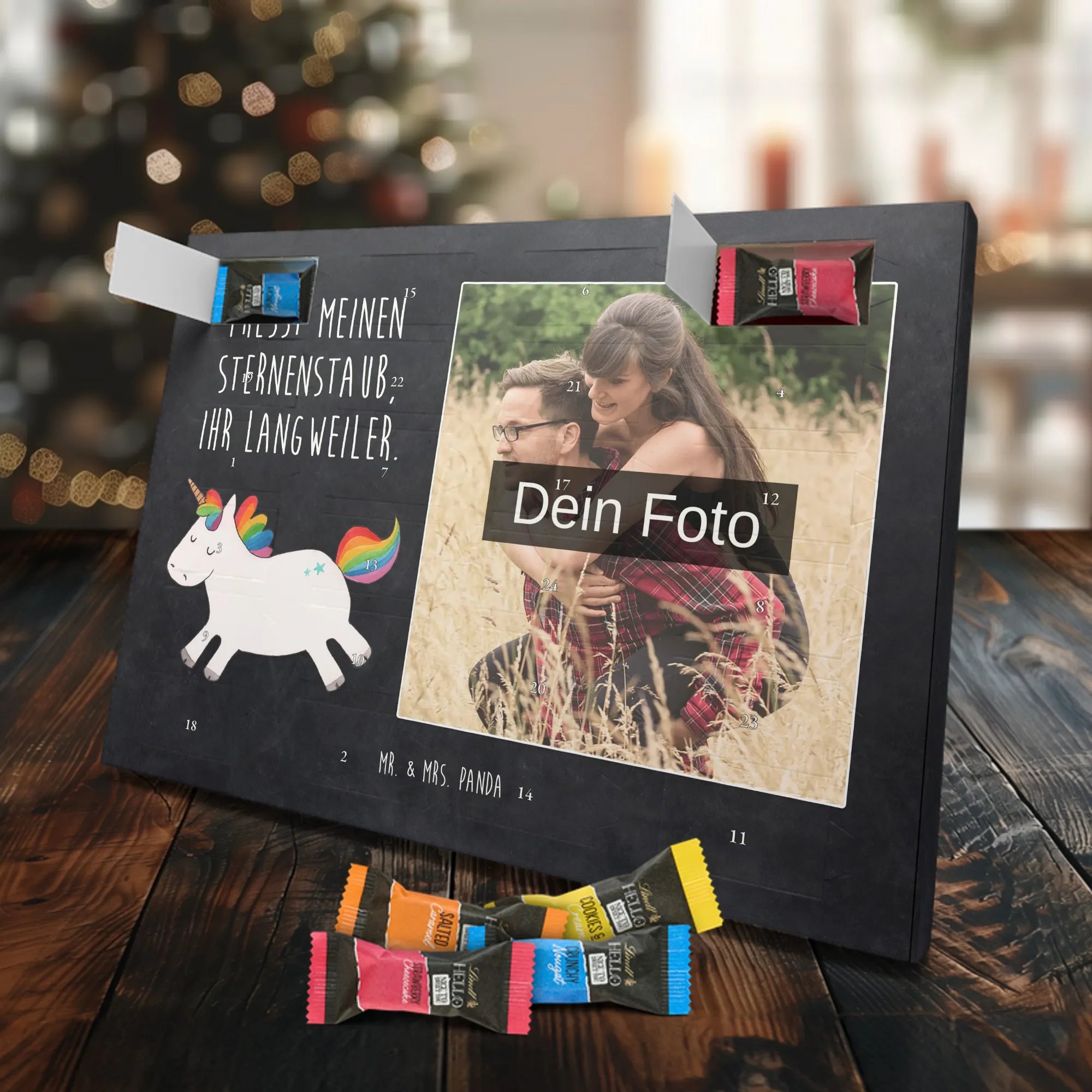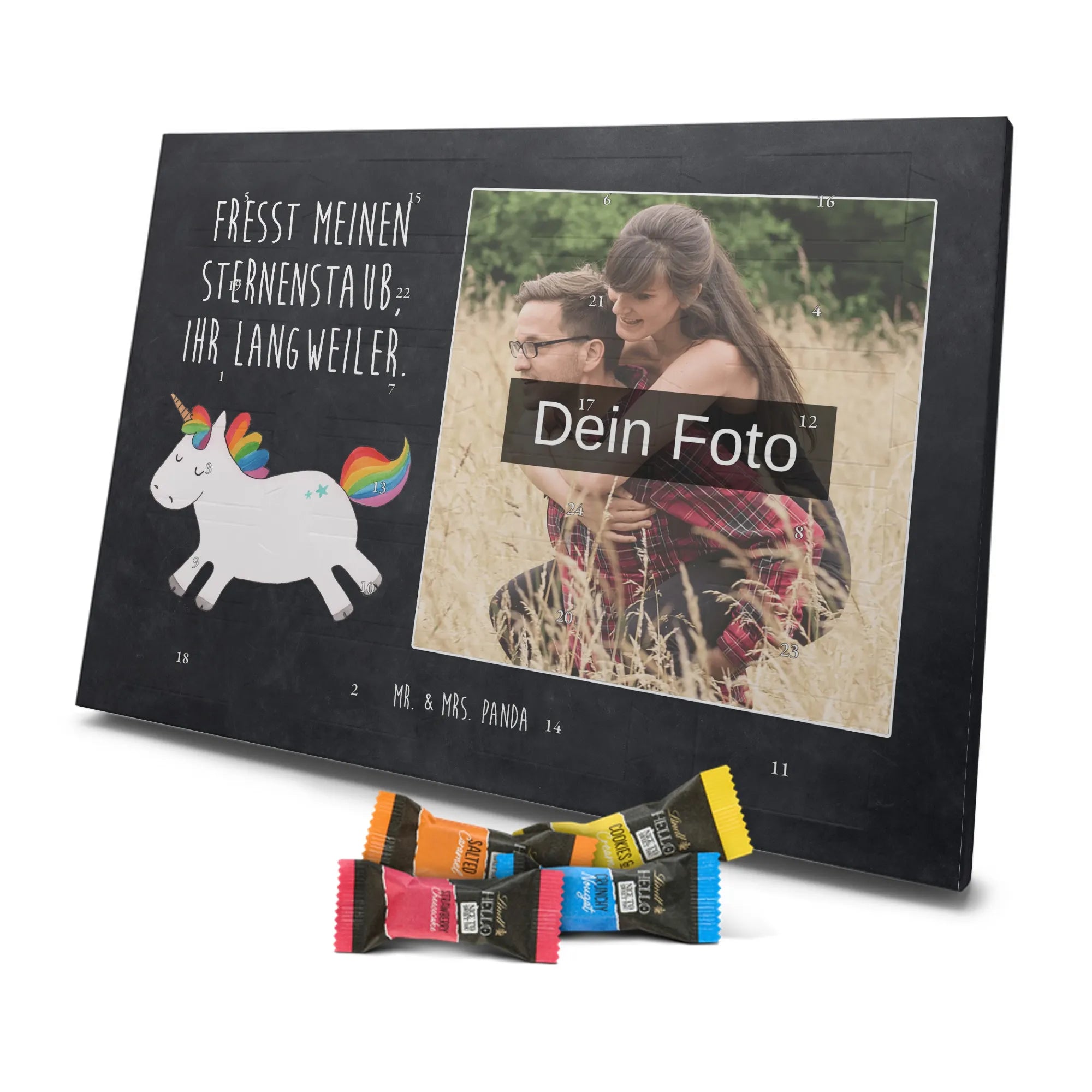 Lustiger Personalisierter Schoko Foto-Adventskalender – das Must-have für eine persönliche Adventszeit von Mr. & Mrs. Panda. Jeder Kalender wird mit unseren charmanten Illustrationen und liebevollen Sprüchen bedruckt, während dein Foto die Vorderseite einzigartig macht. Achte bitte darauf, ein Foto mit guter Qualität und ausreichend hoher Auflösung hochzuladen, damit der Druck gestochen scharf wirkt. Überprüfe den Bildausschnitt, damit wichtige Bereiche nicht verloren gehen. Denk daran, nur Bilder zu verwenden, bei denen du die nötigen Rechte besitzt. Die Verarbeitung ist hochwertig: brillante Druckqualität mit seidenmatter Oberflächenveredelung und bedruckten Seitenflächen. Maße: 325 mm x 225 mm x 27 mm. Du kannst den Kalender aufhängen oder aufstellen – sehr praktisch. Hinweis: Die hochgeladenen Fotos werden nicht nachbearbeitet oder zugeschnitten; Rücknahme bei personalisierten Foto-Artikeln ist ausgeschlossen. Gefüllt ist der Kalender mit Celebrations Schokolade – 24 Stück in 8 verschiedenen Sorten (Maltesers, Mars, Snickers, Twix, Milky Way, Bounty, Galaxy, Galaxy Caramel). Verschenke ein Stück persönlich gestaltete Vorfreude und mache jeden Dezembertag zu etwas Besonderem.