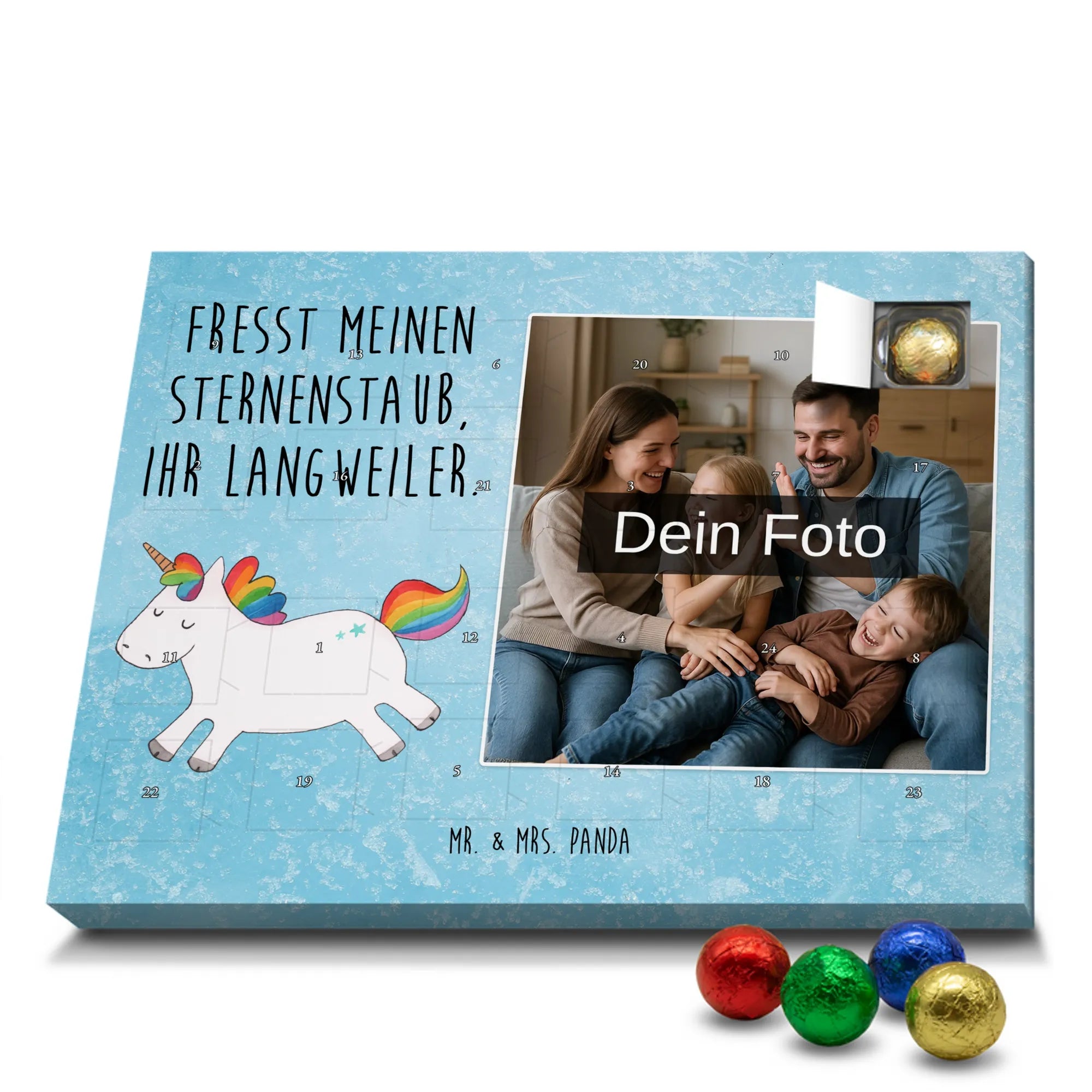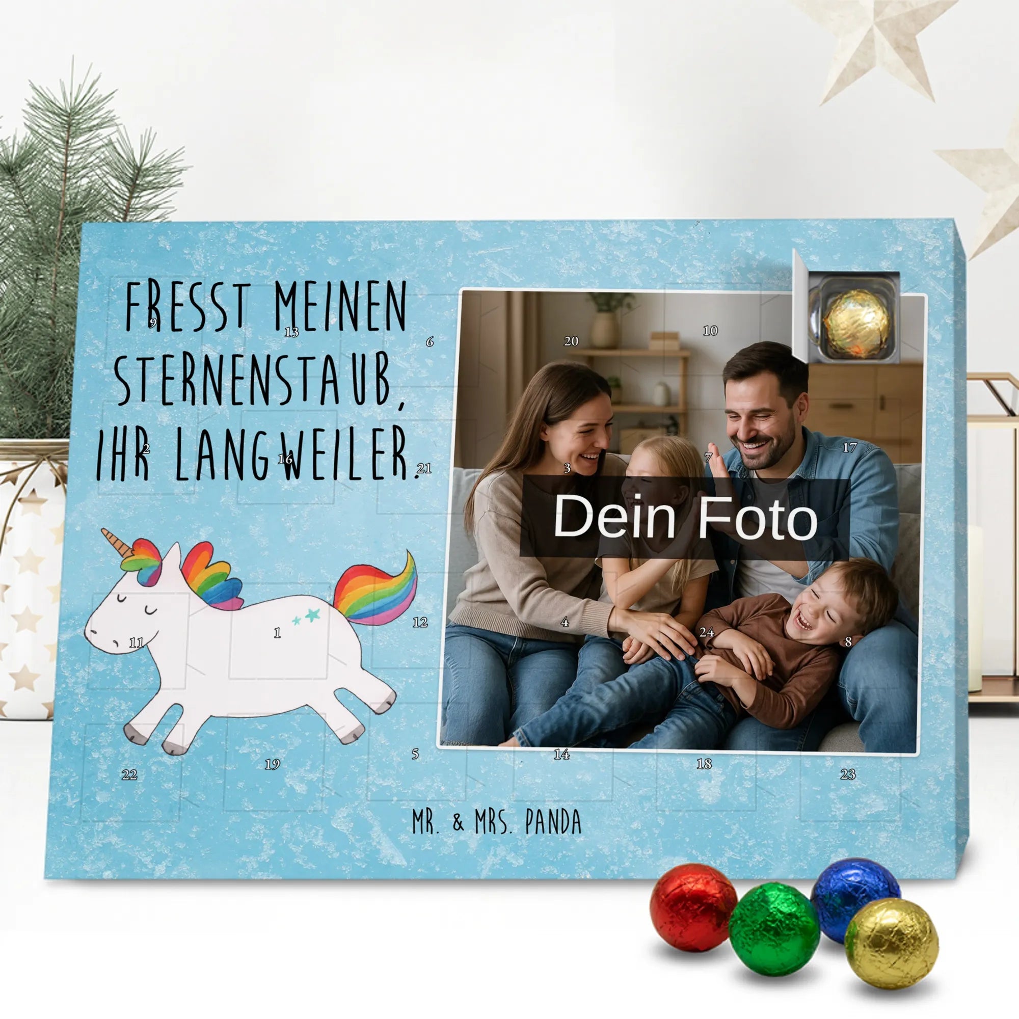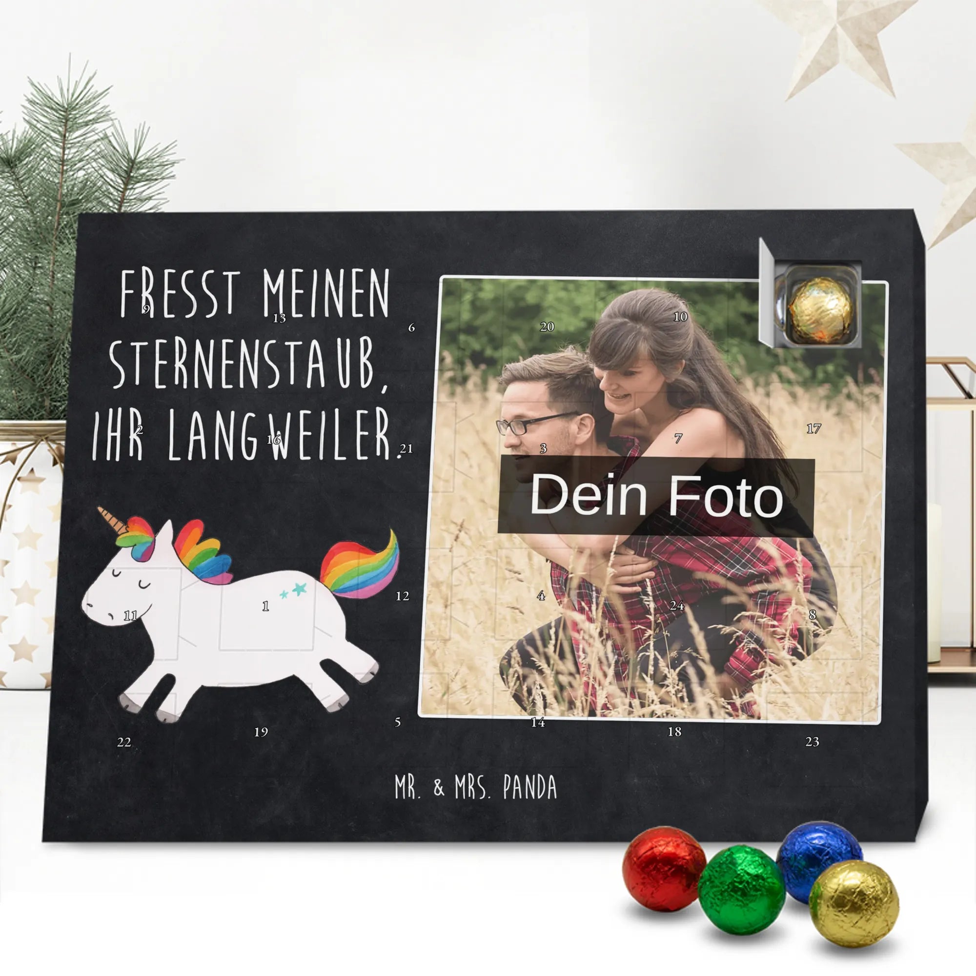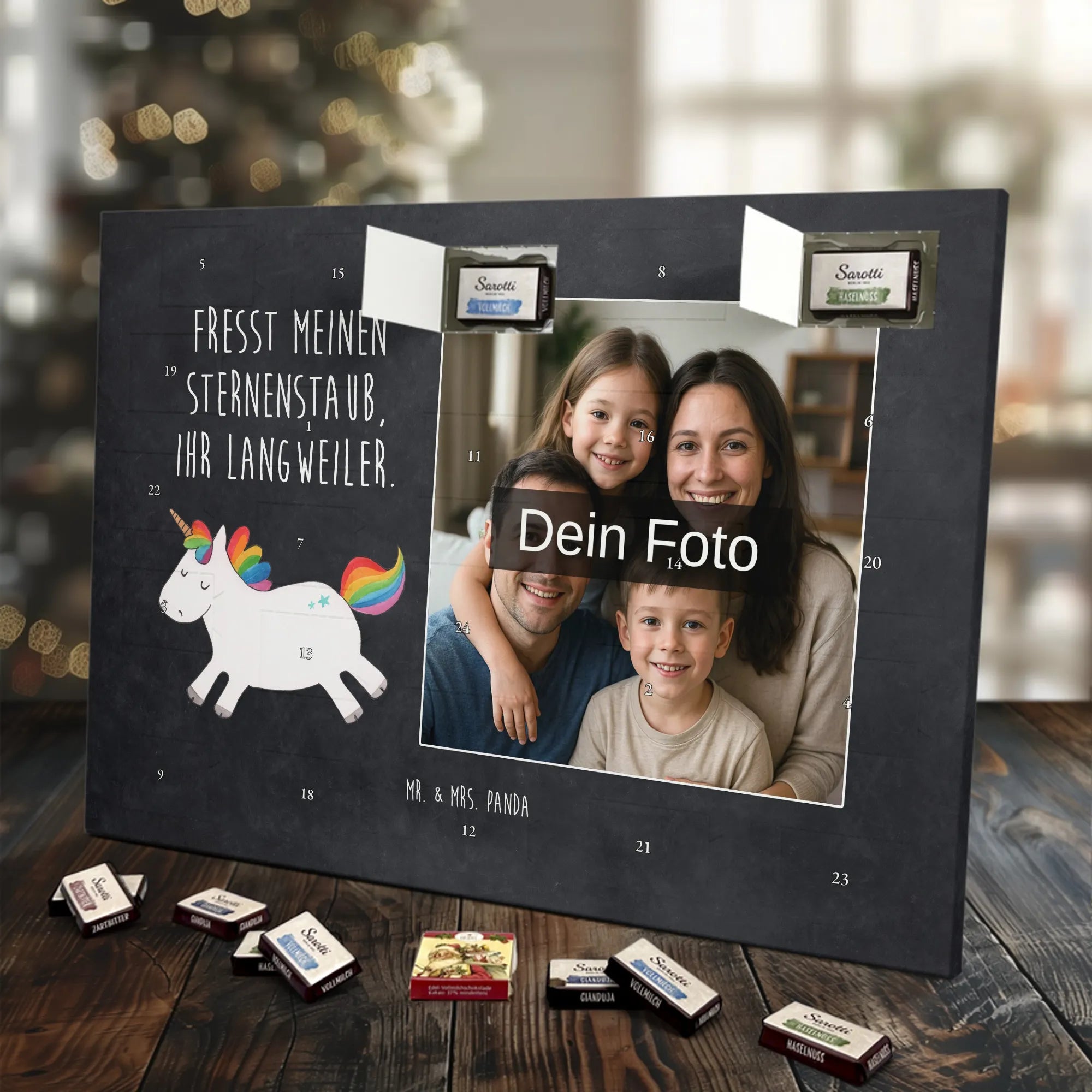 Lustiger Personalisierter Schoko Foto-Adventskalender – das Must-have für eine persönliche Adventszeit von Mr. & Mrs. Panda. Jeder Kalender wird mit unseren charmanten Illustrationen und liebevollen Sprüchen bedruckt, während dein Foto die Vorderseite einzigartig macht. Achte bitte darauf, ein Foto mit guter Qualität und ausreichend hoher Auflösung hochzuladen, damit der Druck gestochen scharf wirkt. Überprüfe den Bildausschnitt, damit wichtige Bereiche nicht verloren gehen. Denk daran, nur Bilder zu verwenden, bei denen du die nötigen Rechte besitzt. Die Verarbeitung ist hochwertig: brillante Druckqualität mit seidenmatter Oberflächenveredelung und bedruckten Seitenflächen. Maße: 325 mm x 225 mm x 27 mm. Du kannst den Kalender aufhängen oder aufstellen – sehr praktisch. Hinweis: Die hochgeladenen Fotos werden nicht nachbearbeitet oder zugeschnitten; Rücknahme bei personalisierten Foto-Artikeln ist ausgeschlossen. Gefüllt ist der Kalender mit Celebrations Schokolade – 24 Stück in 8 verschiedenen Sorten (Maltesers, Mars, Snickers, Twix, Milky Way, Bounty, Galaxy, Galaxy Caramel). Verschenke ein Stück persönlich gestaltete Vorfreude und mache jeden Dezembertag zu etwas Besonderem.
