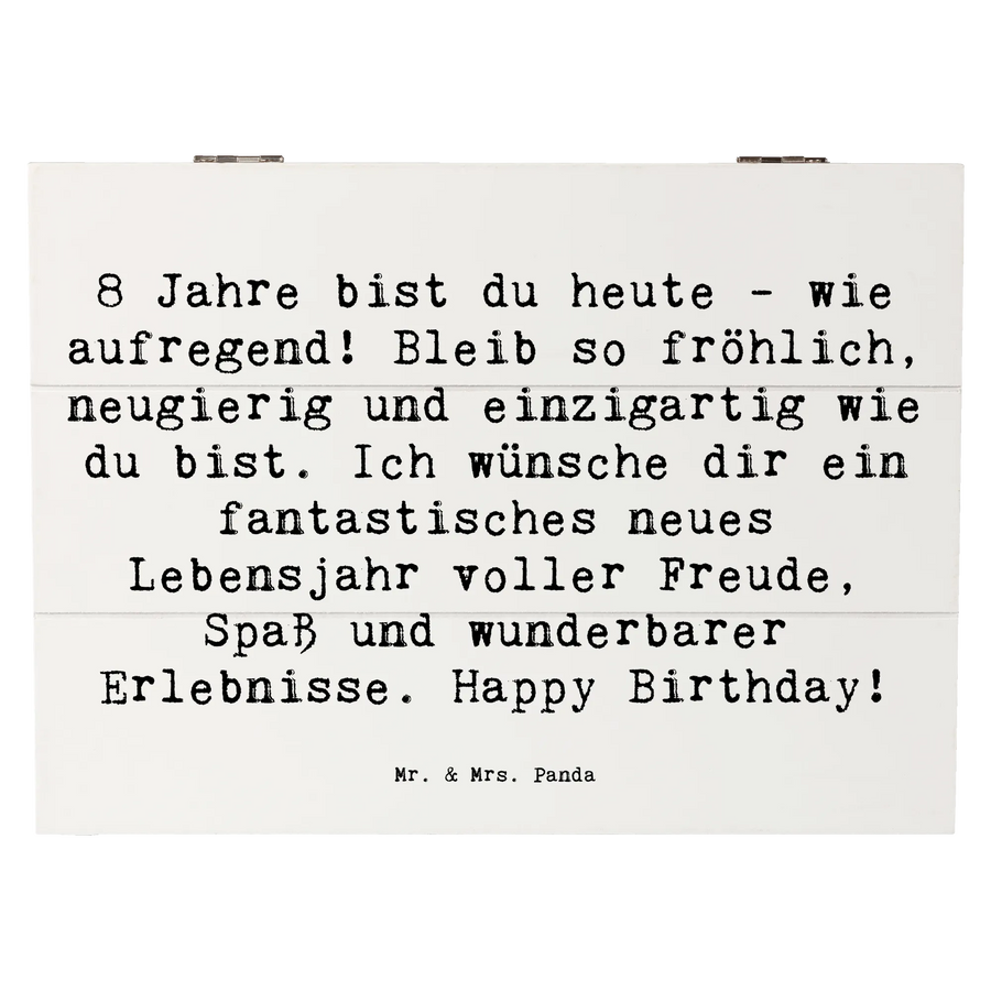 Wooden chest Saying 8 Jahre bist du heute - wie aufregend! Bleib so fröhlich, neugierig und einzigartig wie du bist. Ich wünsche dir ein fantastisches neues Lebensjahr voller Freude, Spaß und wunderbarer Erlebnisse. Happy Birthday! - 25 x 18 cm - White