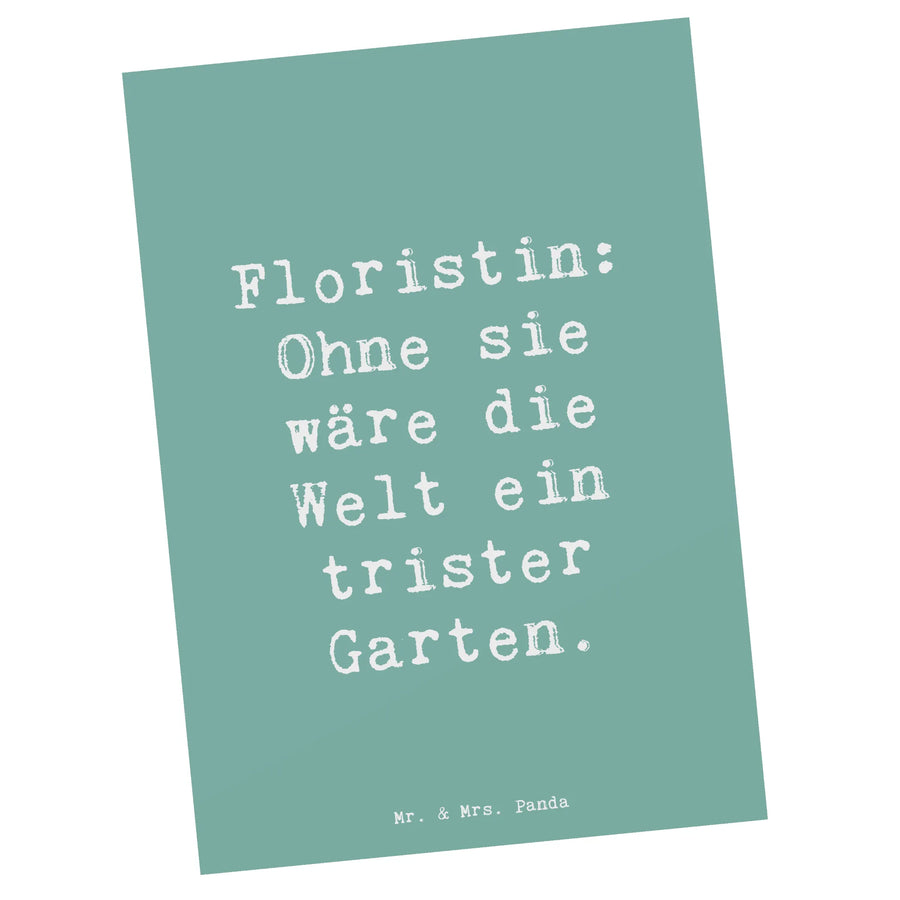 Postcard Saying Floristin: Ohne sie wäre die Welt ein trister Garten. - Sea Breeze