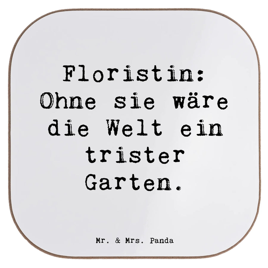 Square coaster Saying Floristin: Ohne sie wäre die Welt ein trister Garten. - White