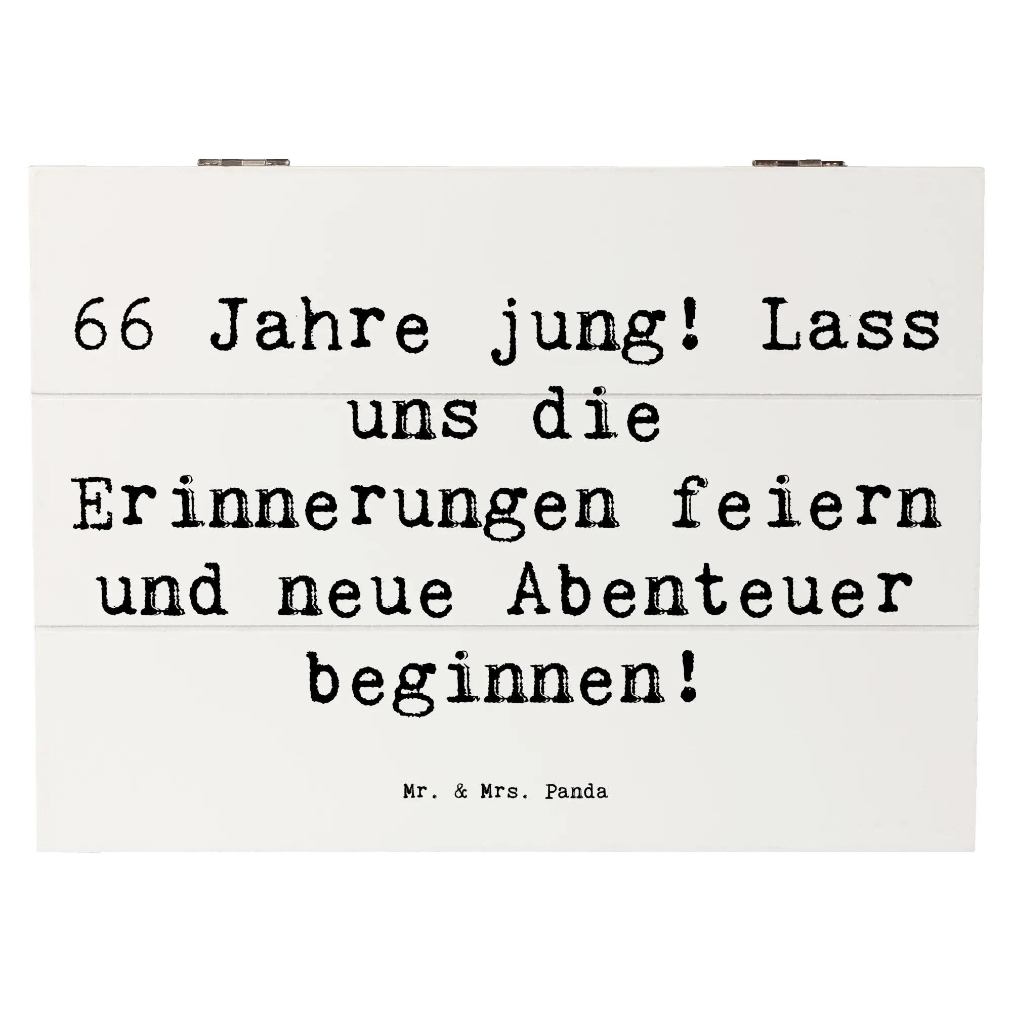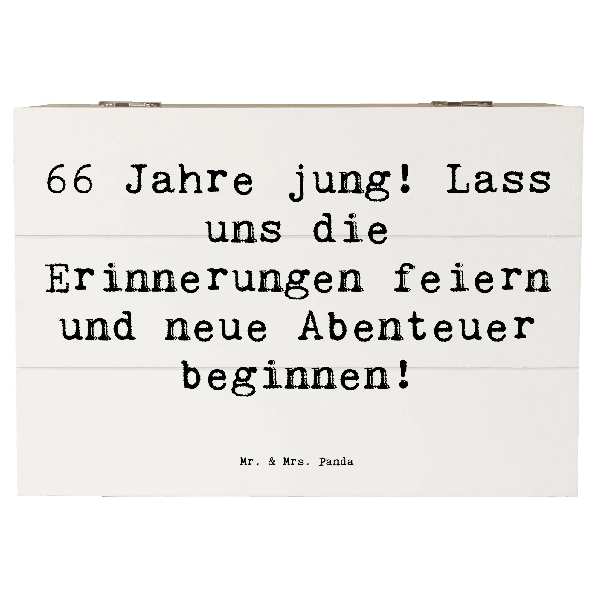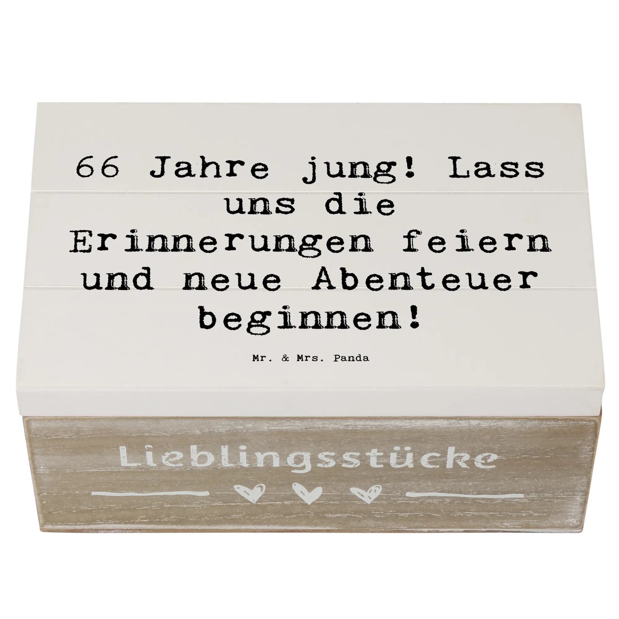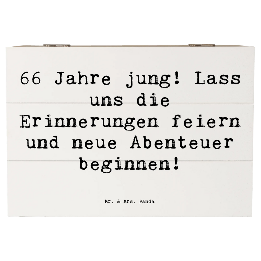 Wooden chest Saying 66 Jahre jung! Lass uns die Erinnerungen feiern und neue Abenteuer beginnen! - 22 x 15 cm - White