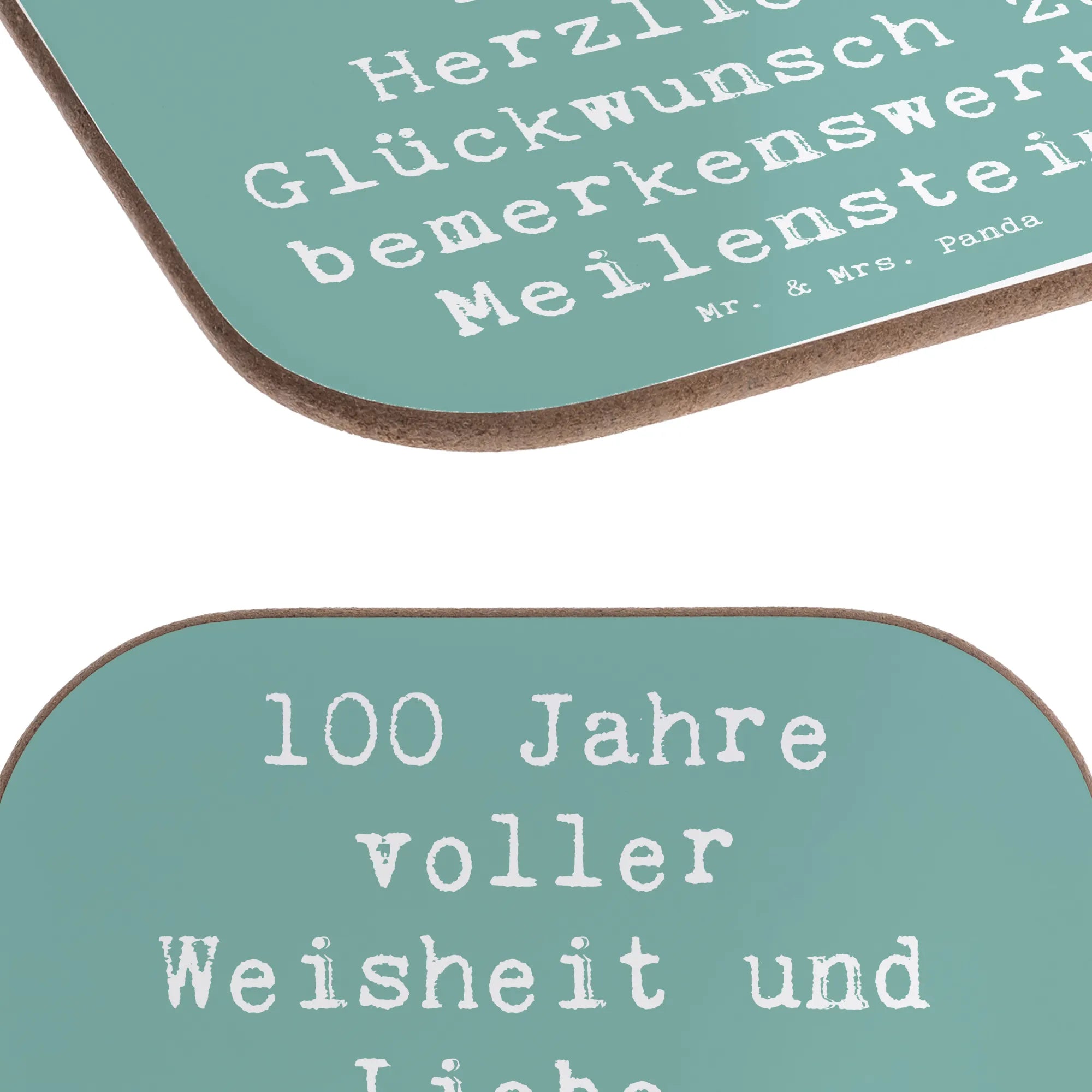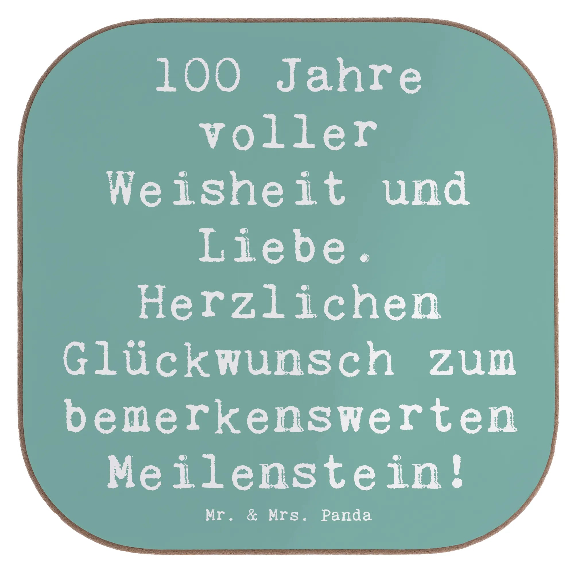 Square coaster Saying 100 Jahre voller Weisheit und Liebe. Herzlichen – Mr. & Mrs. Panda