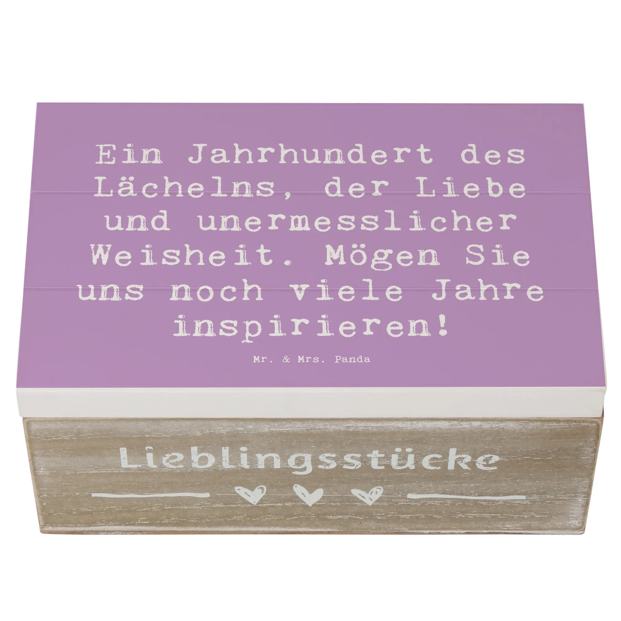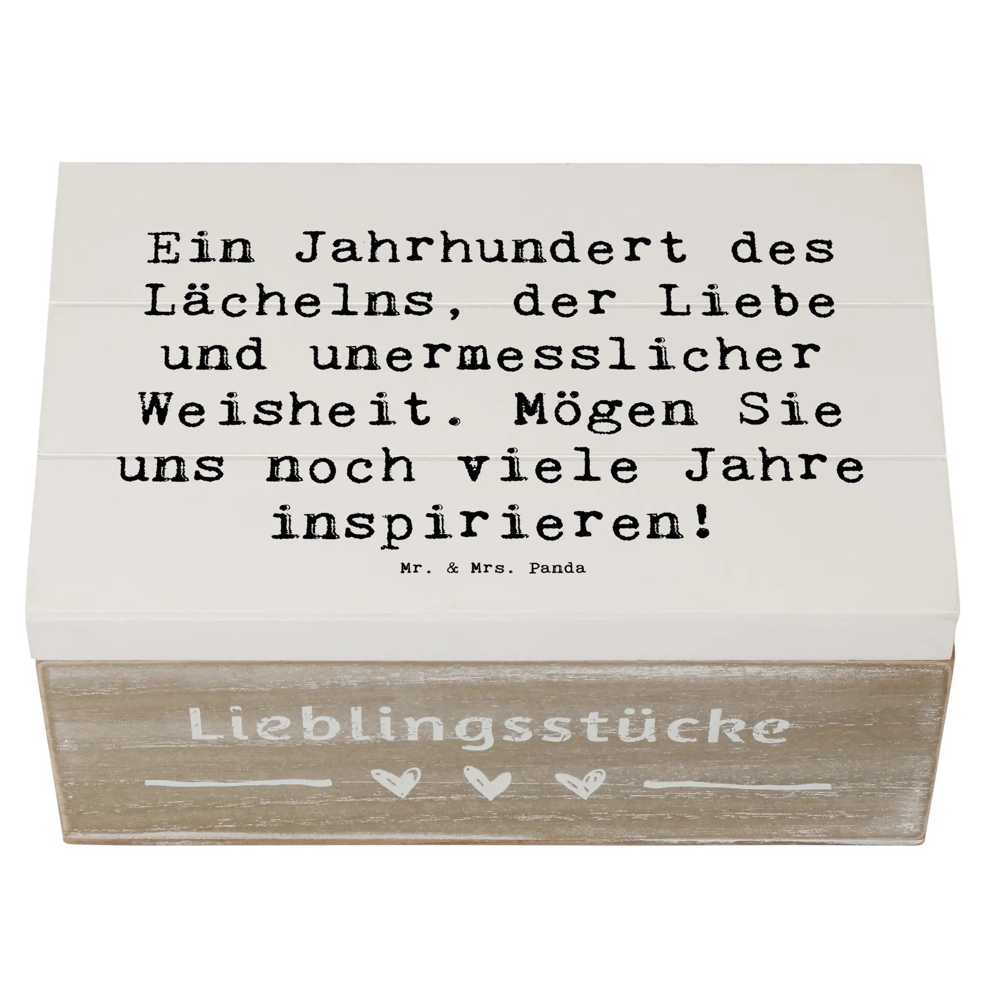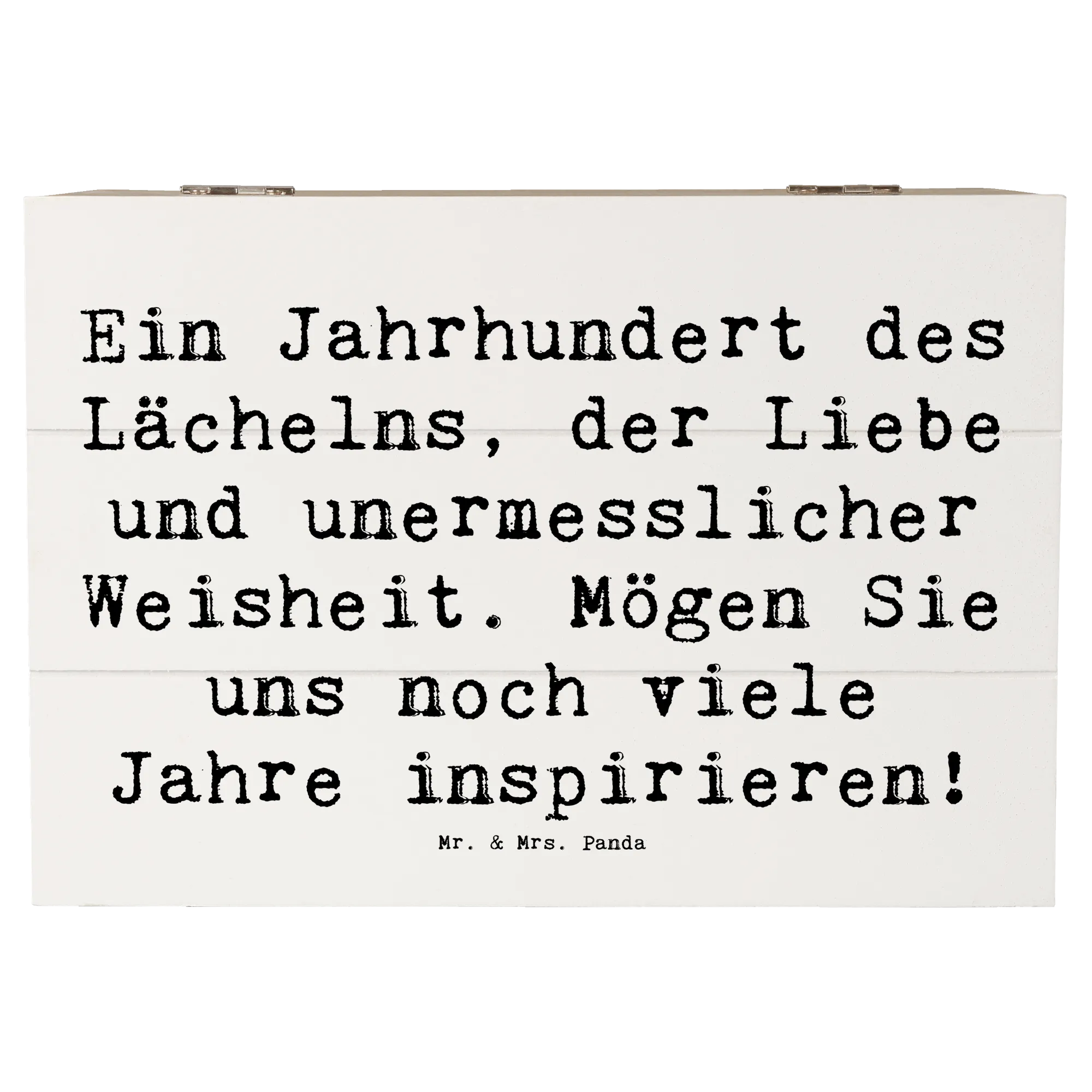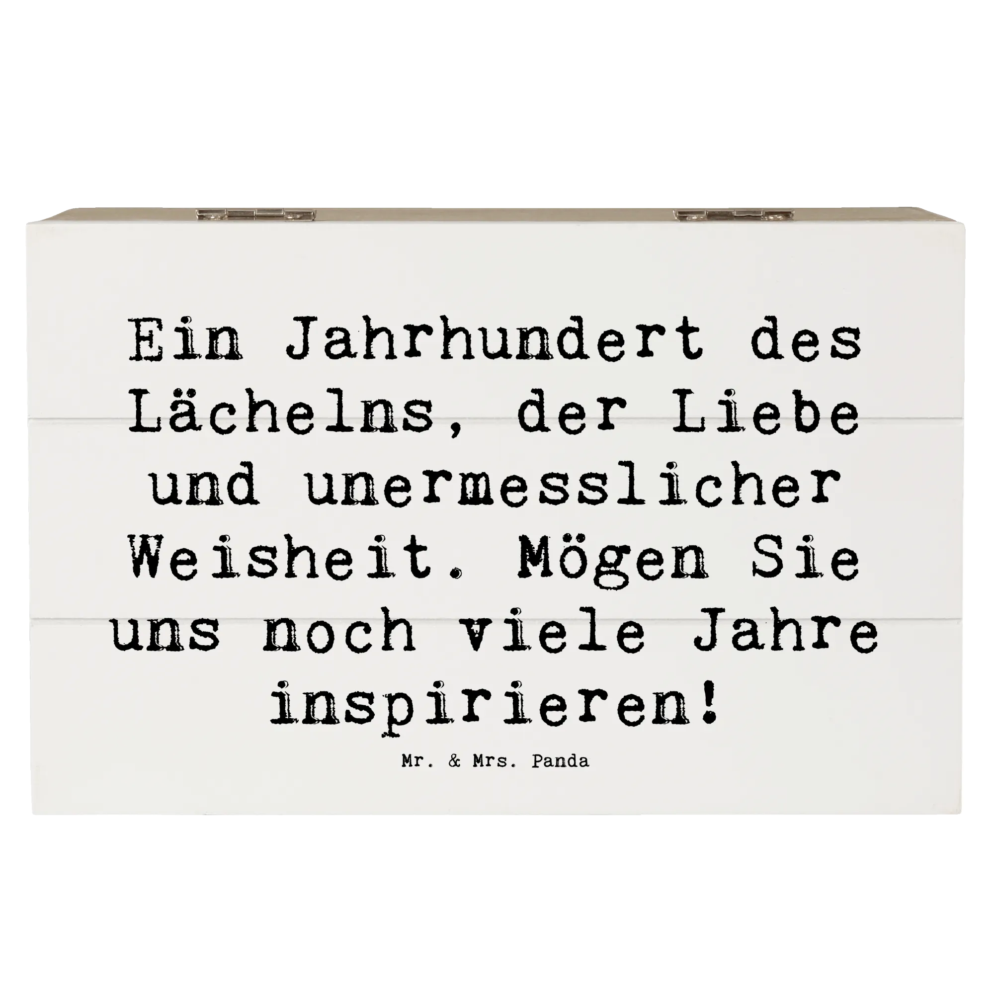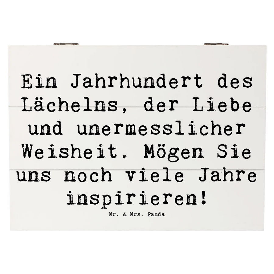 Wooden chest Saying Ein Jahrhundert des Lächelns, der Liebe und unermesslicher Weisheit. Mögen Sie uns noch viele Jahre inspirieren! - 25 x 18 cm - White