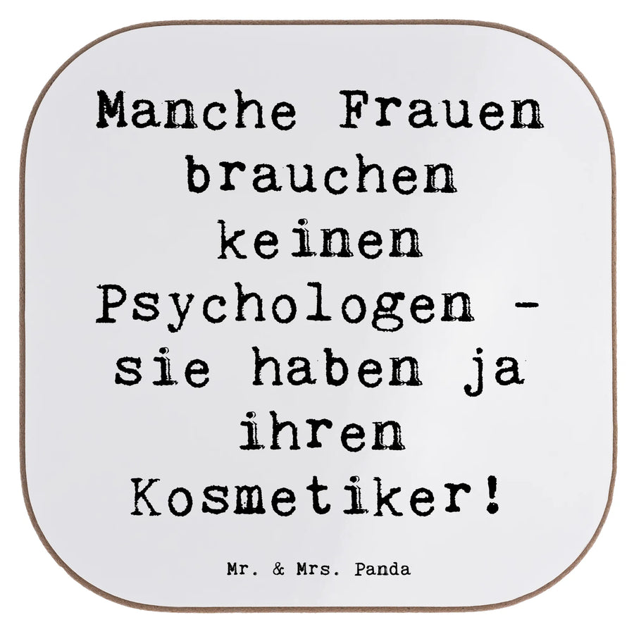 Square coaster Saying Manche Frauen brauchen keinen Psychologen - sie haben ja ihren Kosmetiker! - White