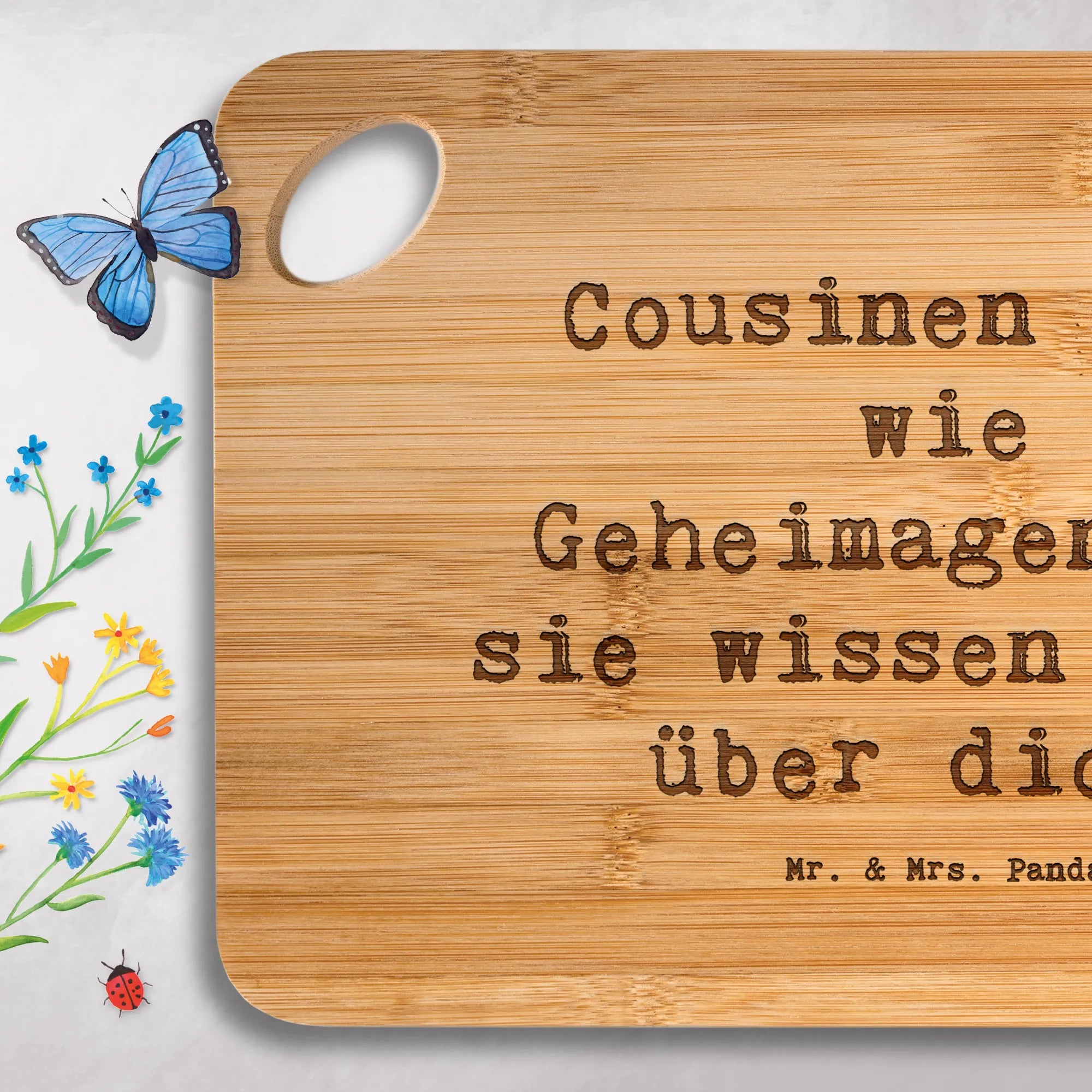 Bamboo chopping board Saying Cousinen sind wie Geheimagenten: sie wissen alles über dich!