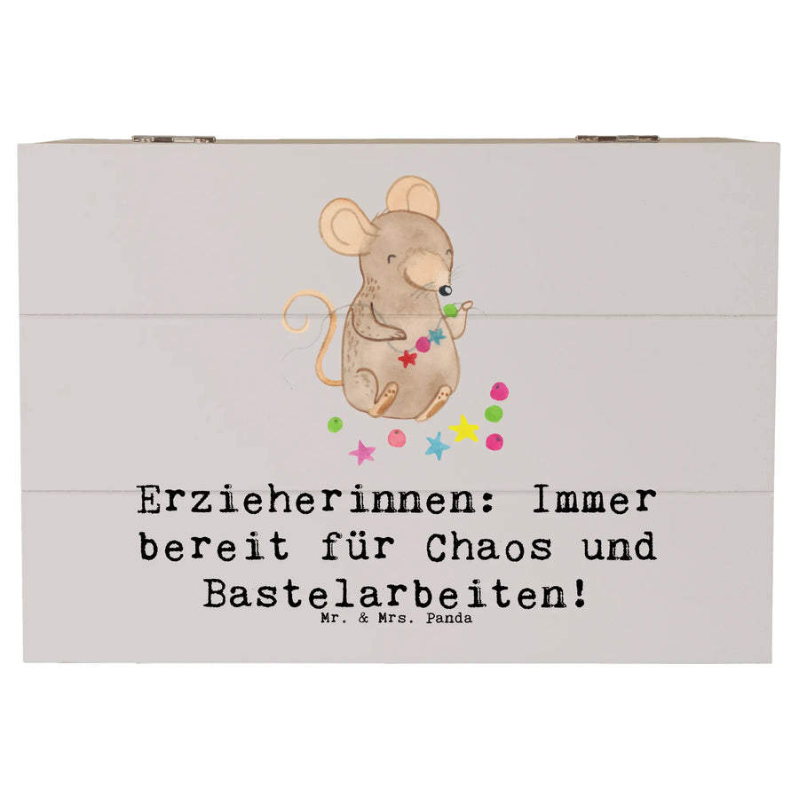 Wooden chest Erzieherinnen: Immer bereit für Chaos und Bastelarbeiten! - 22 x 15 cm - Grey Pastel