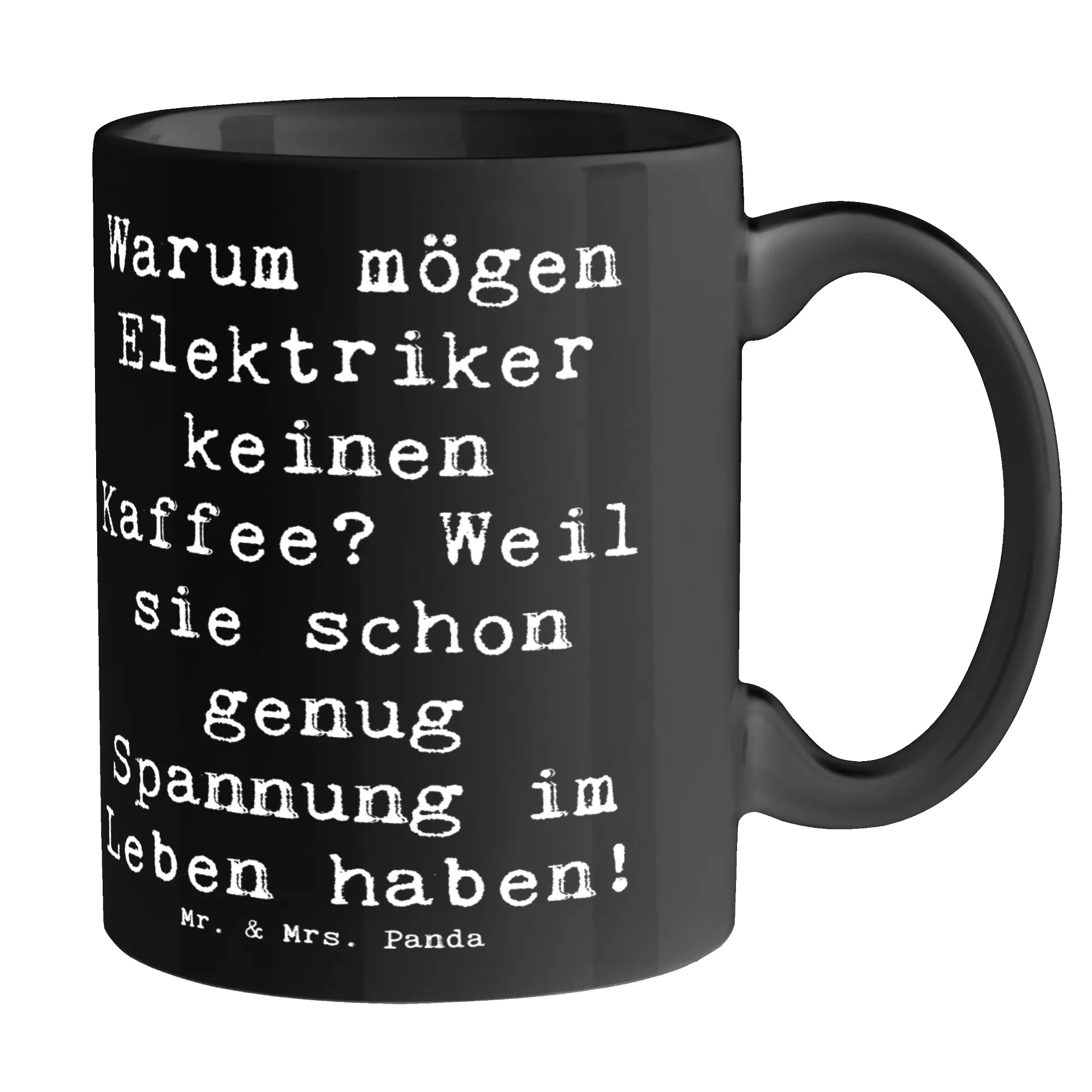 Suchst Du ein Geschenk mit Herz, Humor und Alltagstauglichkeit? Die Tasse „Elektriker" aus der Berufe-Kollektion von Mr. & Mrs. Panda vereint genau das: einen frechen Spruch, liebevolles Design und praktische Eigenschaften für den täglichen Gebrauch. Mit dem Spruch „Warum mögen Elektriker keinen Kaffee? Weil sie schon genug Spannung im Leben haben!" bringst Du jeden Elektriker zum Schmunzeln – ob Kollege, Auszubildender oder Papa.