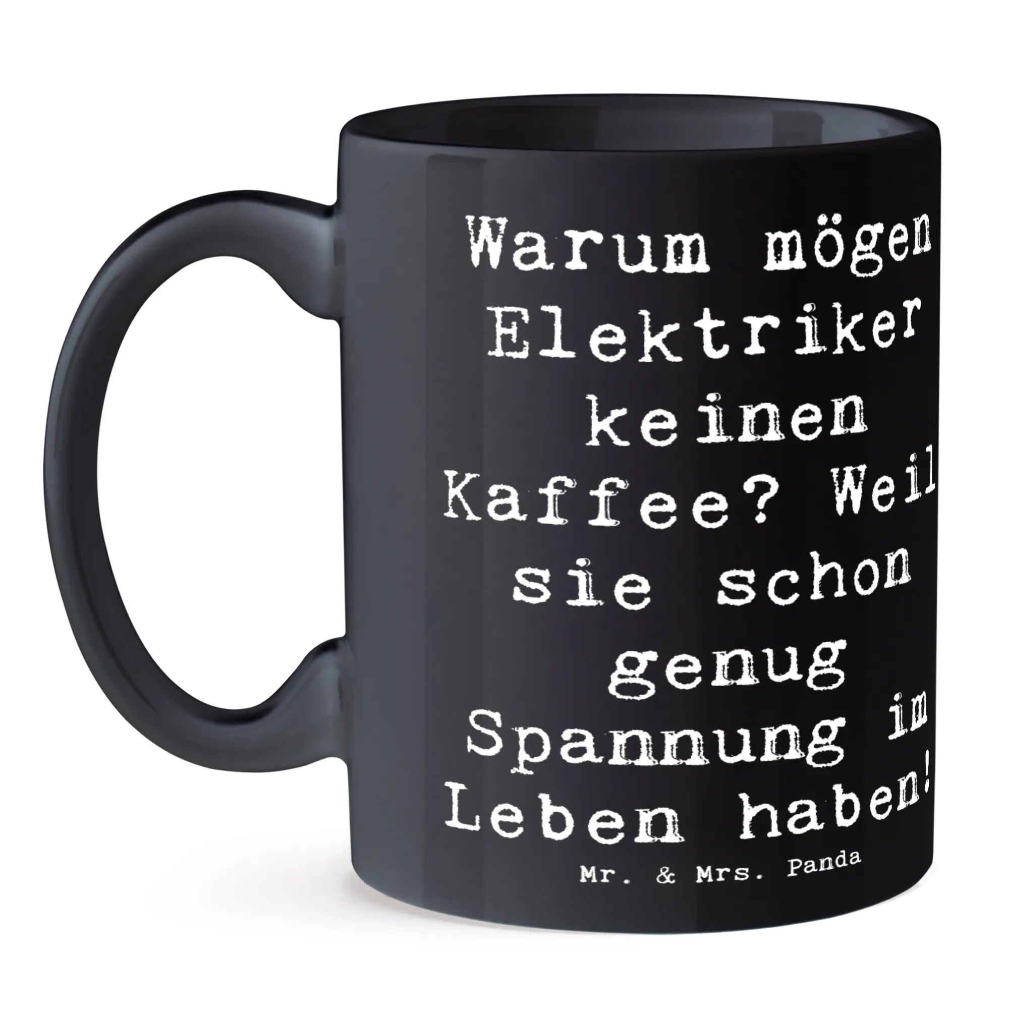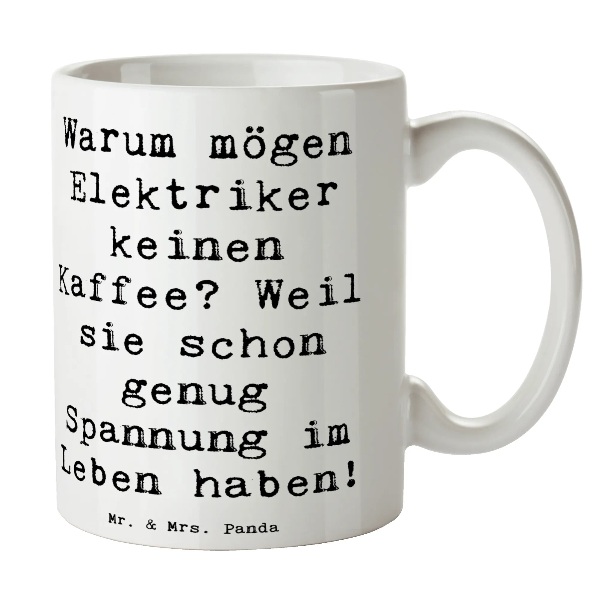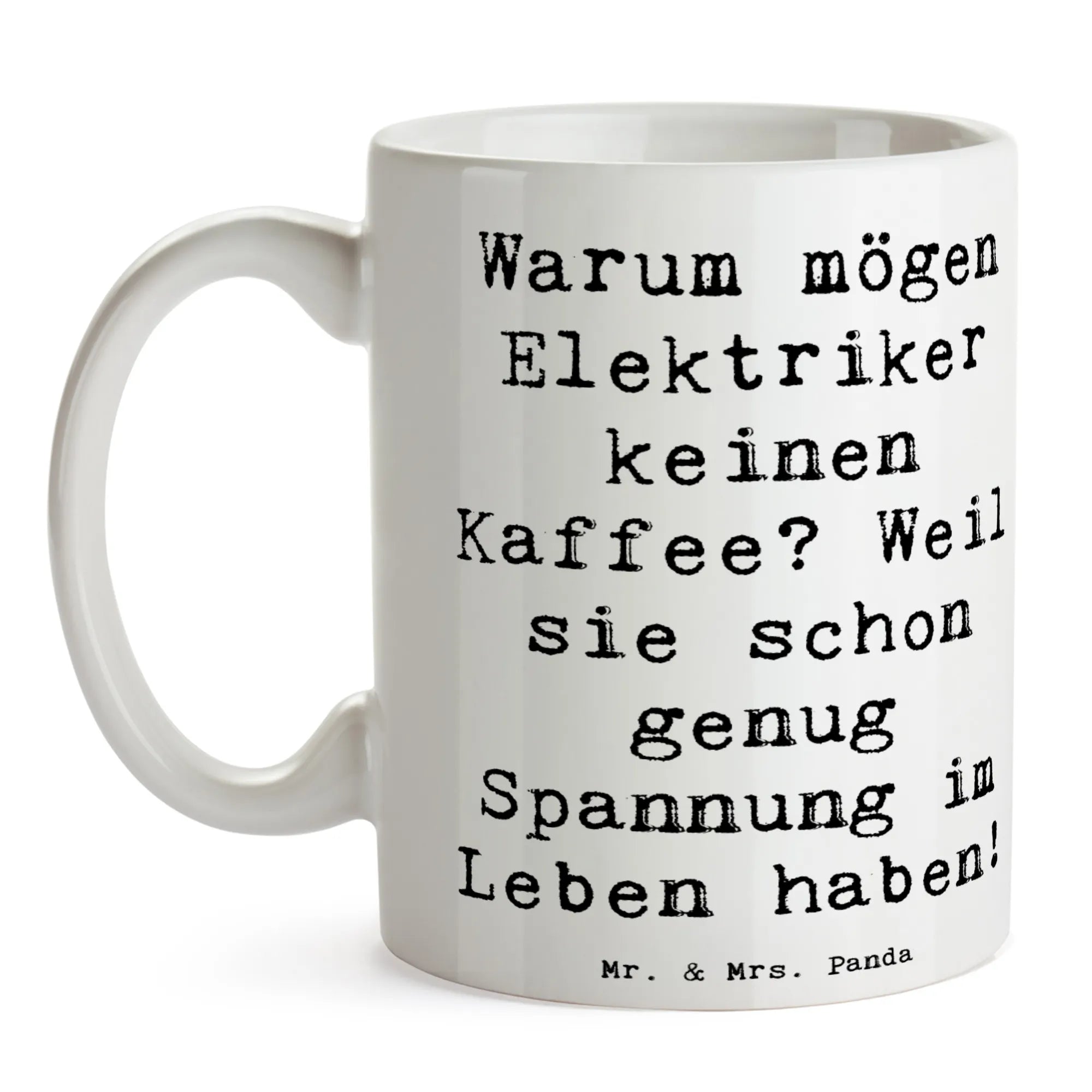 Mug Saying Warum mögen Elektriker keinen Kaffee? Weil sie schon genug Spannung im Leben haben! - White