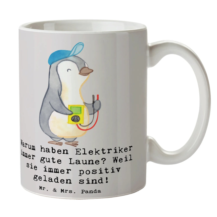 Suchst Du ein Geschenk mit Humor und Herz? Unsere Mr. & Mrs. Panda Tasse Elektriker aus der Berufe-Kollektion ist genau dafür gemacht. Mit dem witzigen Spruch „Warum haben Elektriker immer gute Laune? Weil sie immer positiv geladen sind!“ bringt diese Tasse jeden Morgen ein Lächeln auf das Gesicht von Elektrikern, Azubis, Meistern oder Freunden aus dem Handwerk.