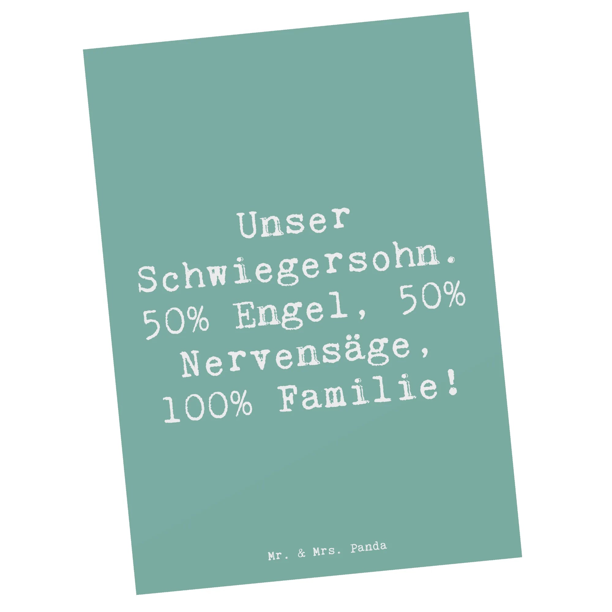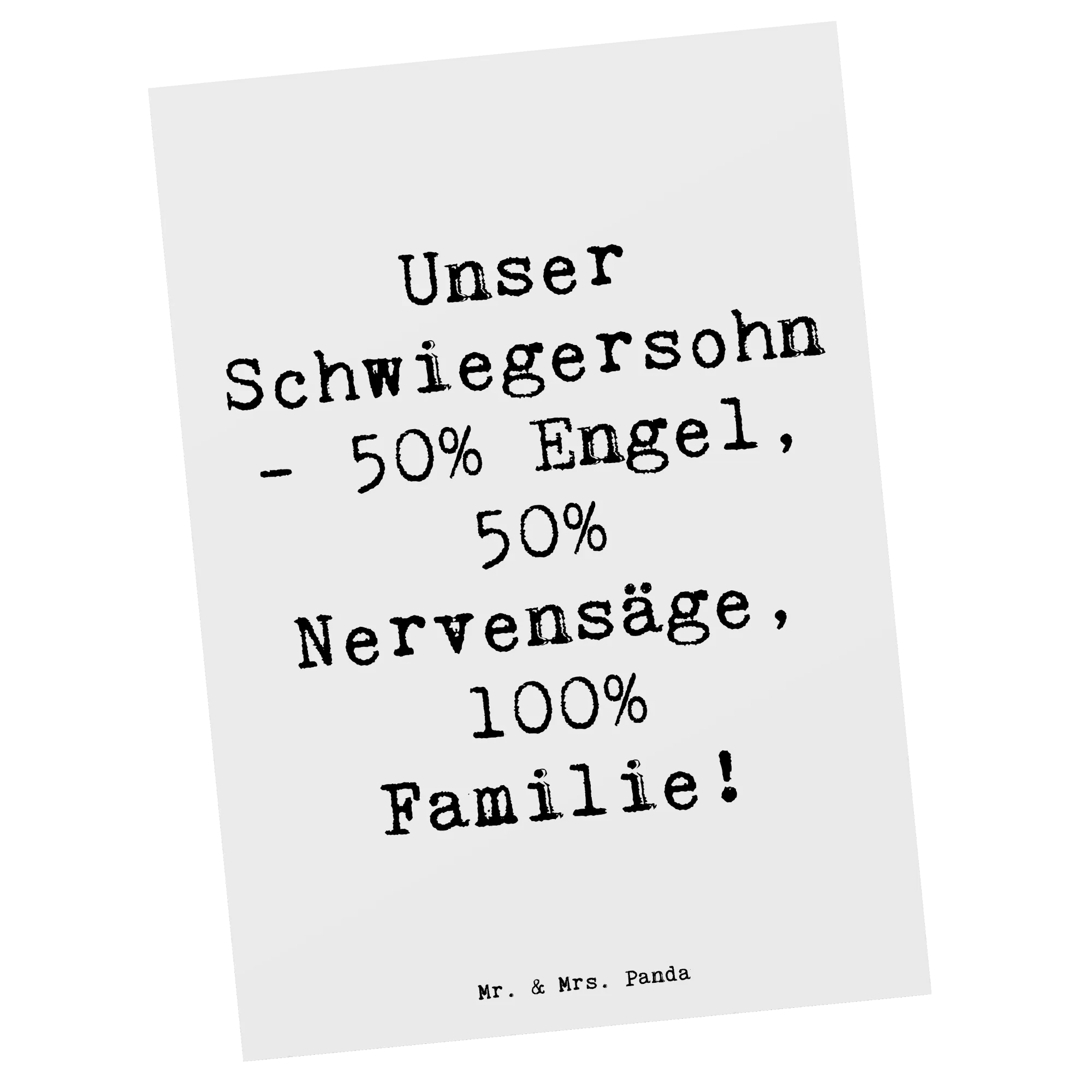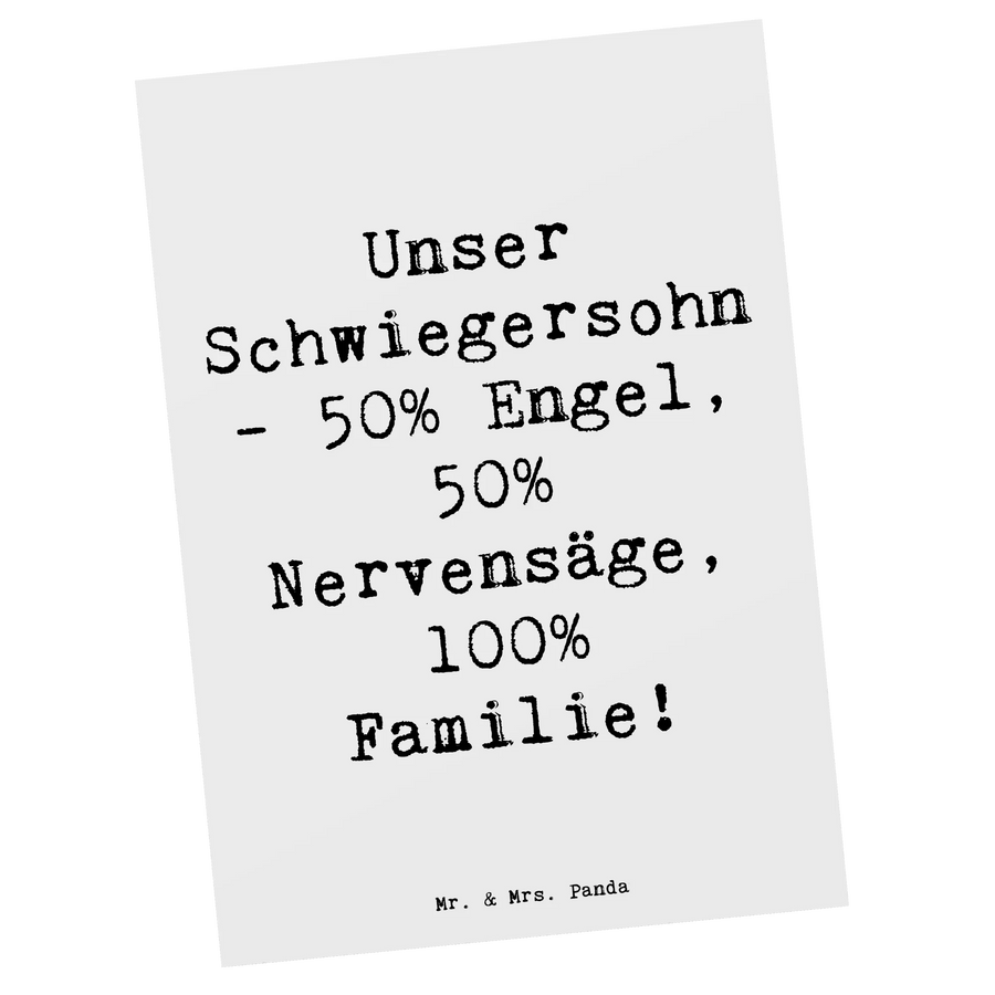 Postcard Saying Unser Schwiegersohn. 50% Engel, 50% Nervensäge, 100% F – Mr. & Mrs. Panda