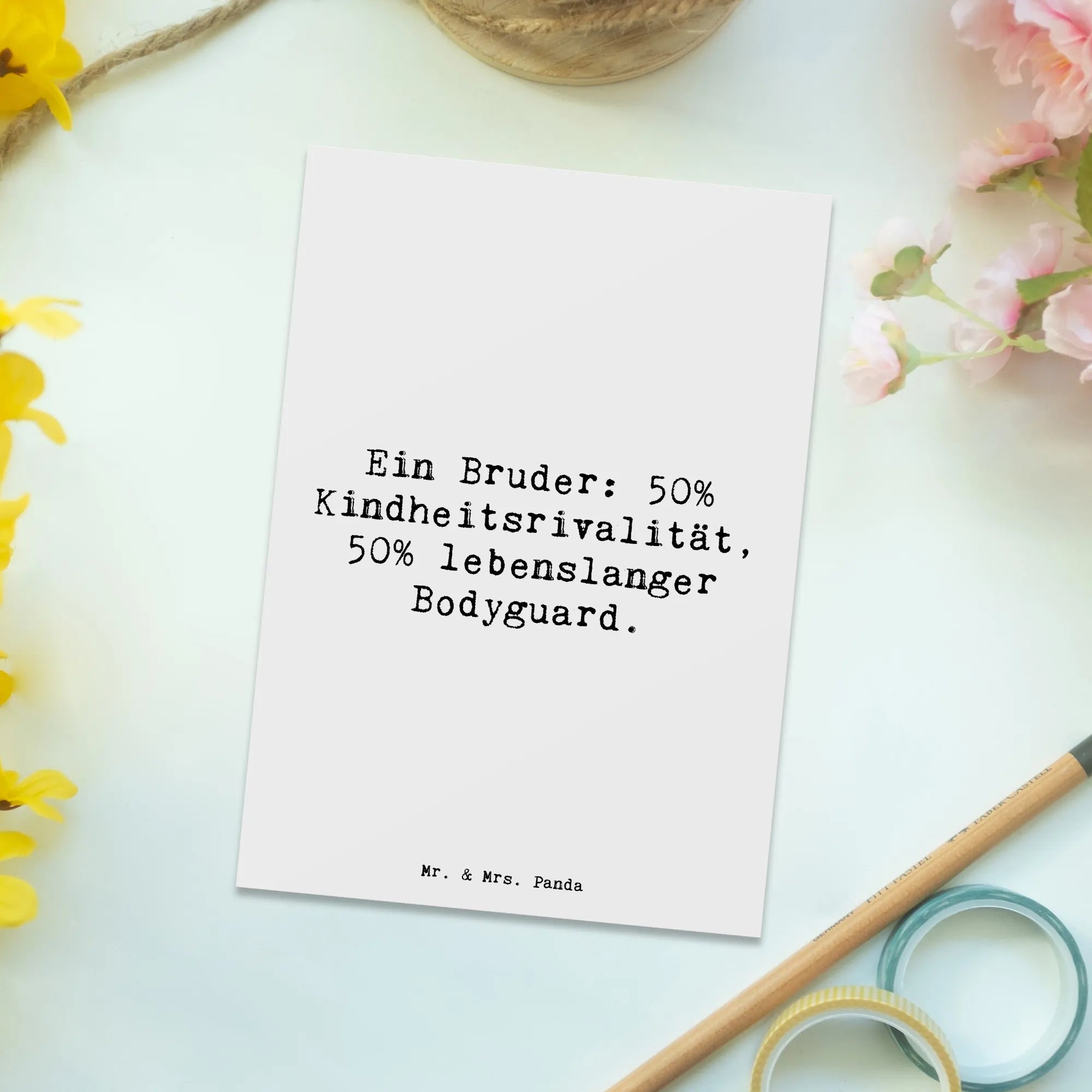 Postcard Saying Ein Bruder: 50% Kindheitsrivalität, 50% lebenslanger B – Mr. & Mrs. Panda