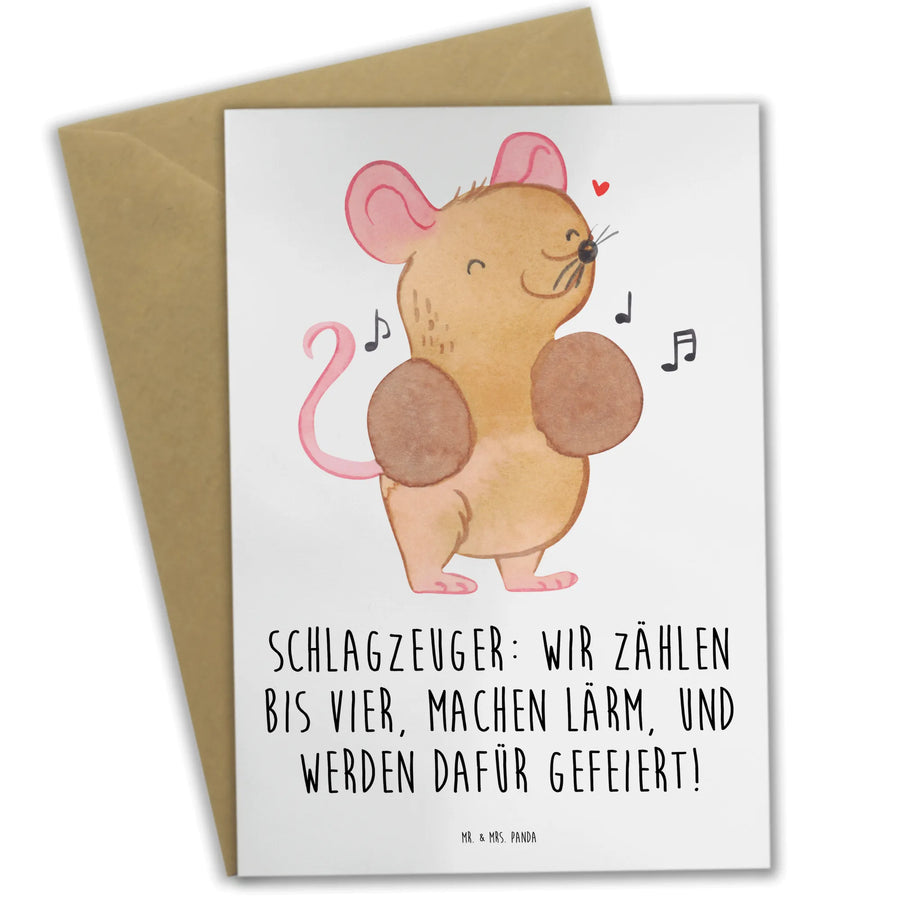 Greetings card Schlagzeuger: Wir zählen bis vier, machen Lärm, und werden dafür gefeiert! - White