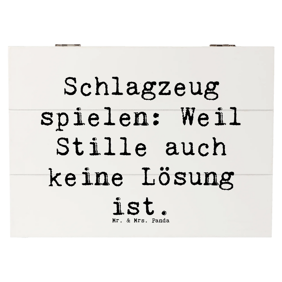 Wooden chest Saying Schlagzeug spielen: Weil Stille auch keine Lösung ist. - 25 x 18 cm - White