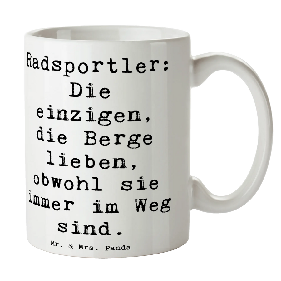 Mug Saying Radsportler: Die einzigen, die Berge lieben, obwohl sie immer im Weg sind. - White