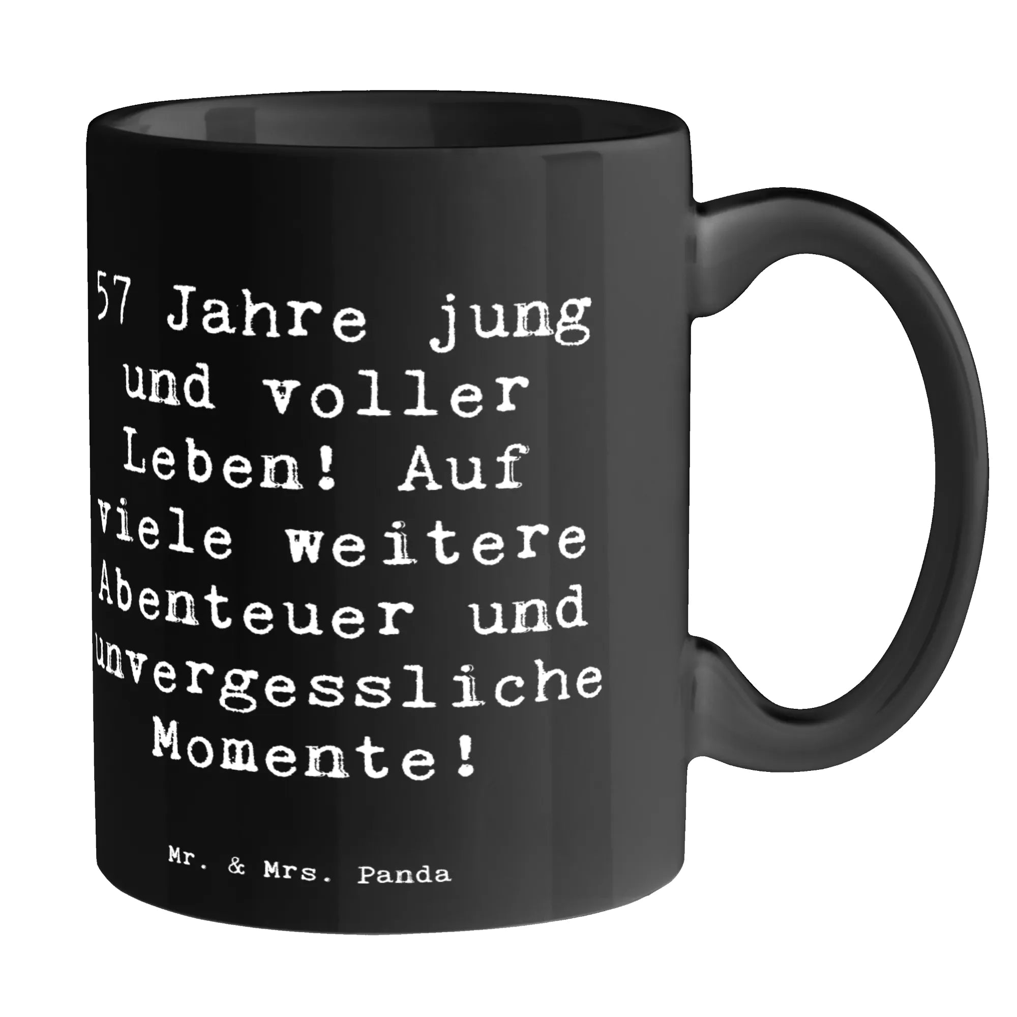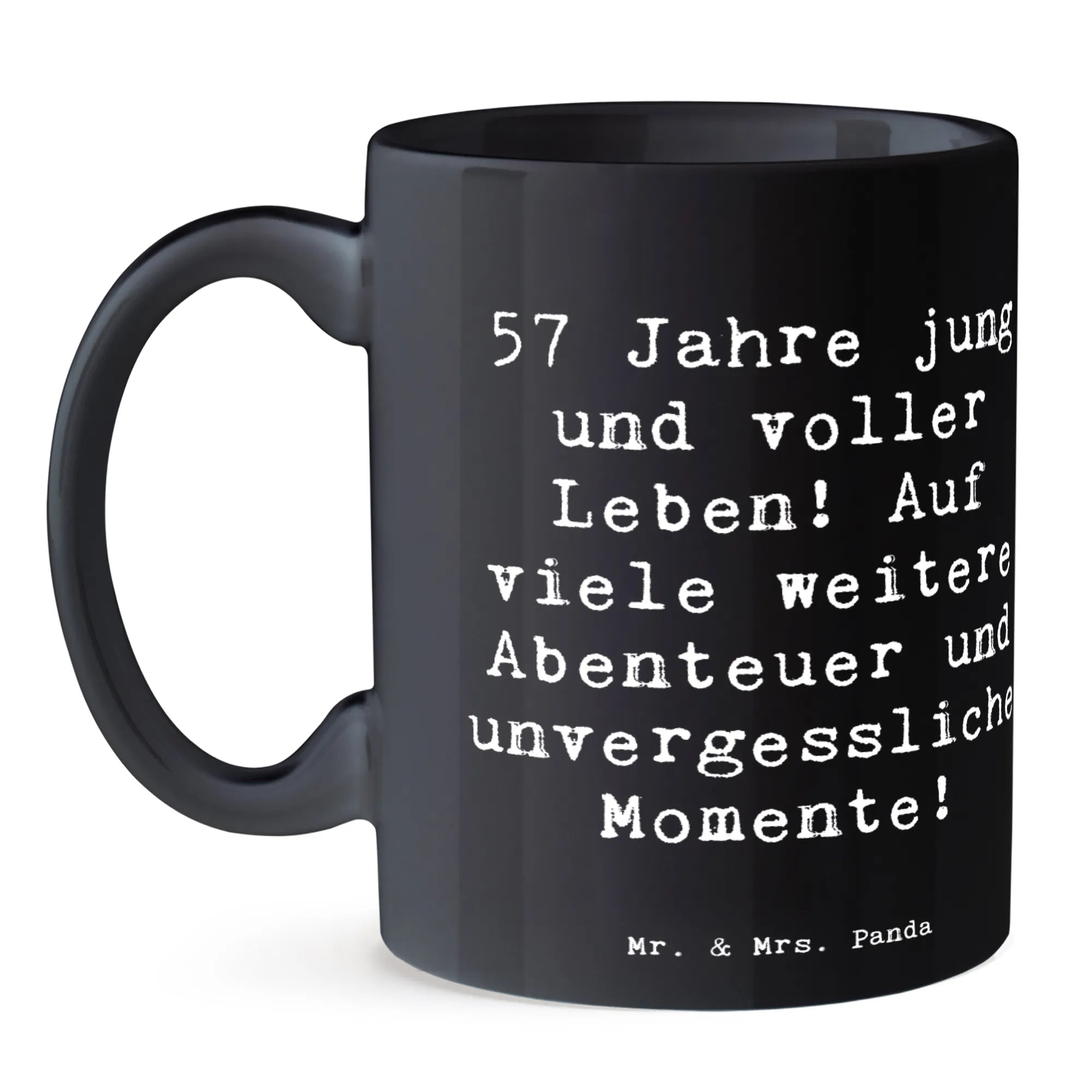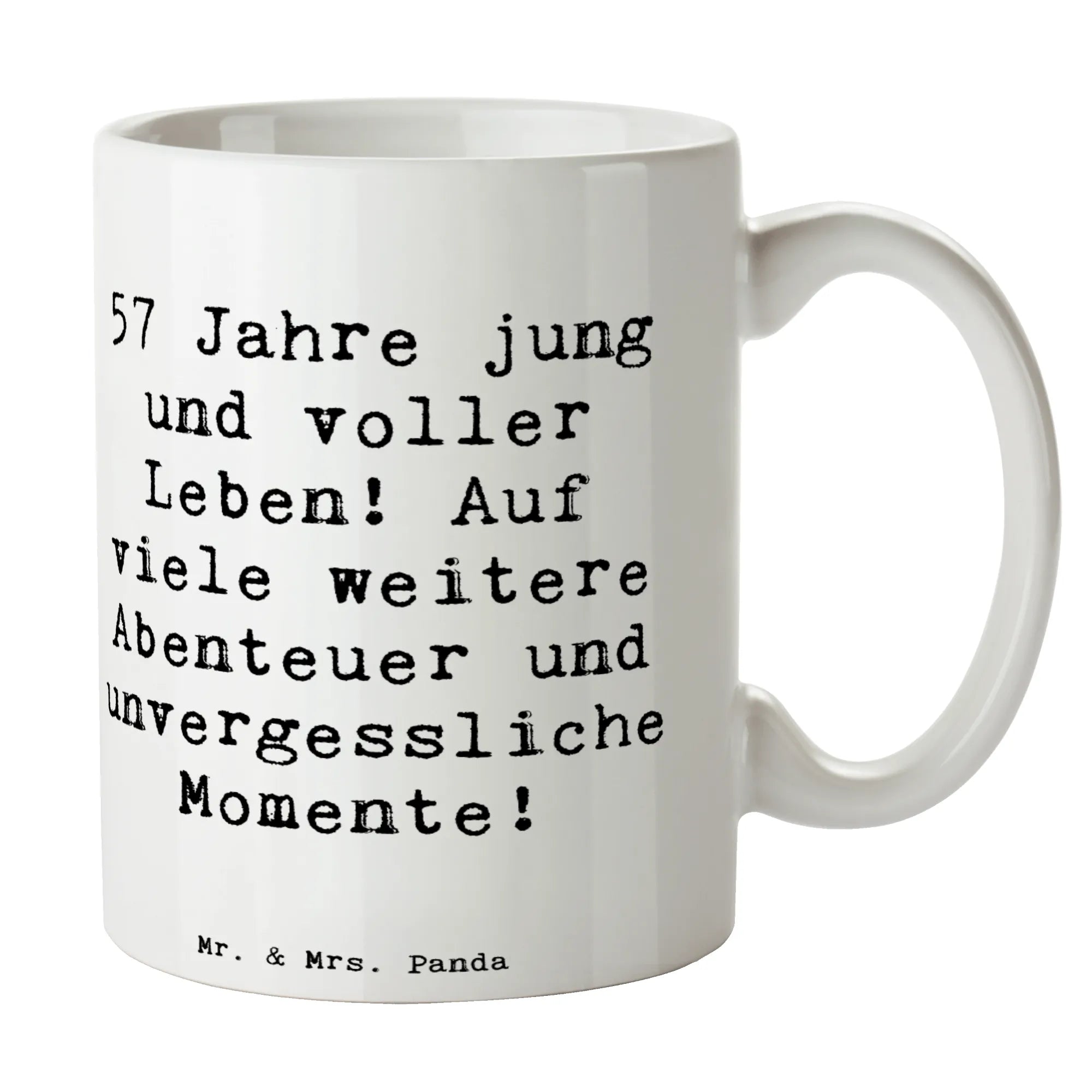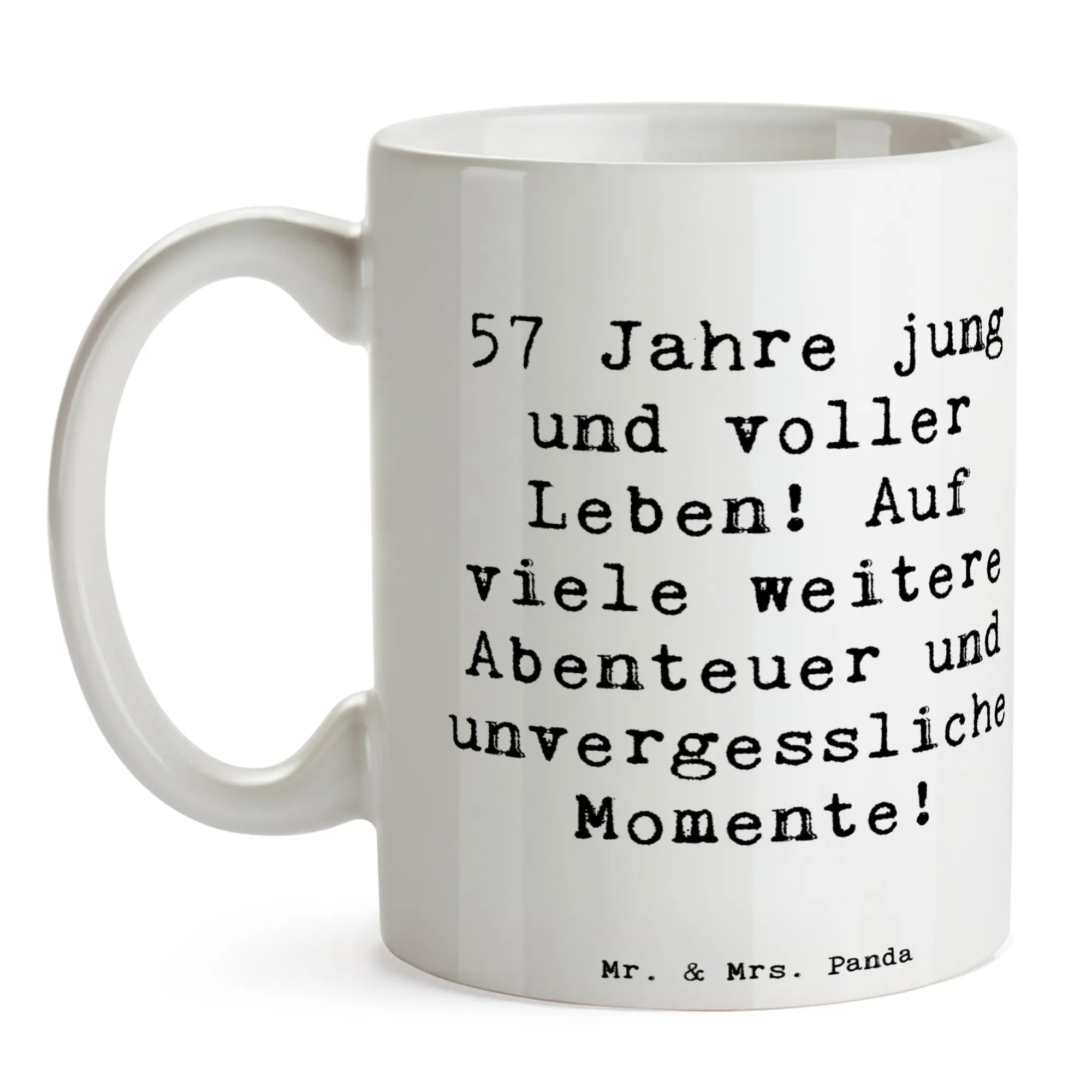 Mug Saying 57 Jahre jung und voller Leben! Auf viele weitere Abenteuer und unvergessliche Momente! Tasse mit Motiven, Geschenktasse, Teetasse, Porzellantasse, Tasse, Bürotasse, Keramiktasse, Tasse mit Zitaten, Kaffeetasse, Geburtstag, Geburtstagsgeschenk, Geschenk