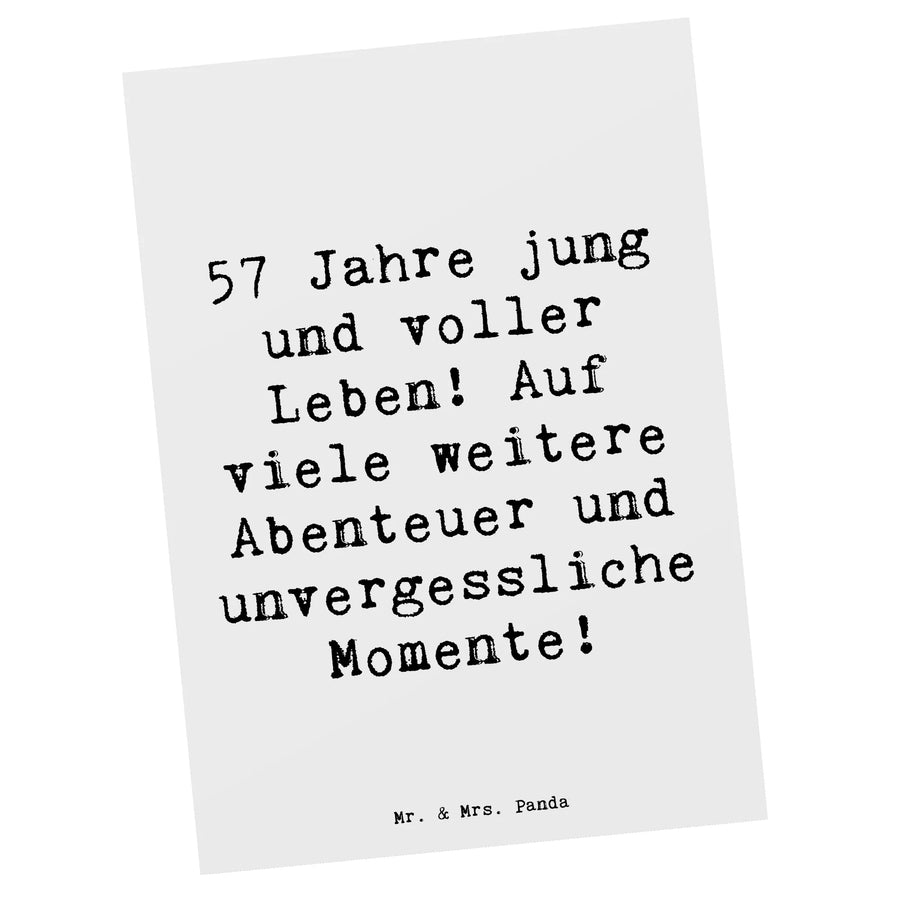 Postcard Saying 57 Jahre jung und voller Leben! Auf viele weitere Abenteuer und unvergessliche Momente! - White
