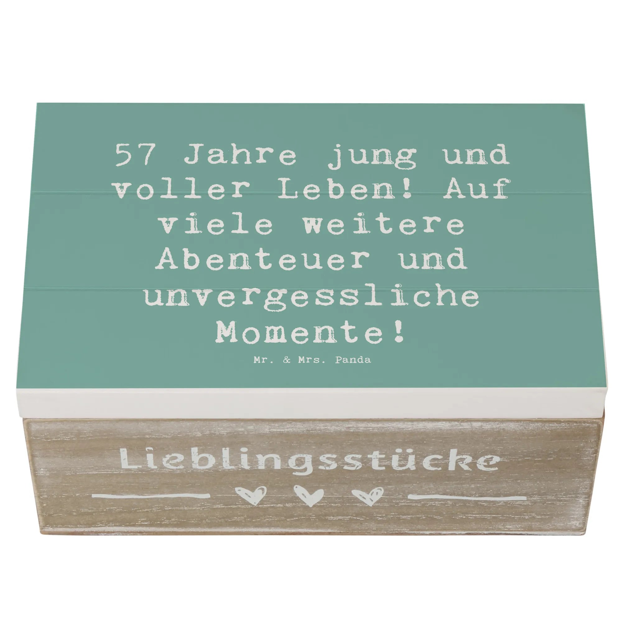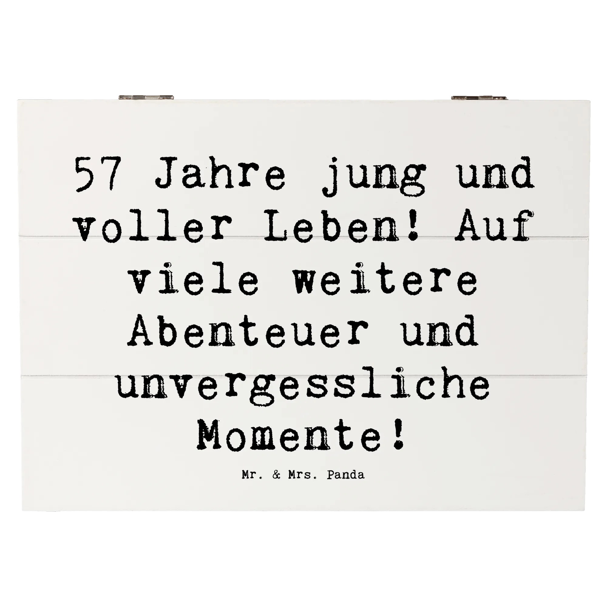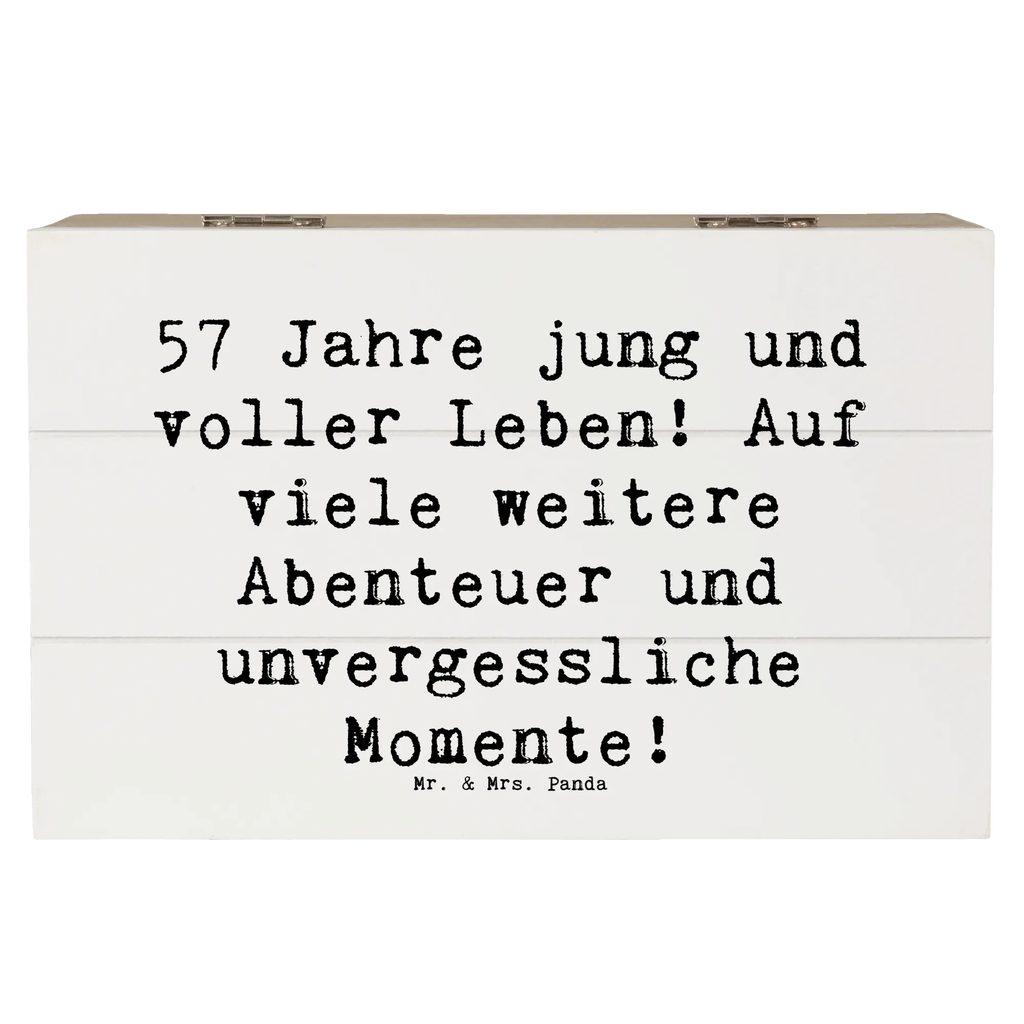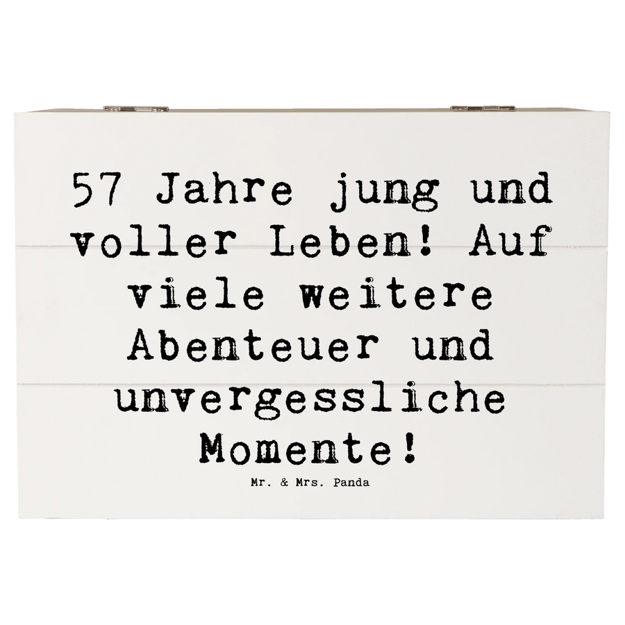 Wooden chest Saying 57 Jahre jung und voller Leben! Auf viele weitere Abenteuer und unvergessliche Momente! - 22 x 15 cm - White