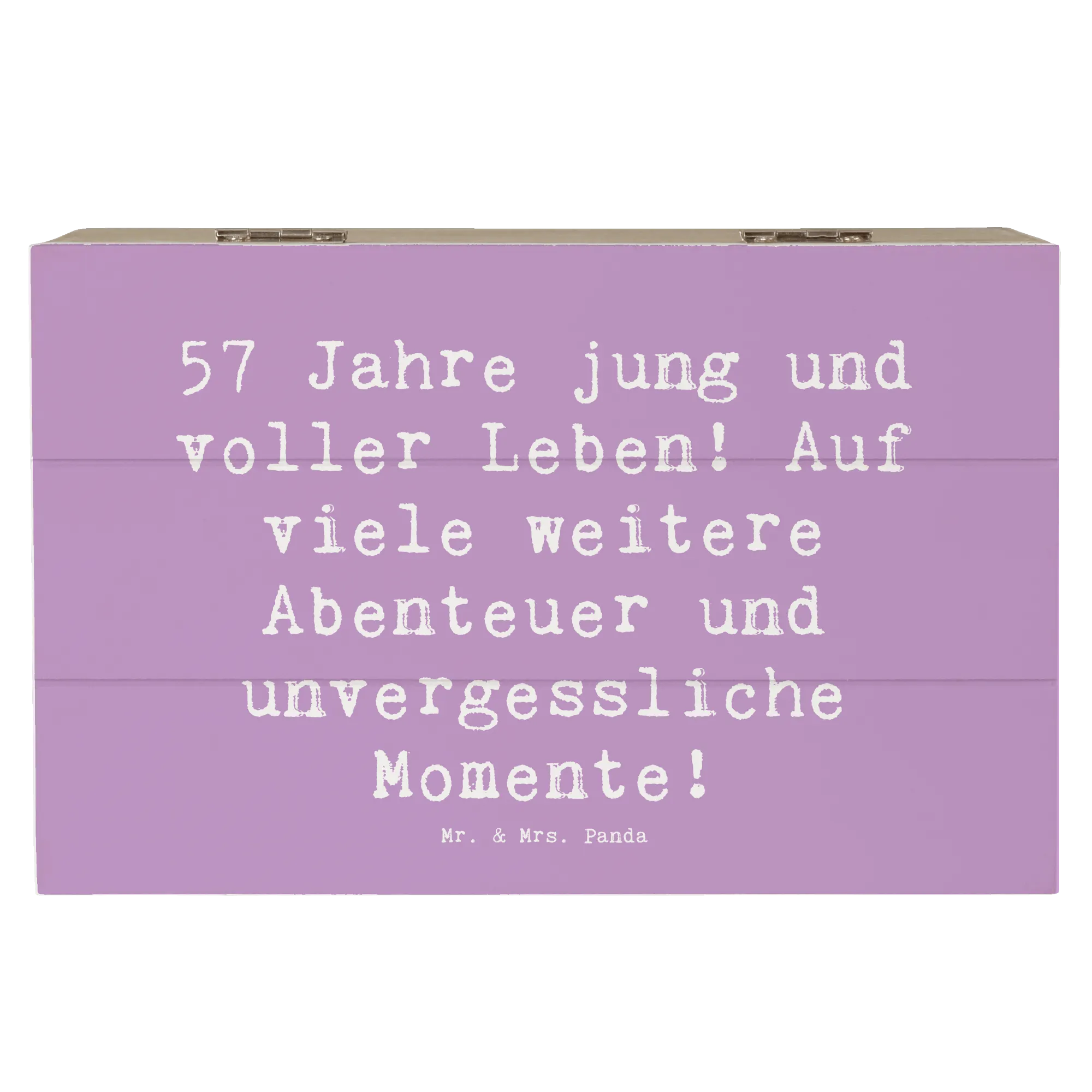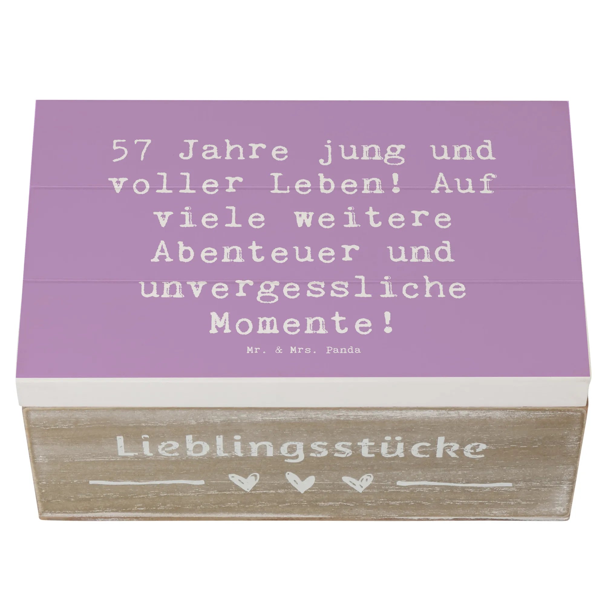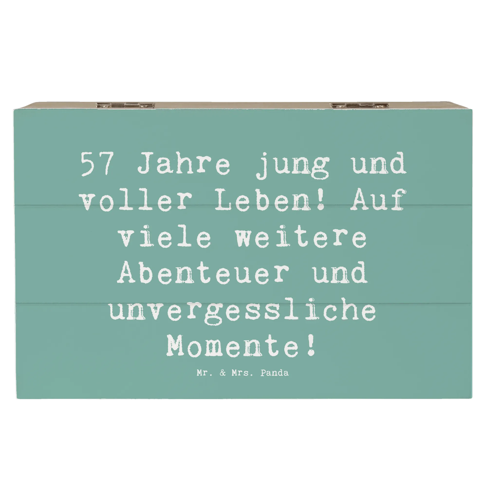 Wooden chest Saying 57 Jahre jung und voller Leben! Auf viele weitere Abenteuer und unvergessliche Momente! - 22 x 15 cm - White