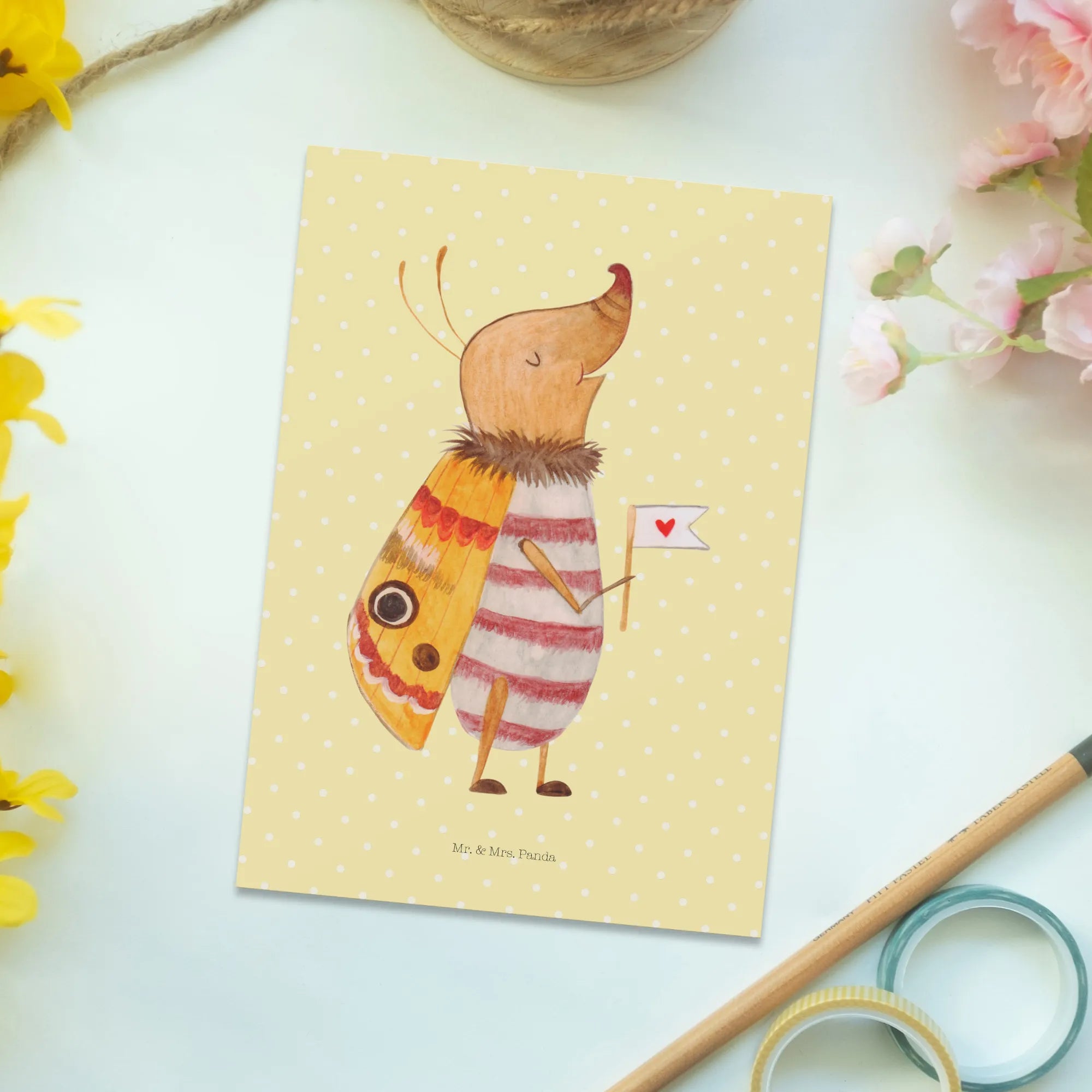 Postcard Moth flag - with saying - Pastel Yellow