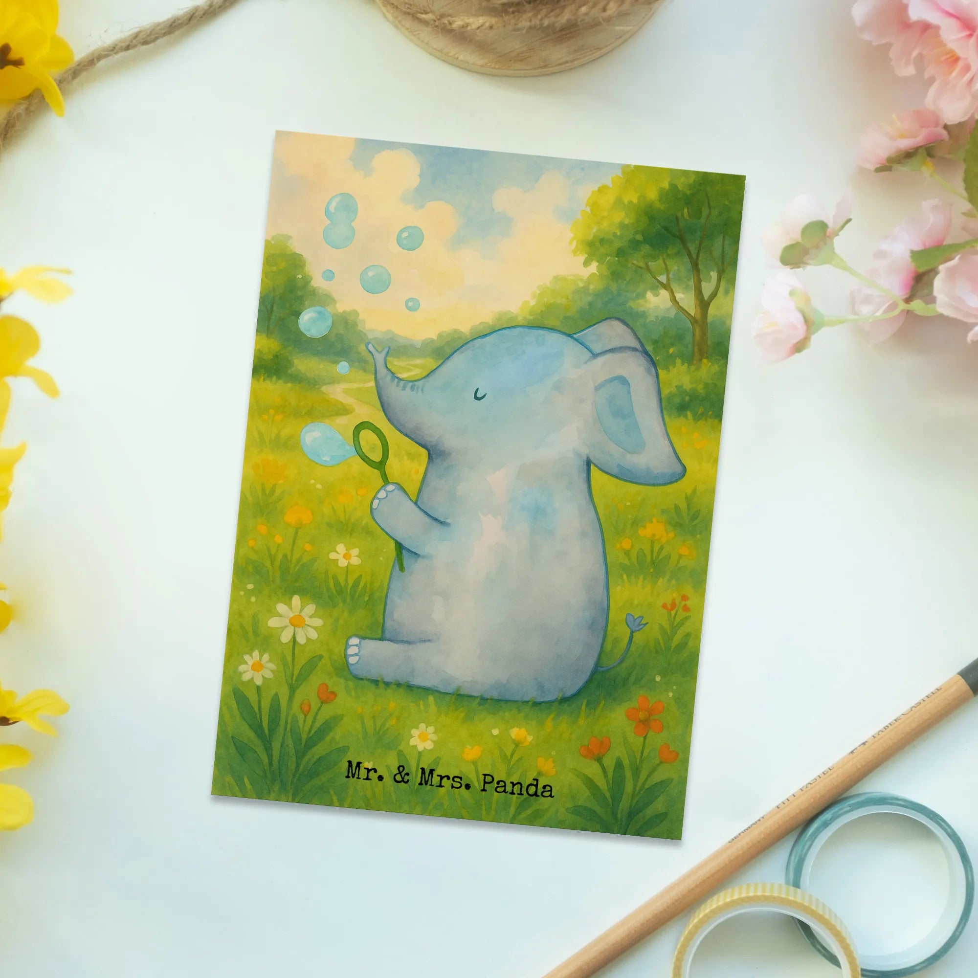 Postkarte Elefant Seifenblasen Design